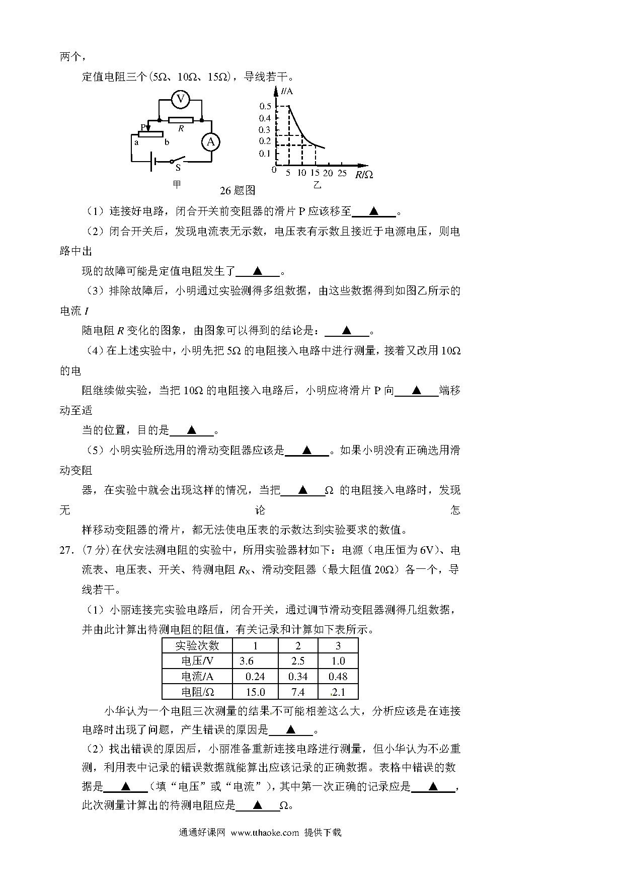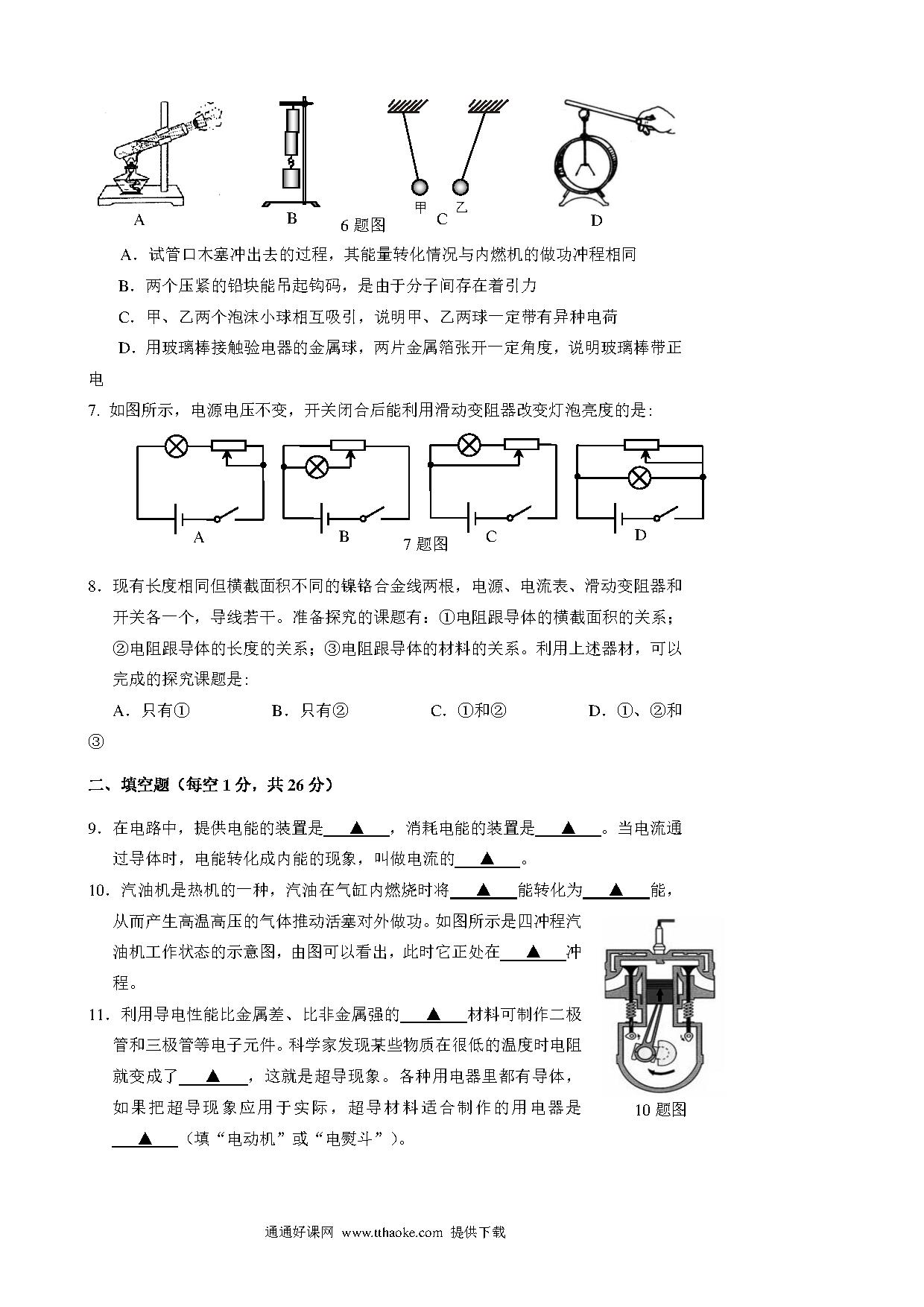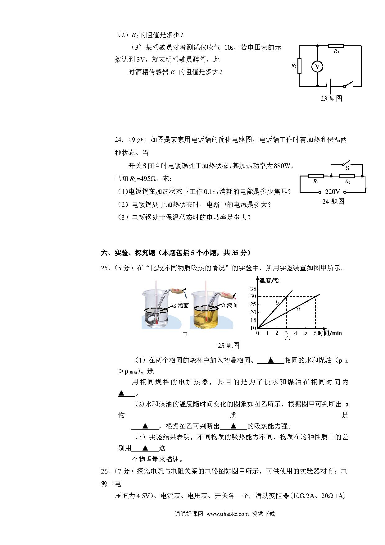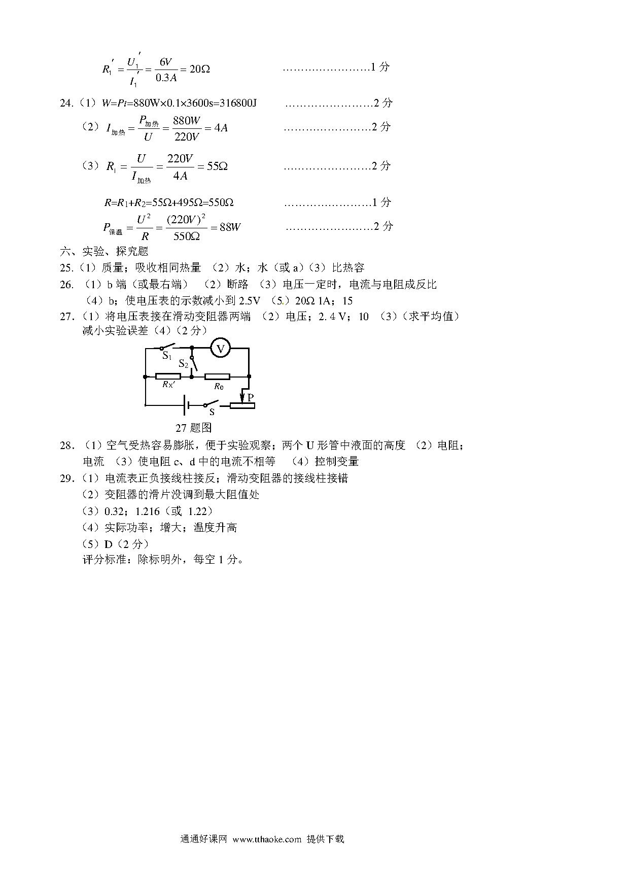太原市2017-2018学年第一学期初三物理期末考试试卷及答案