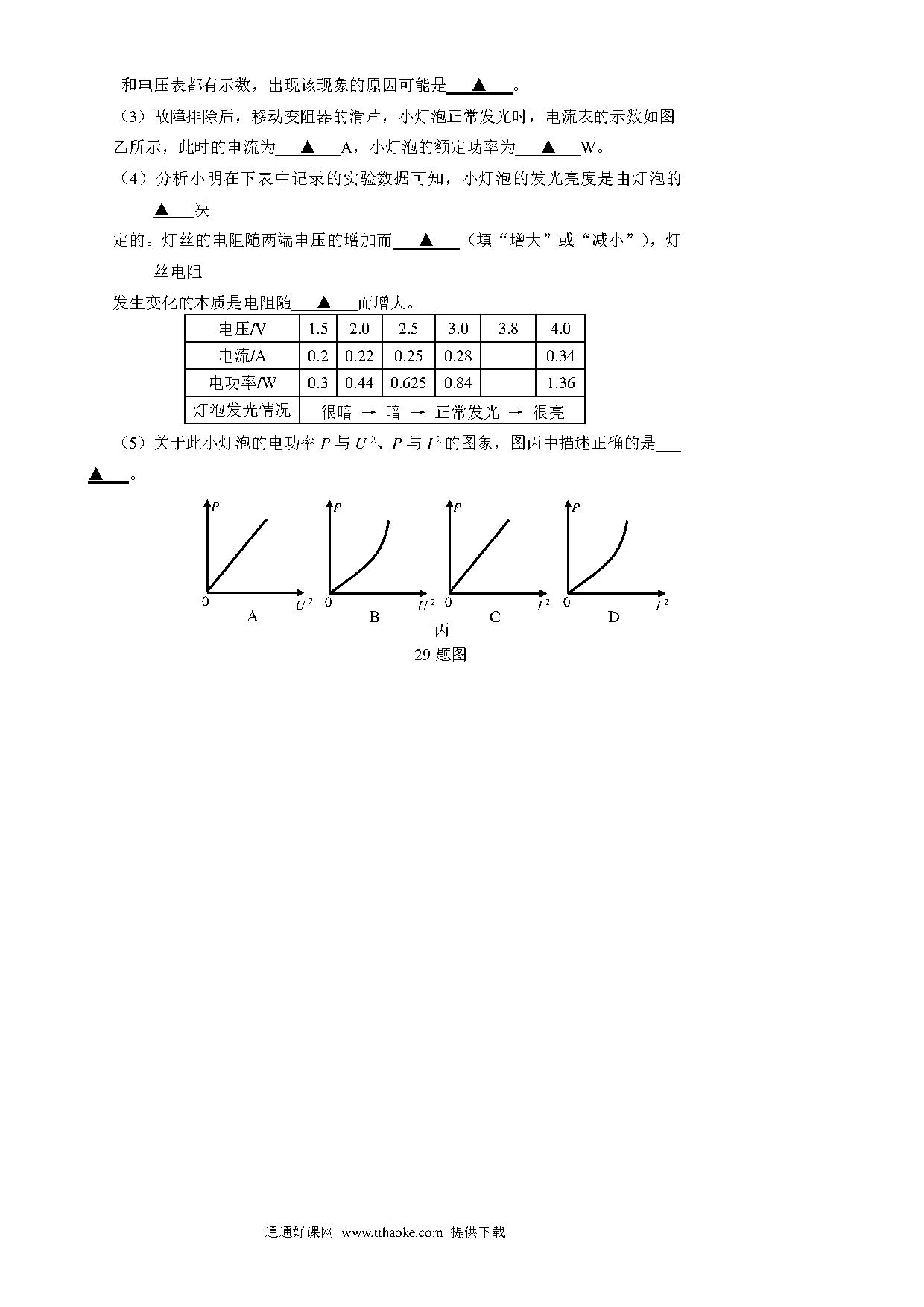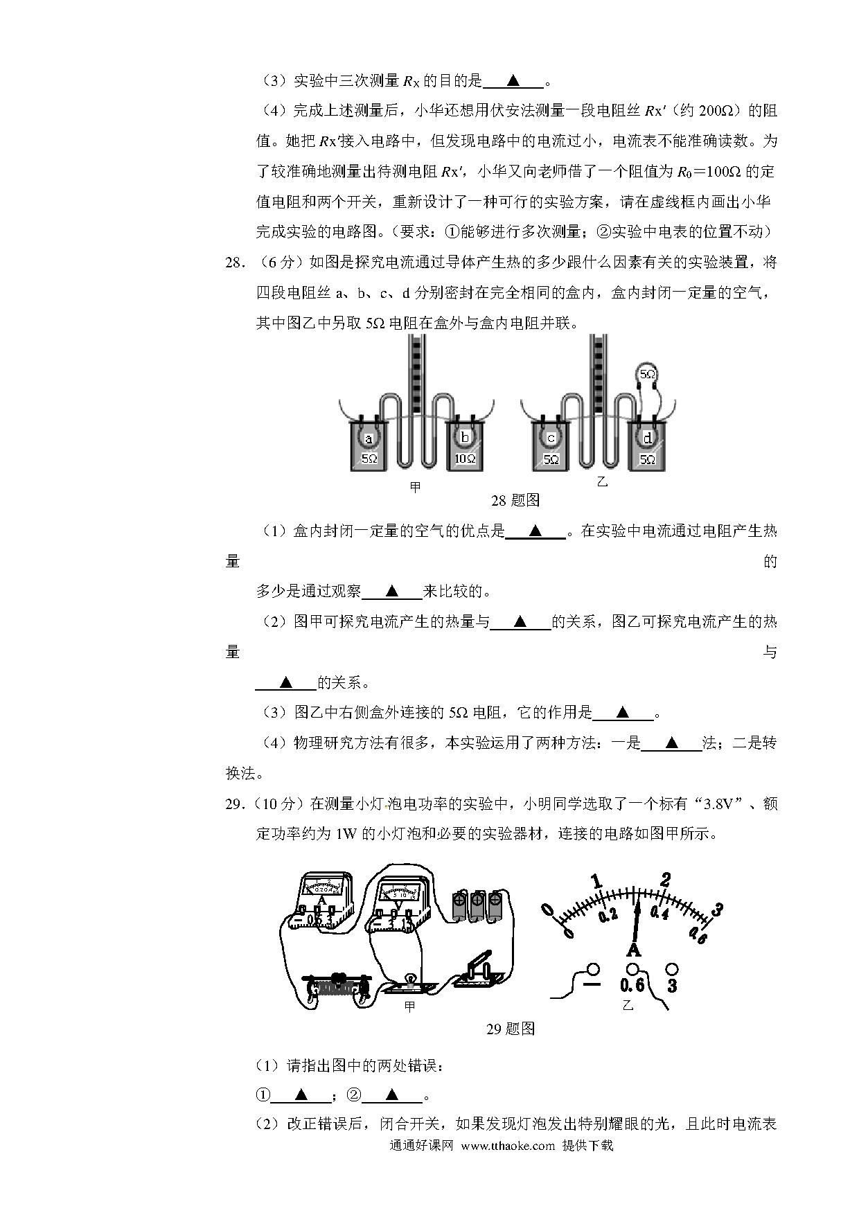 宣城市奋飞学校2017~2018学年第一学期九年级物理12月月考试卷