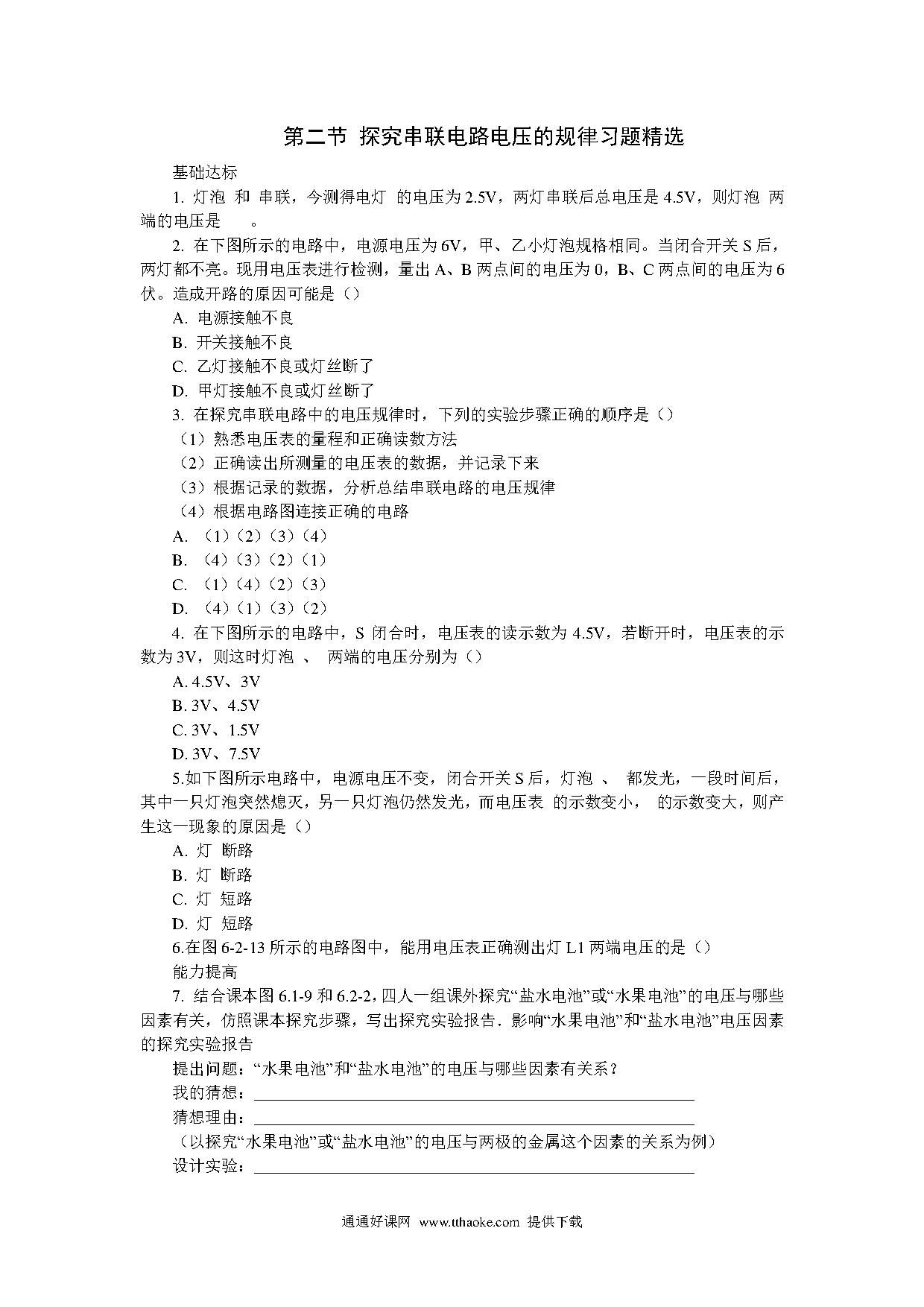 第二节探究串联电路电压的规律练习题及答案.pdf