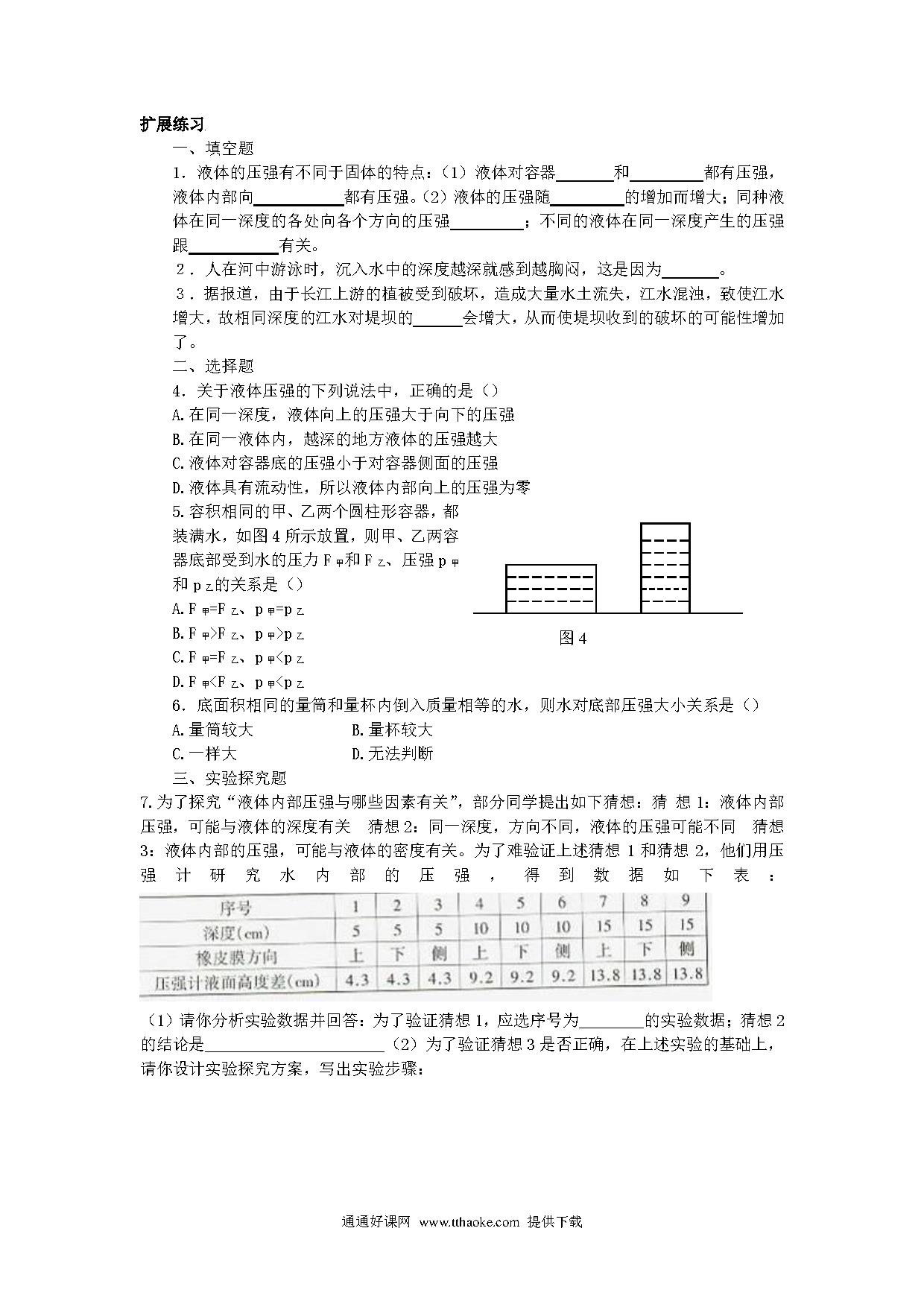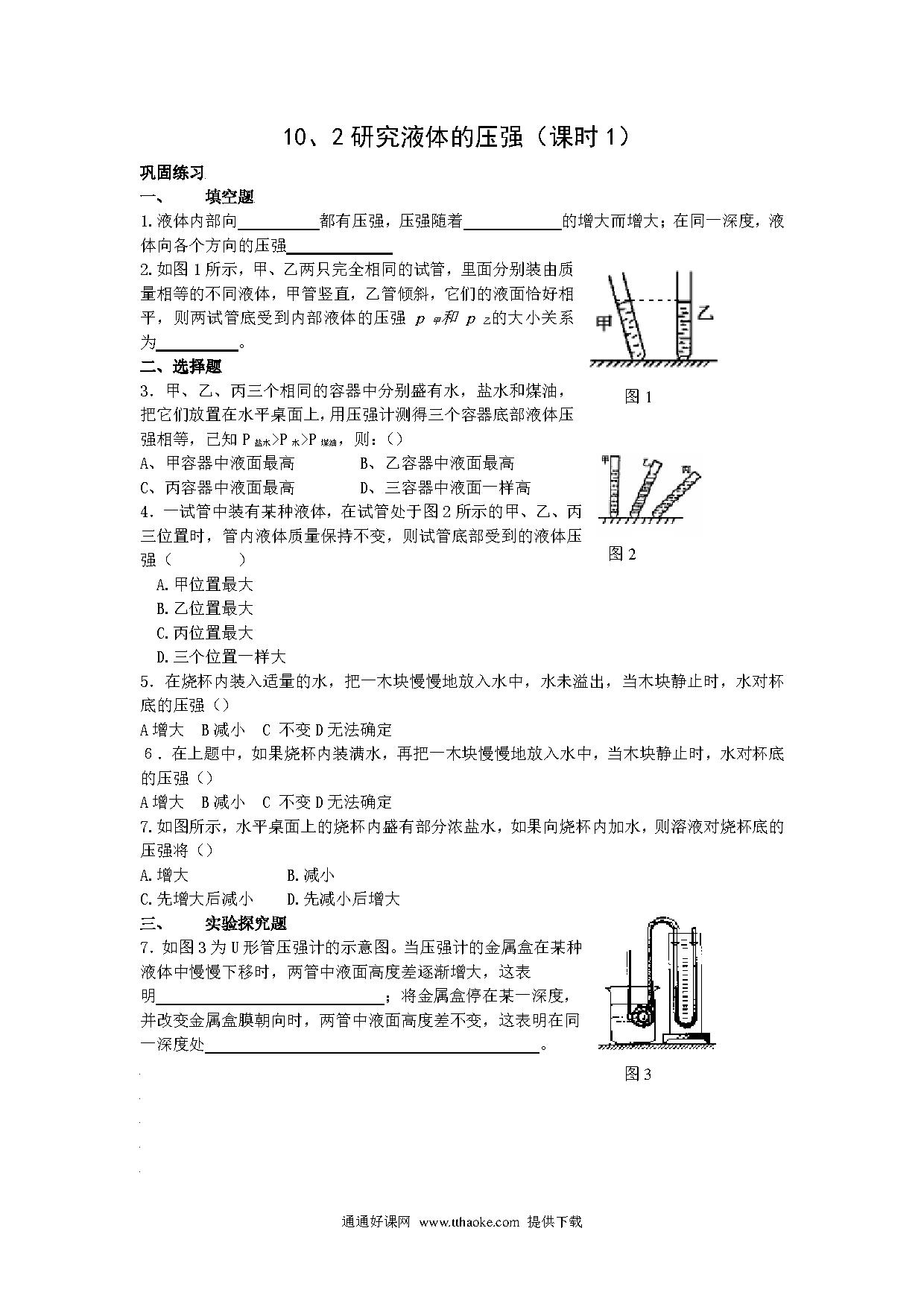 10.2研究液体的压强课时训练卷及答案(沪粤版九上).pdf