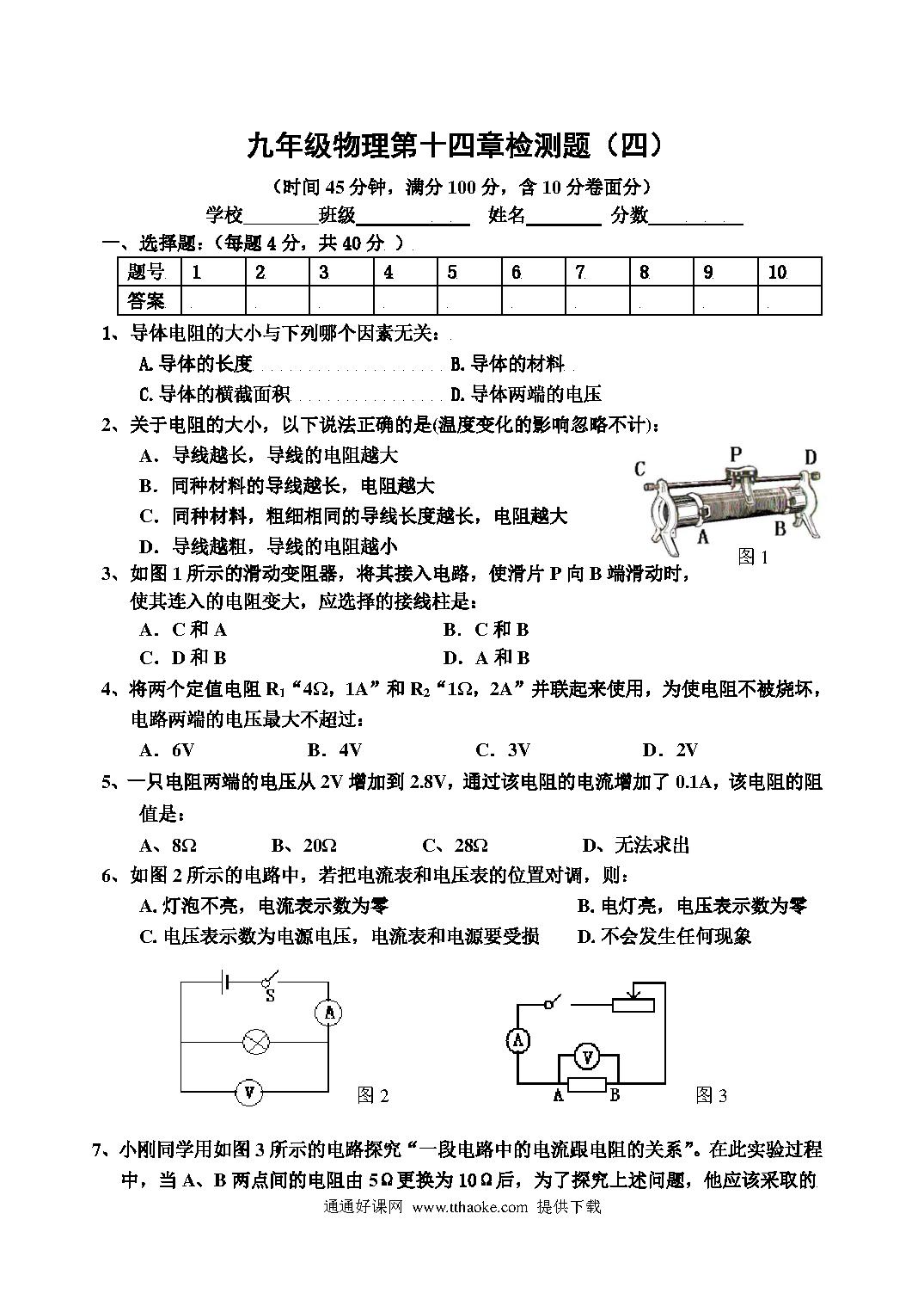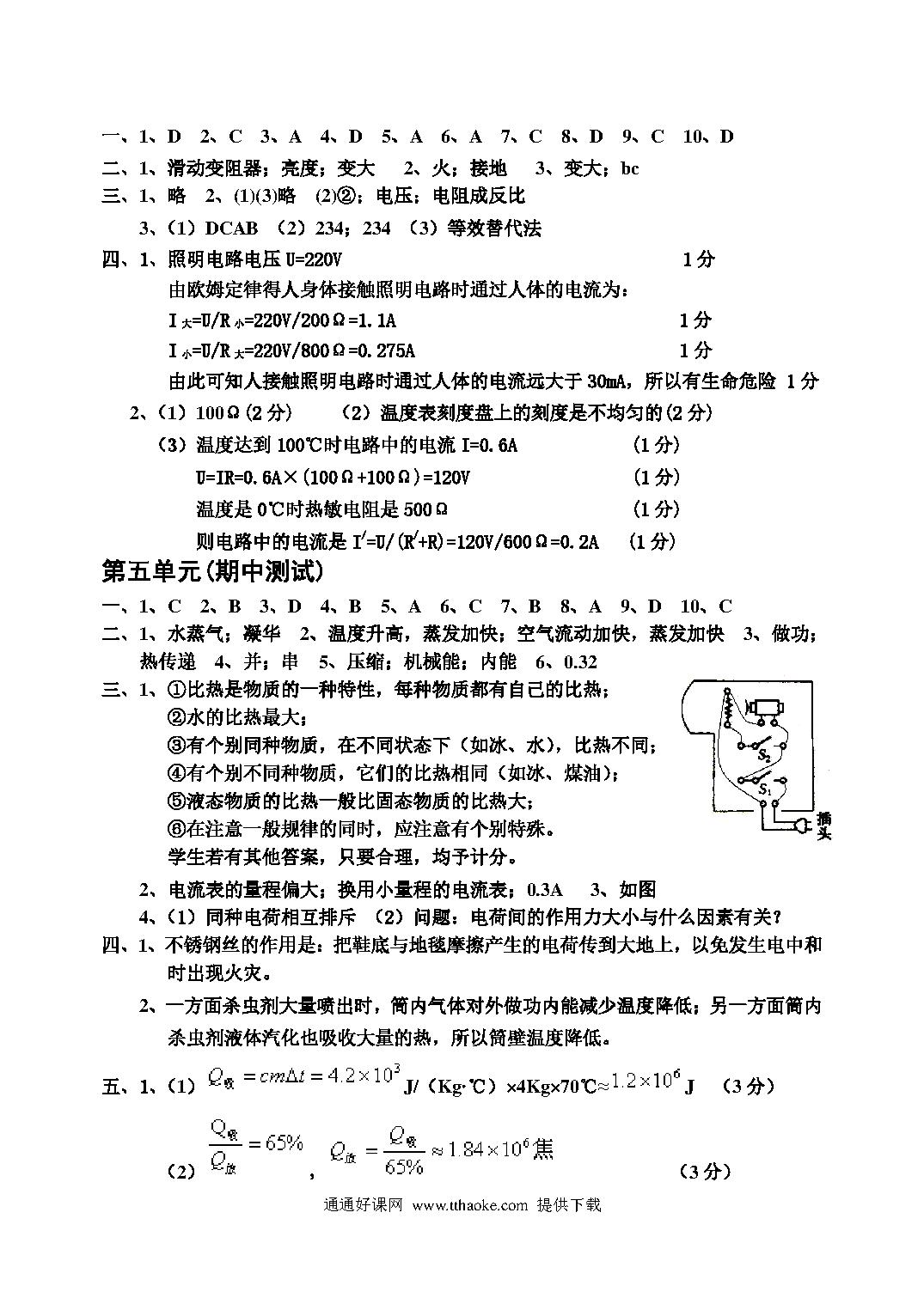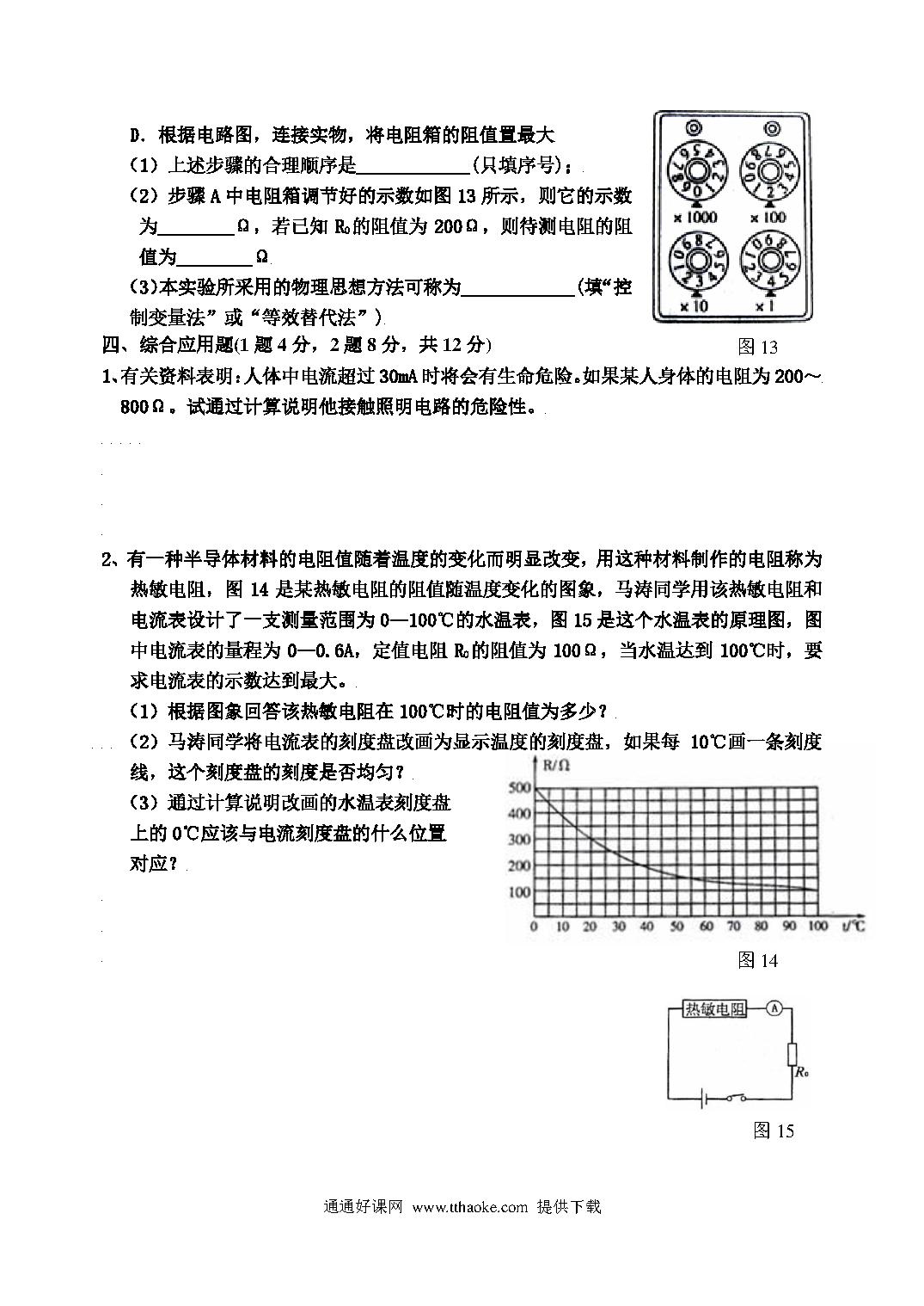 沪科版九年级物理第十四章测试题及答案.pdf