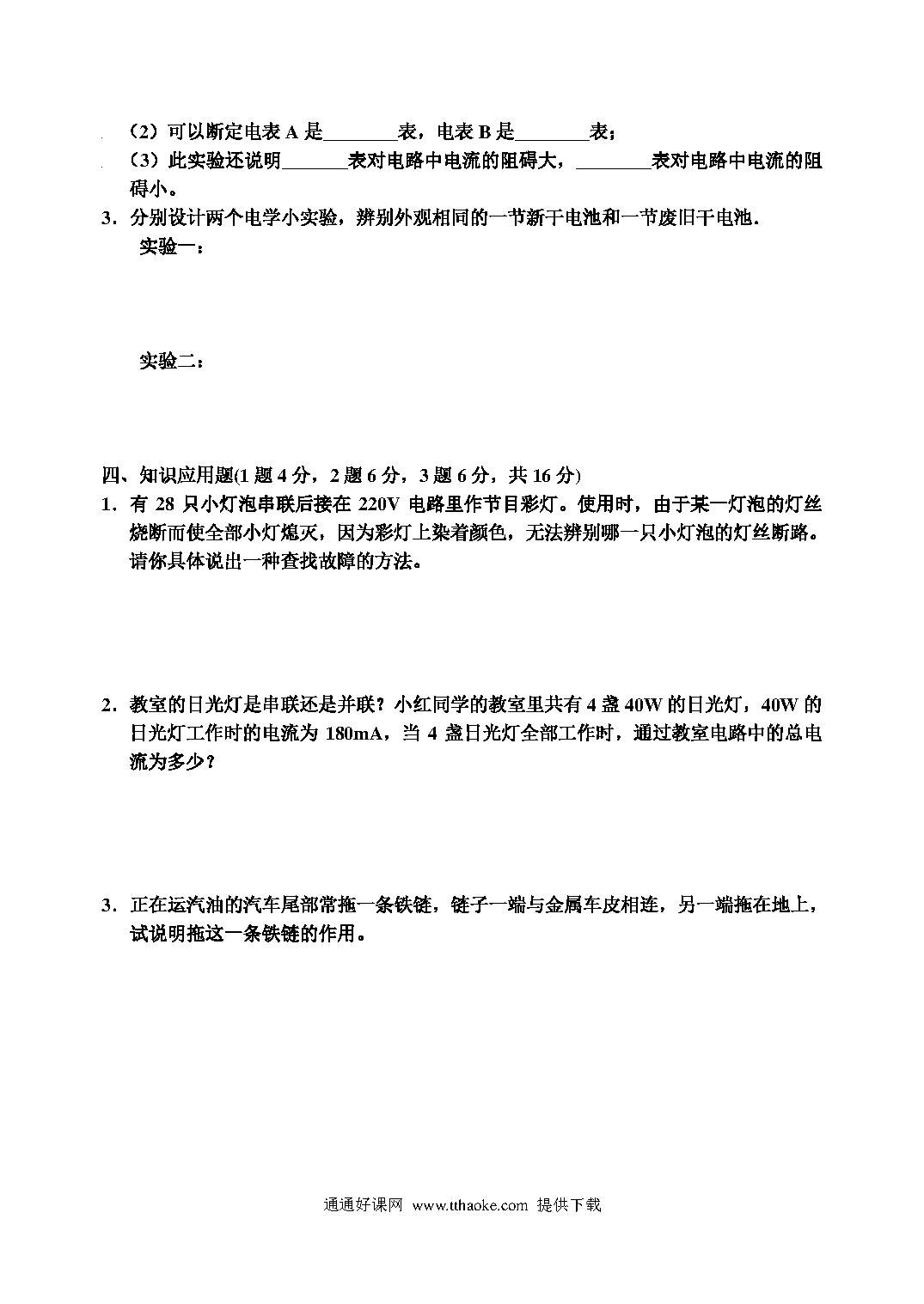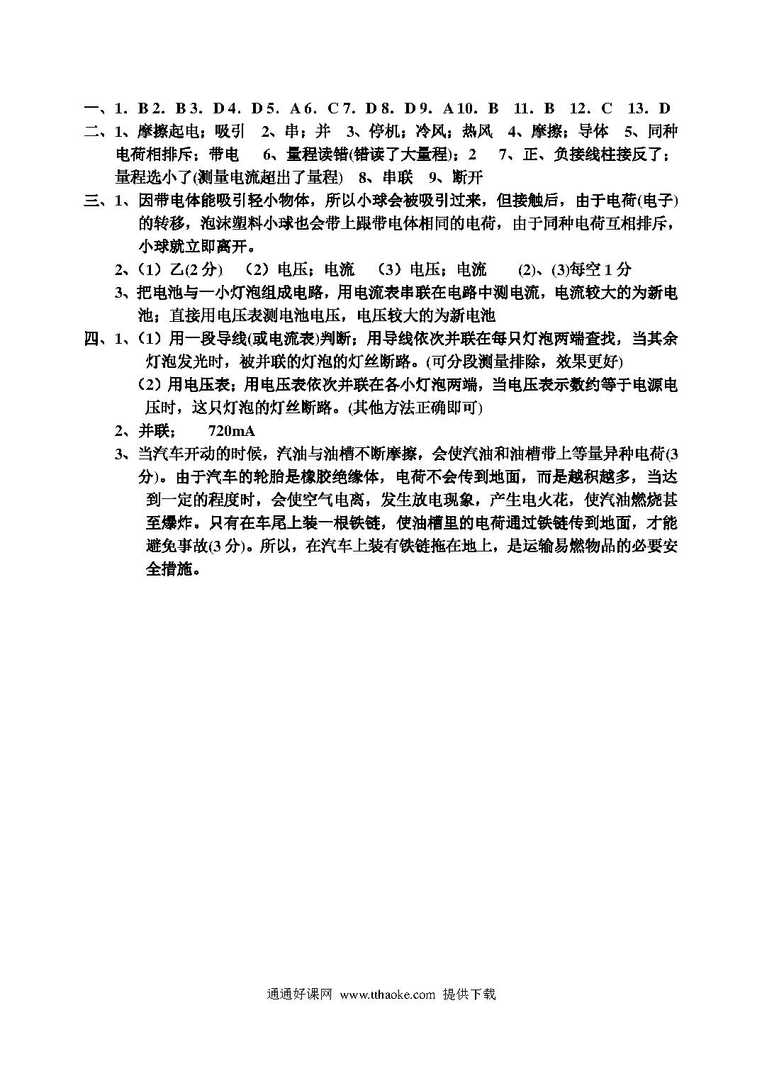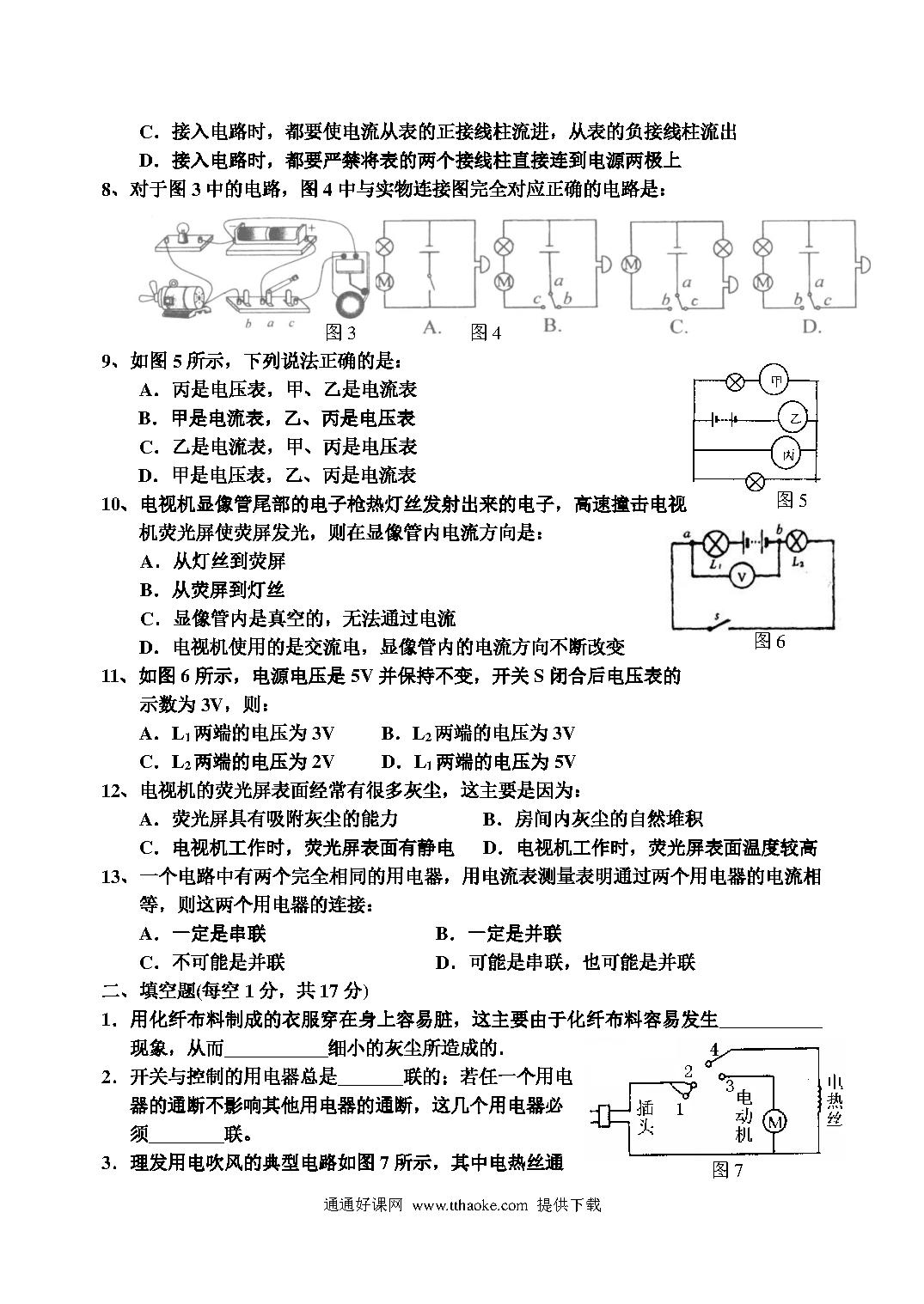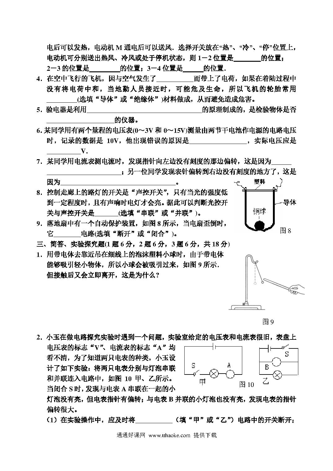 满洲里市2017-2018学年度上学期九年级物理期末试题及答案