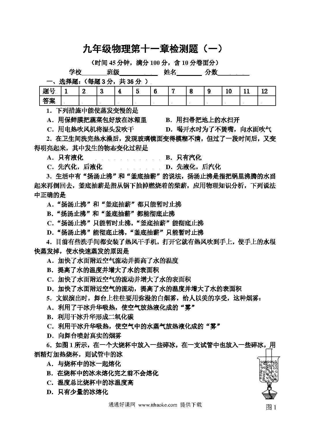 宣城市奋飞学校2017~2018学年第一学期九年级物理12月月考试卷