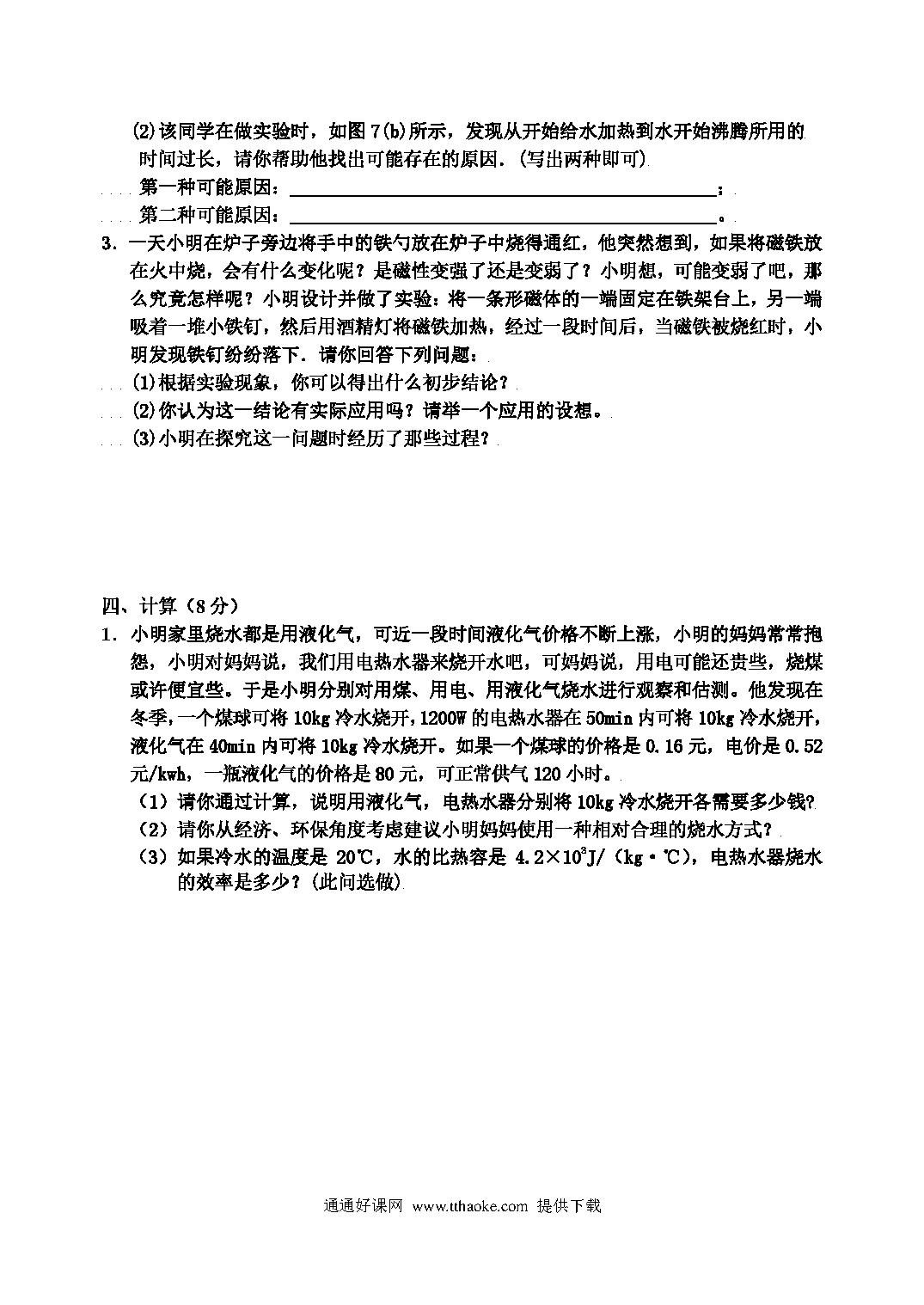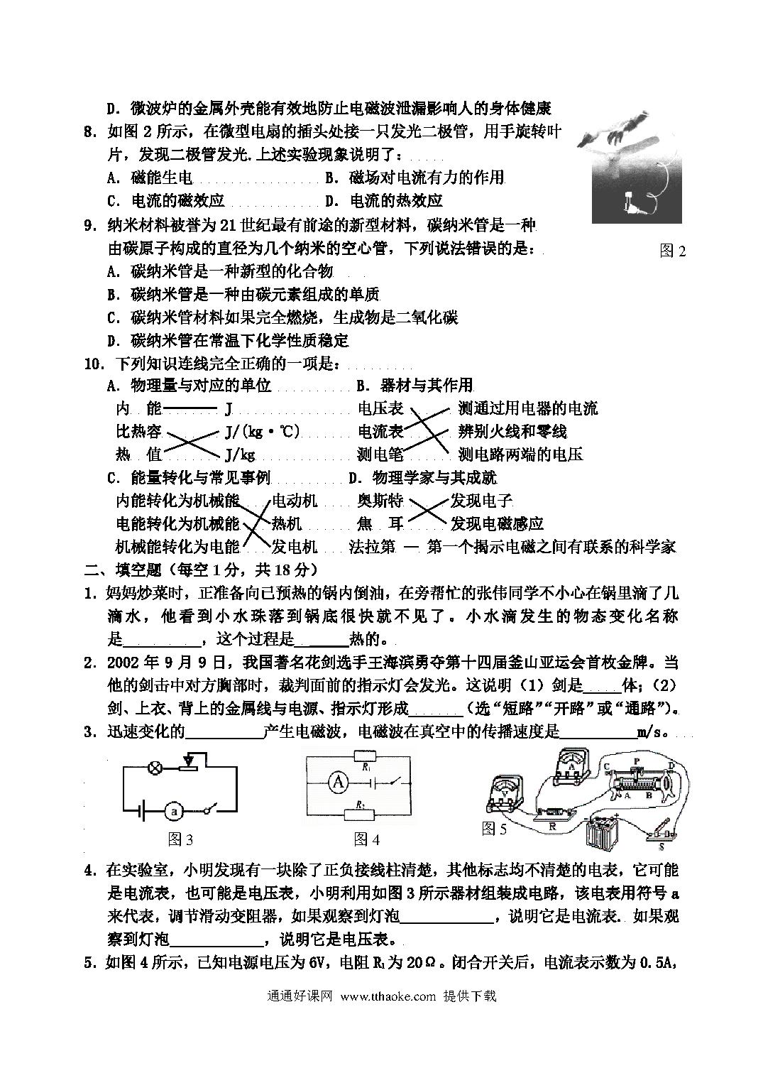 满洲里市2017-2018学年度上学期九年级物理期末试题及答案
