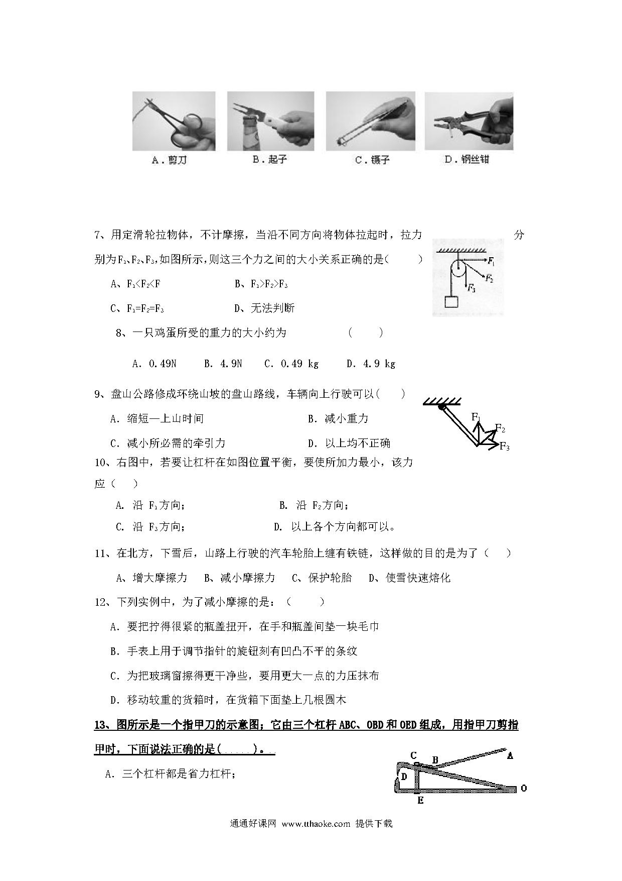 物理九年级人教新课标第十三章力和机械单元测试题.pdf