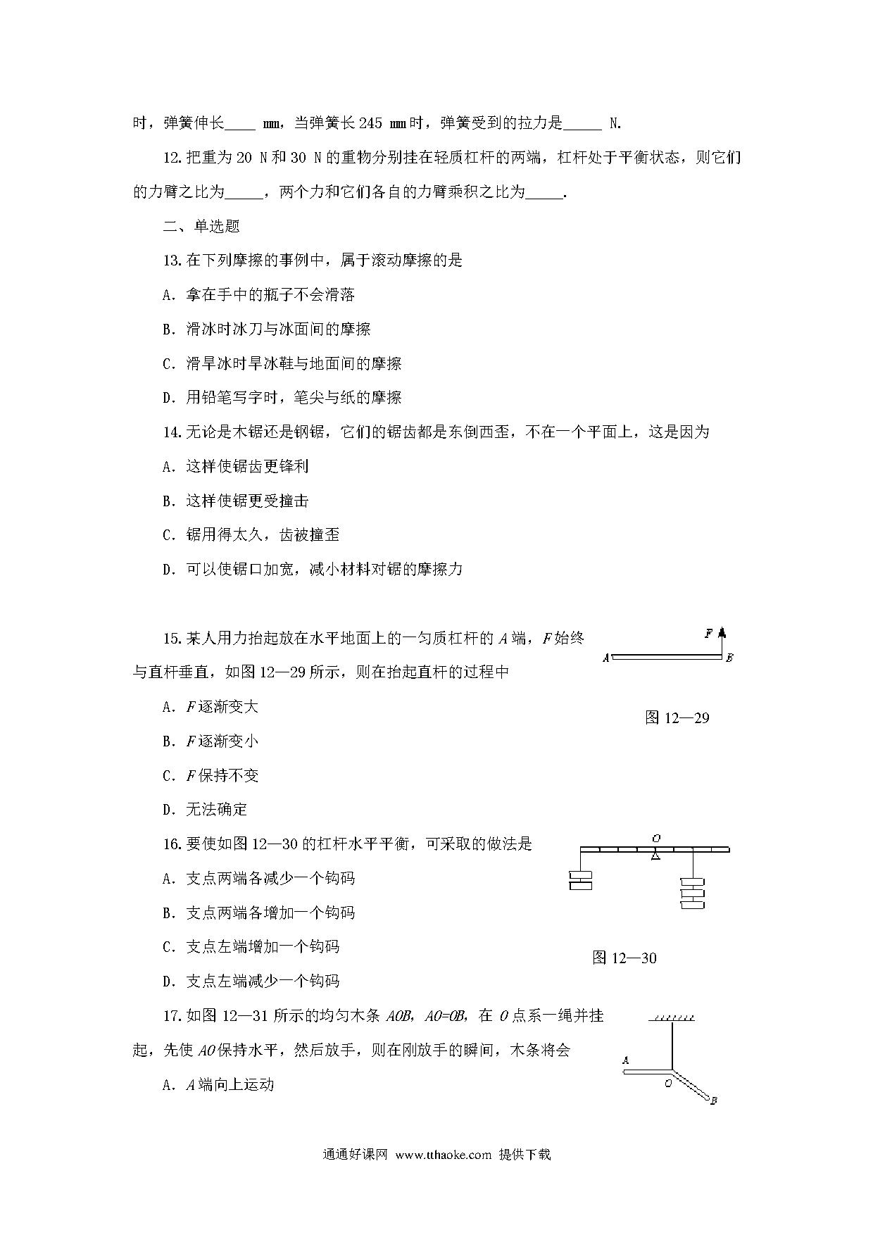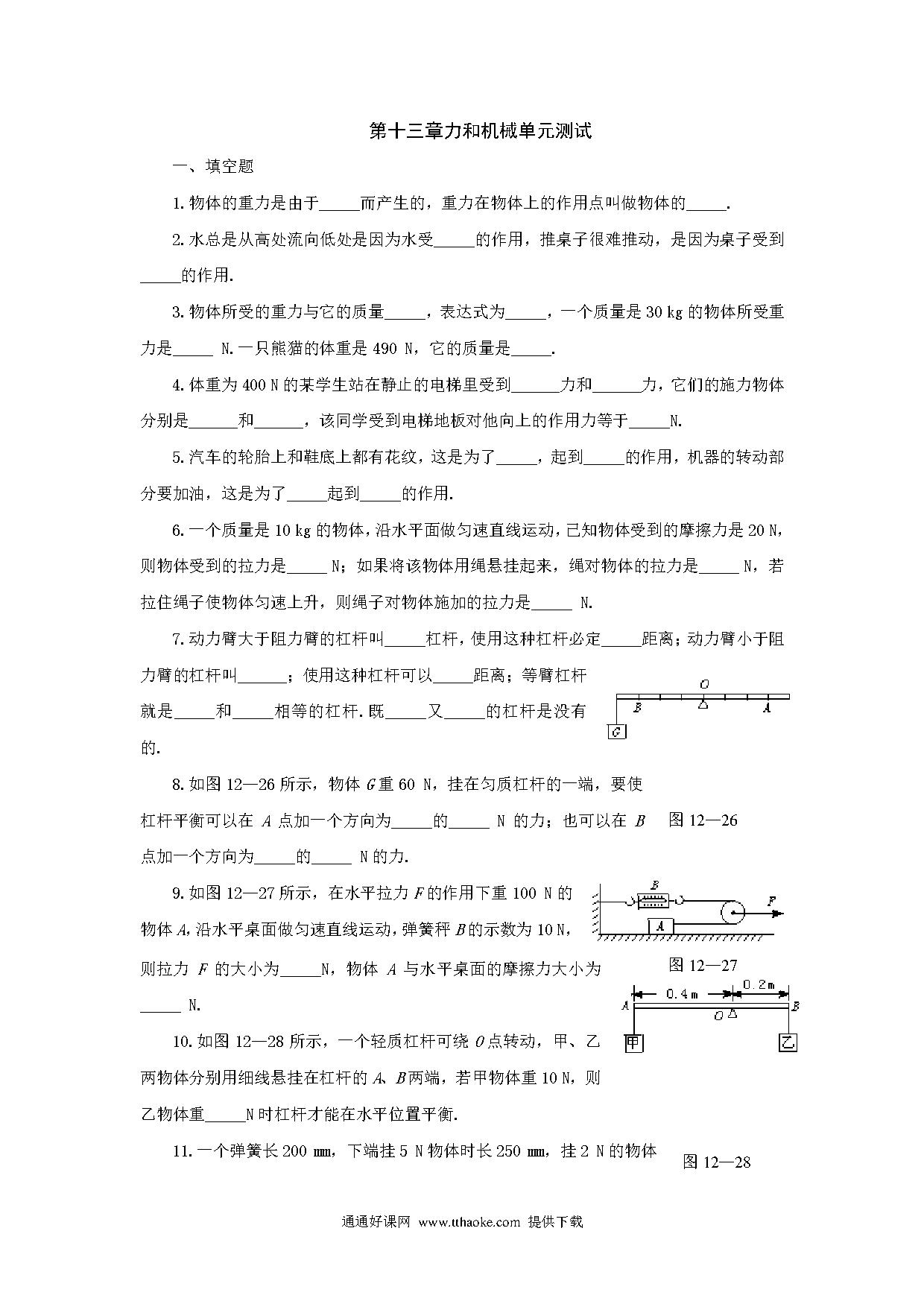 物理九年级人教新课标第十三章力和机械复习检测.pdf