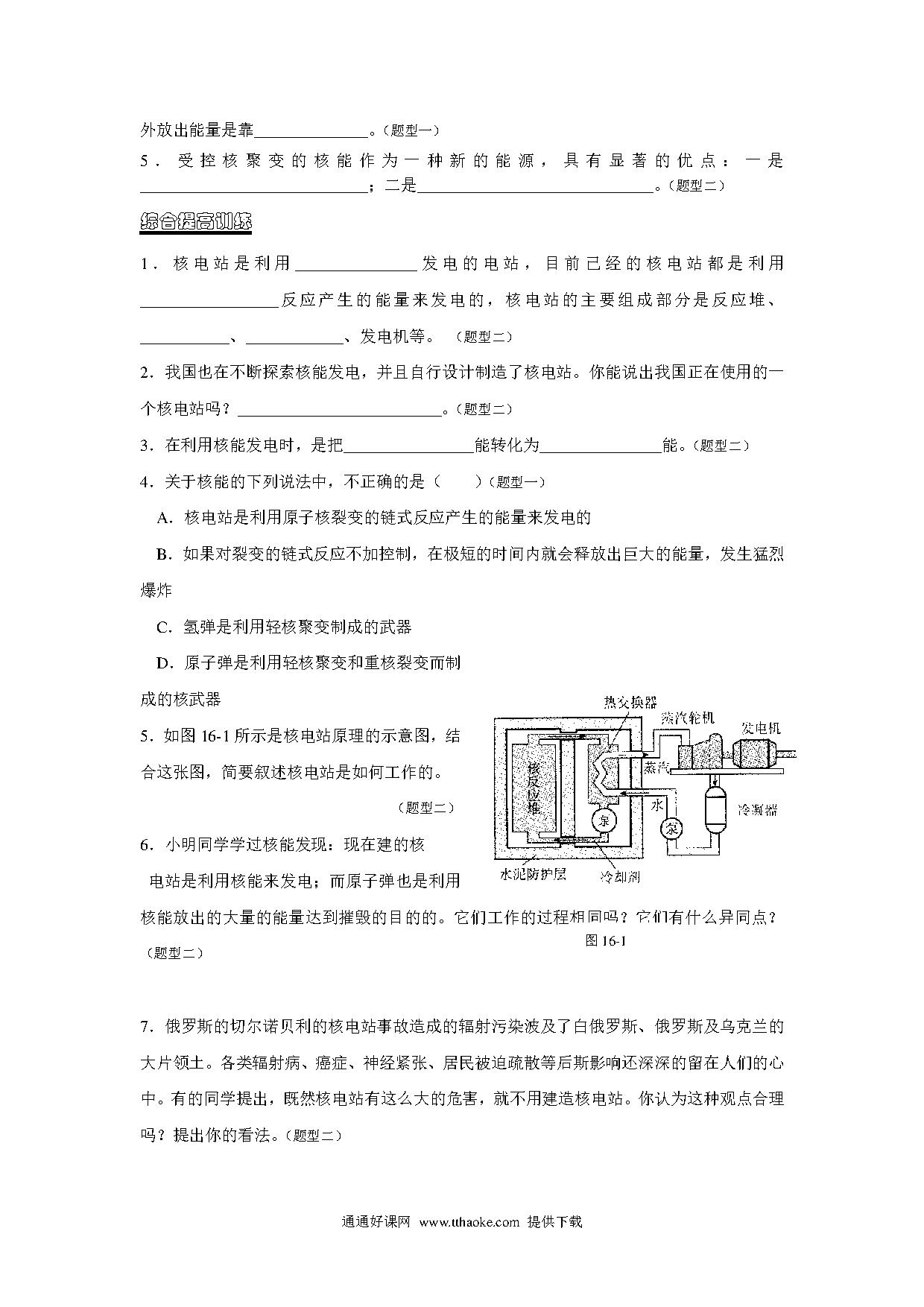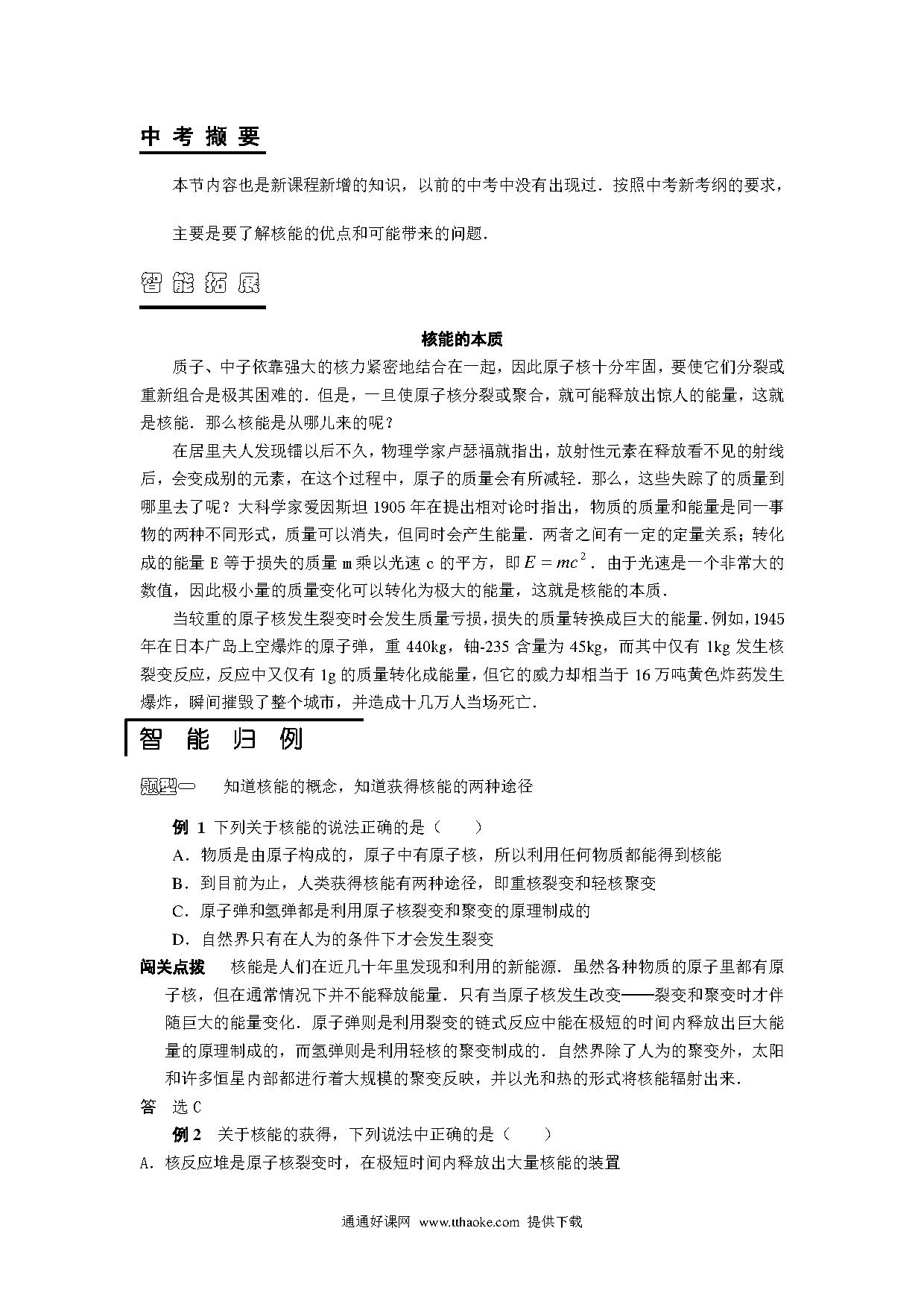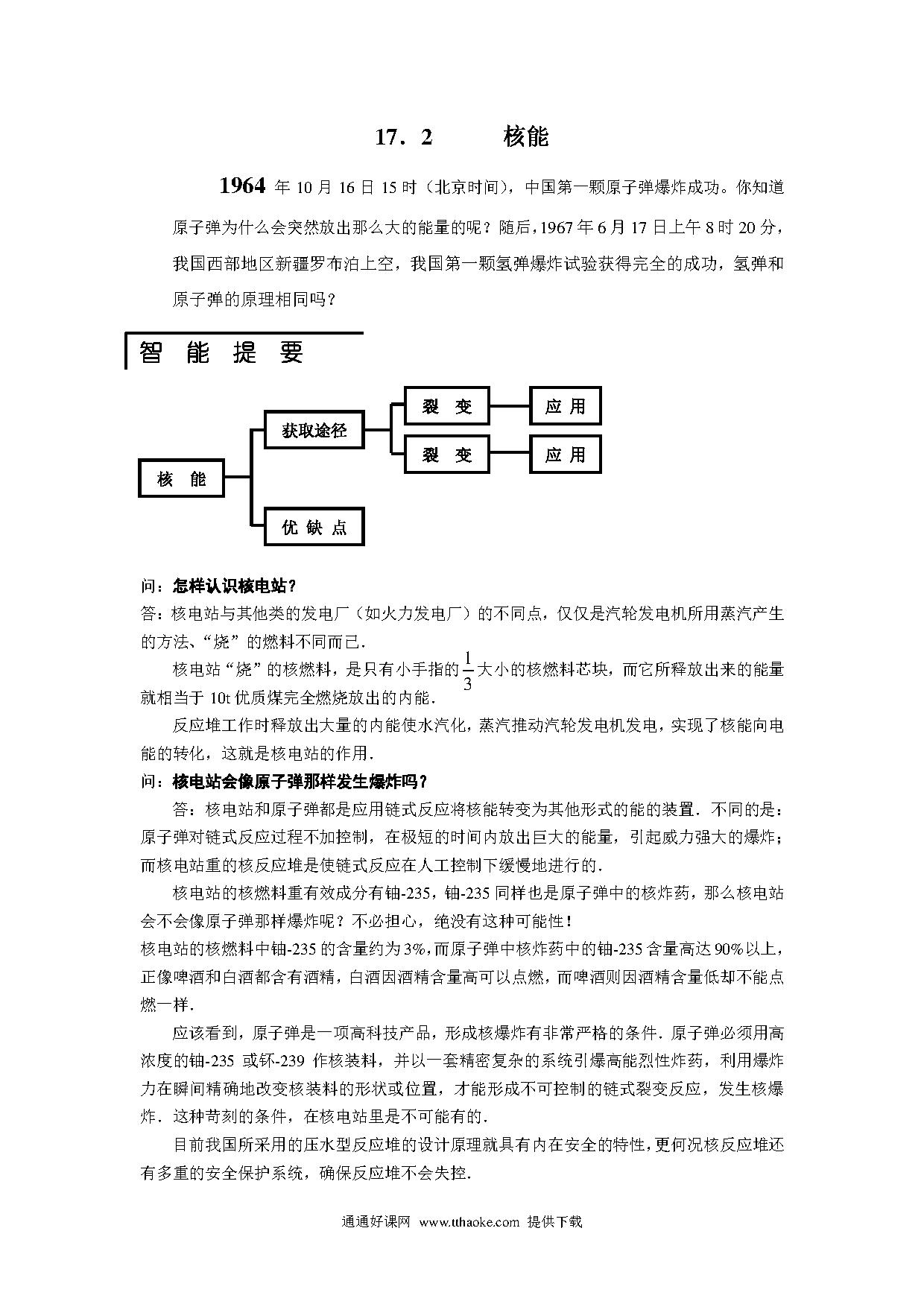 物理九年级人教新课标17.2核能课课解析与练习.pdf
