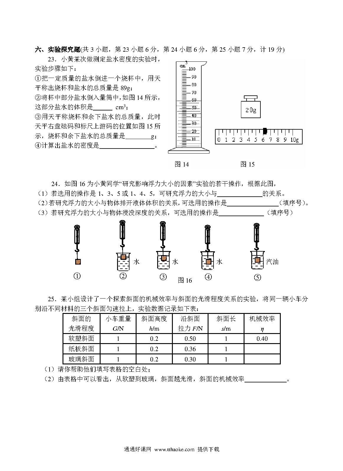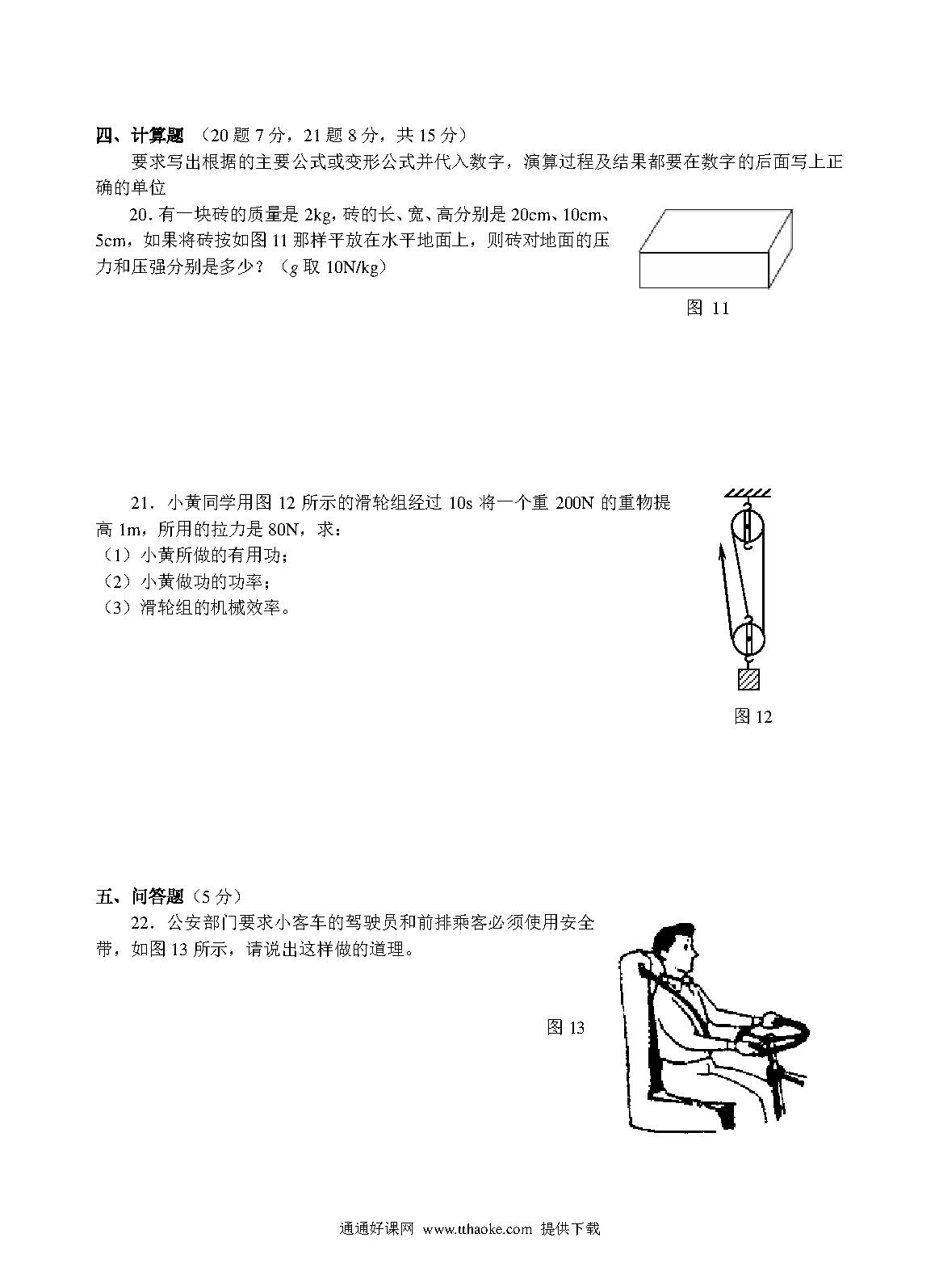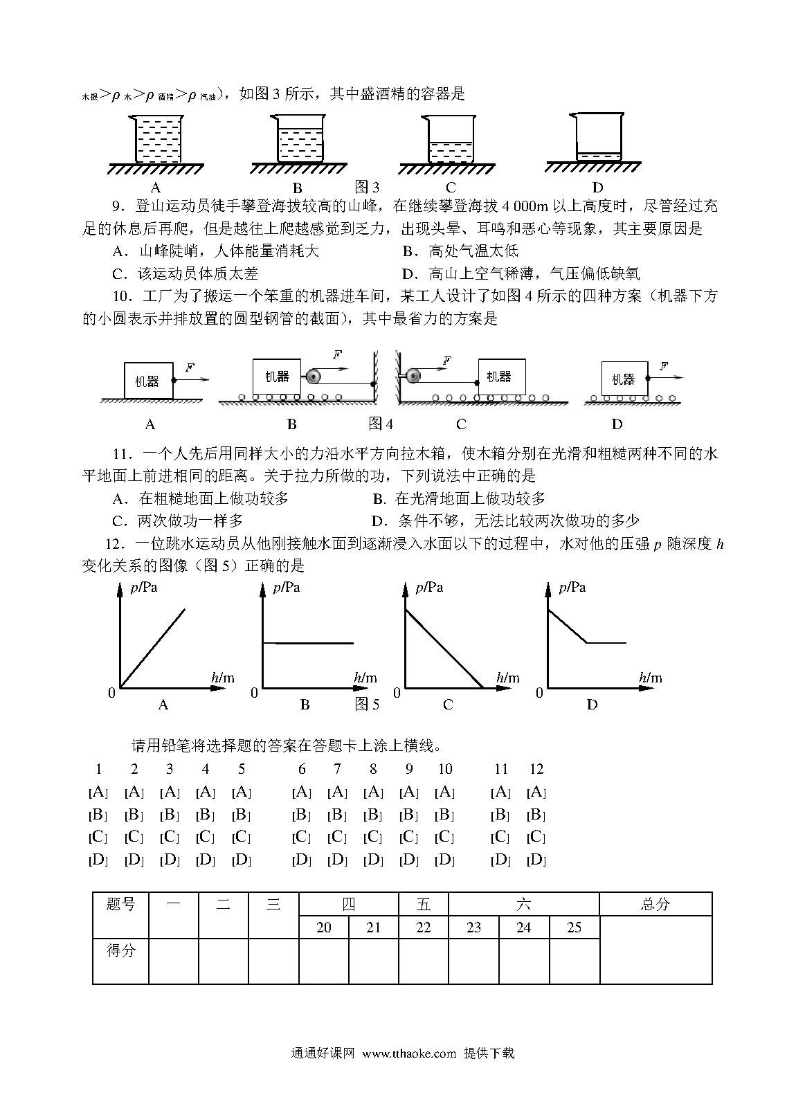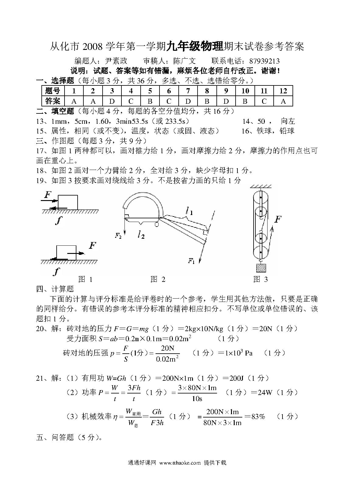 从化初三物理期末试题及答案