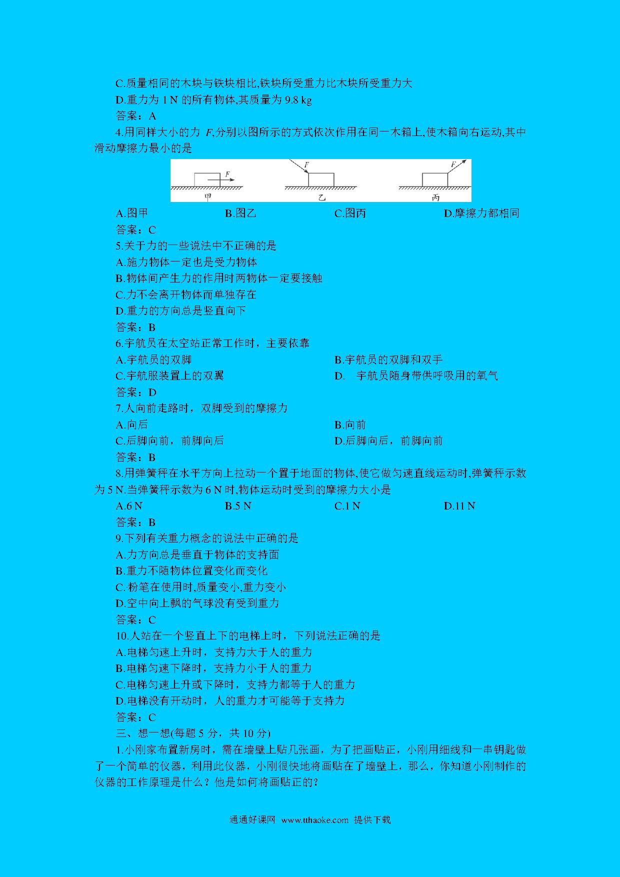 人教版初中物理九年级第十三章力和机械单元测试题试题2.pdf
