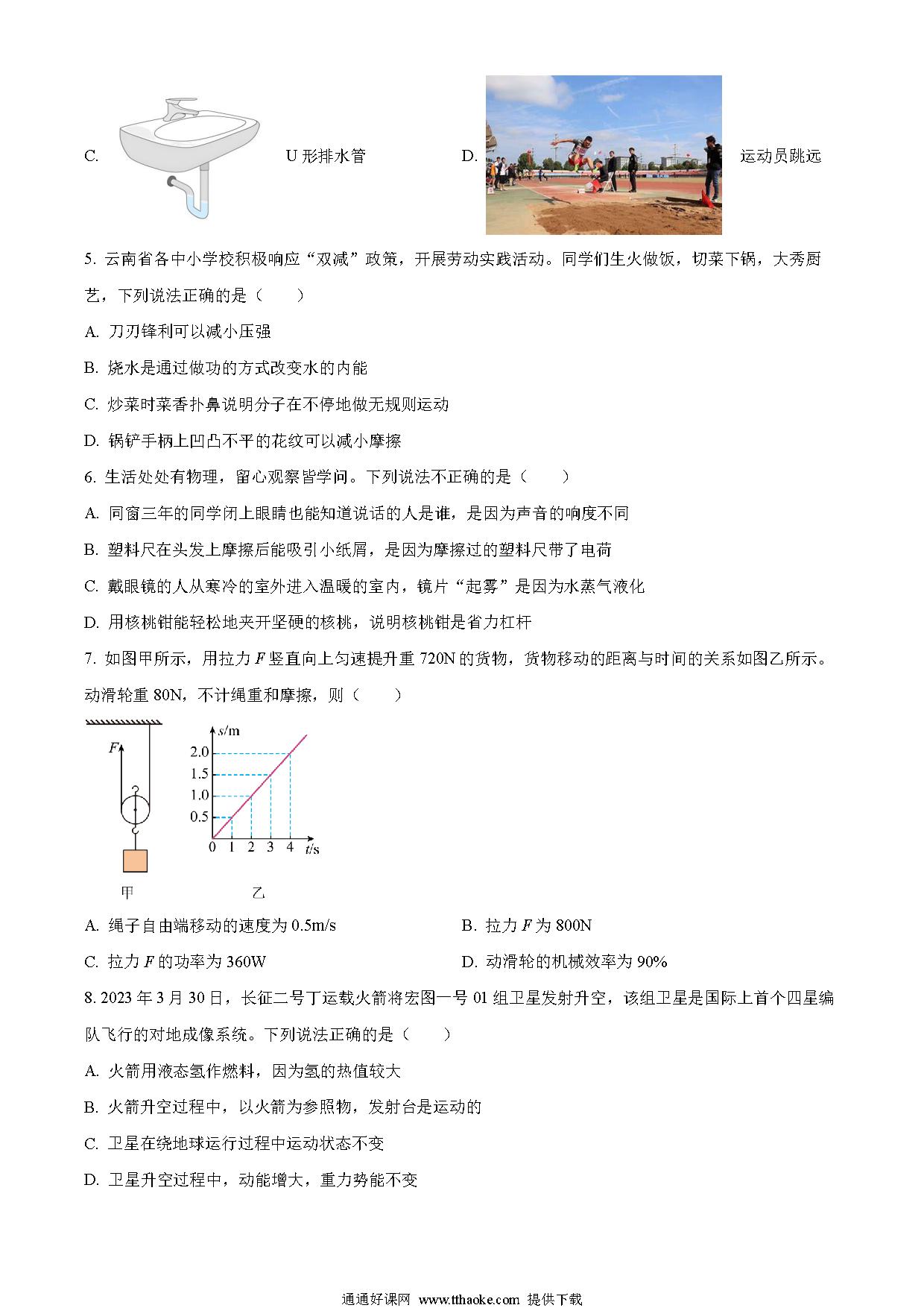 2023年云南省中考物理试题(原卷版)