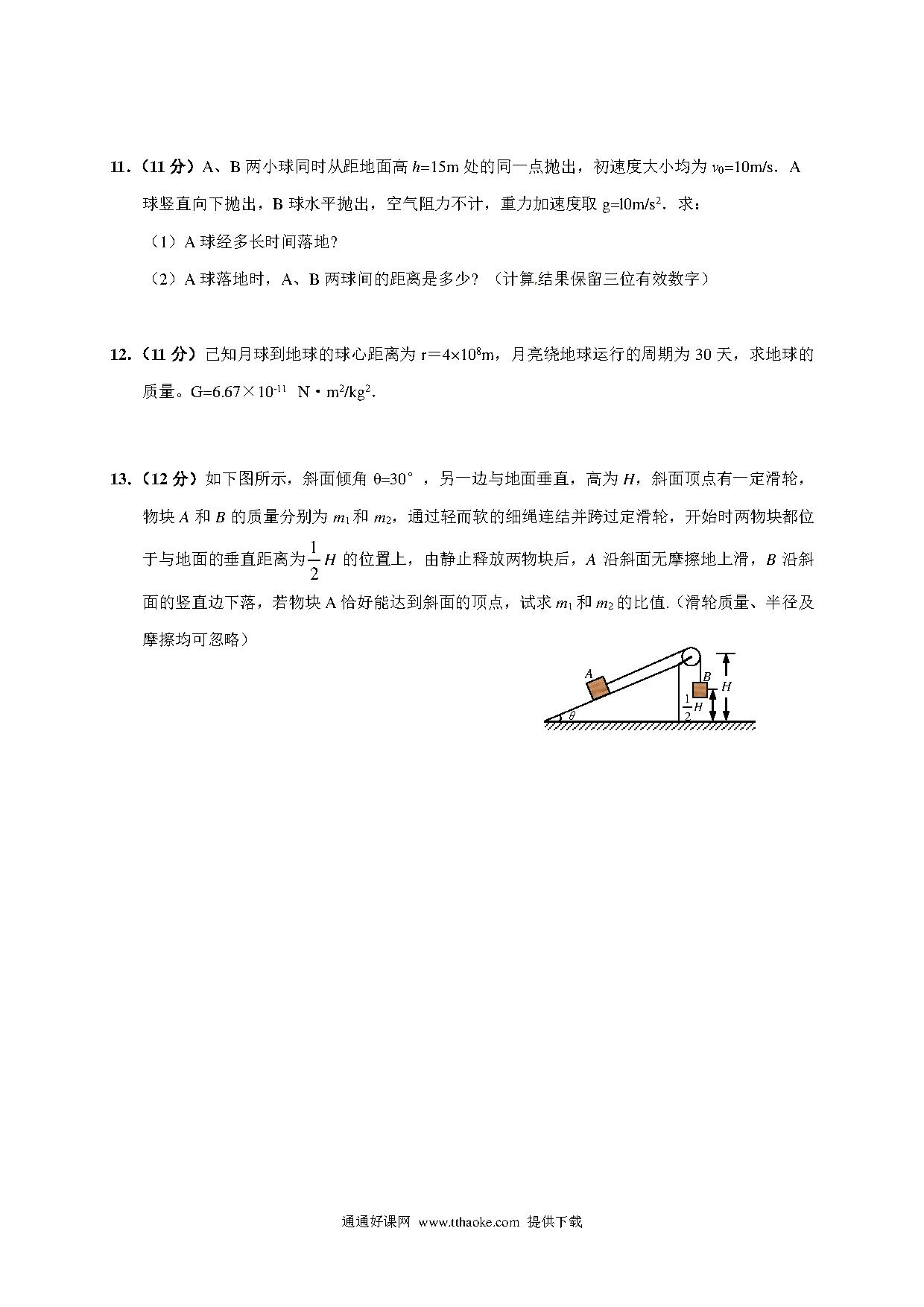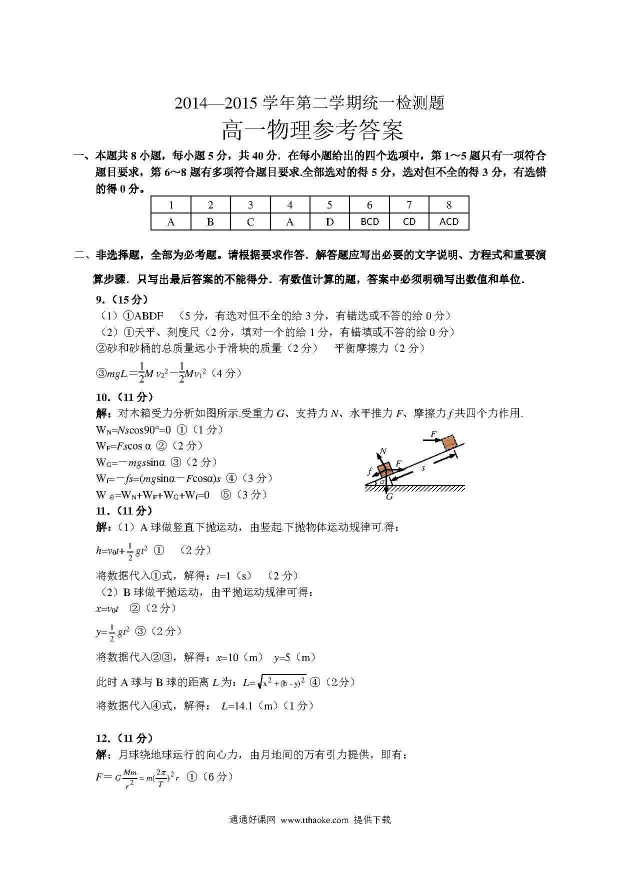 肇庆市第二学期高一物理期末试题及答案.pdf