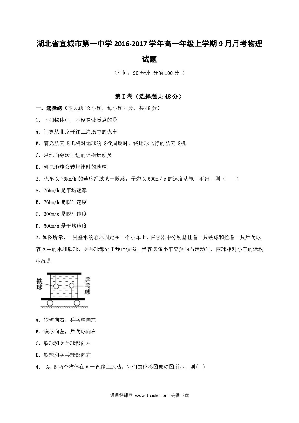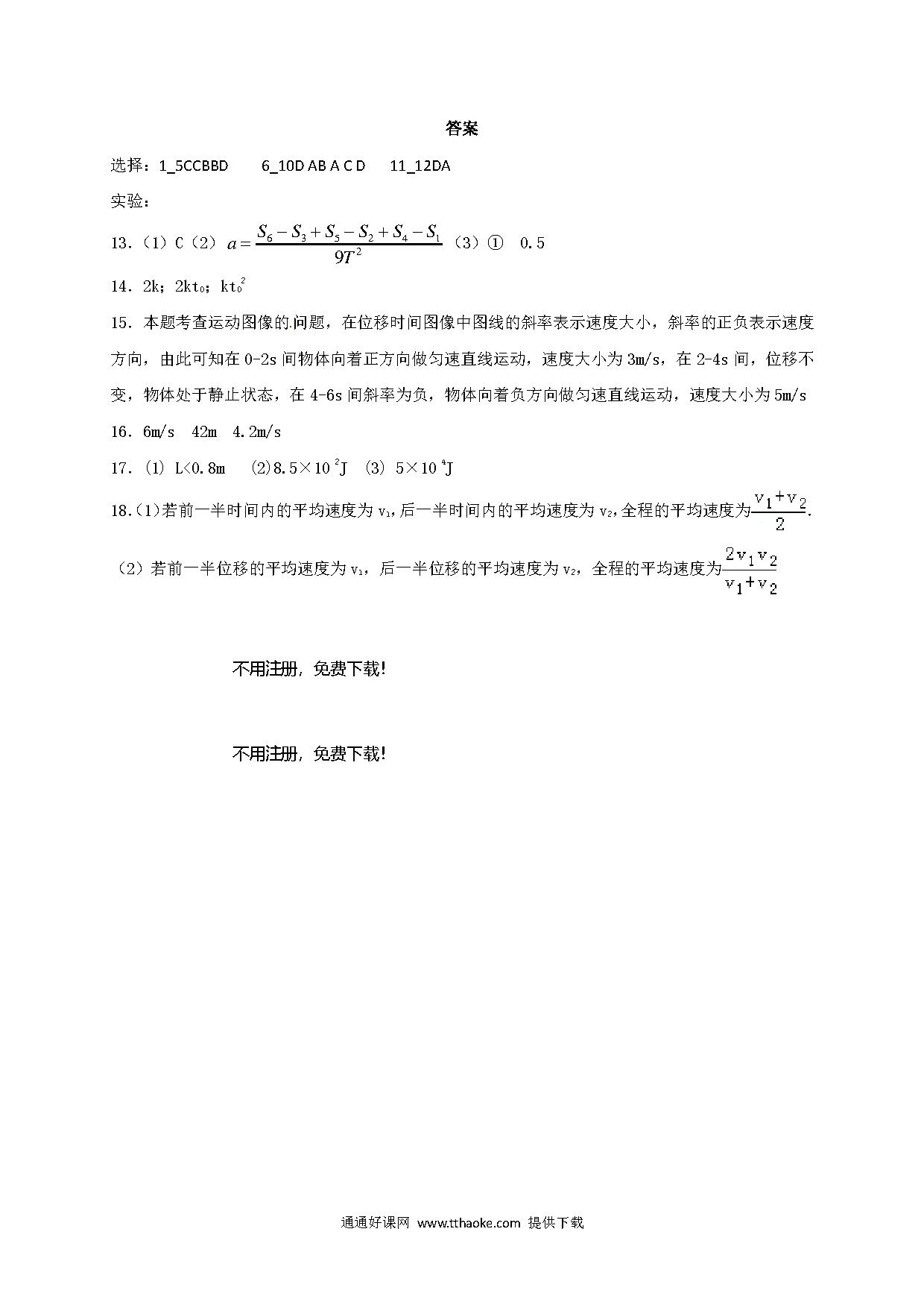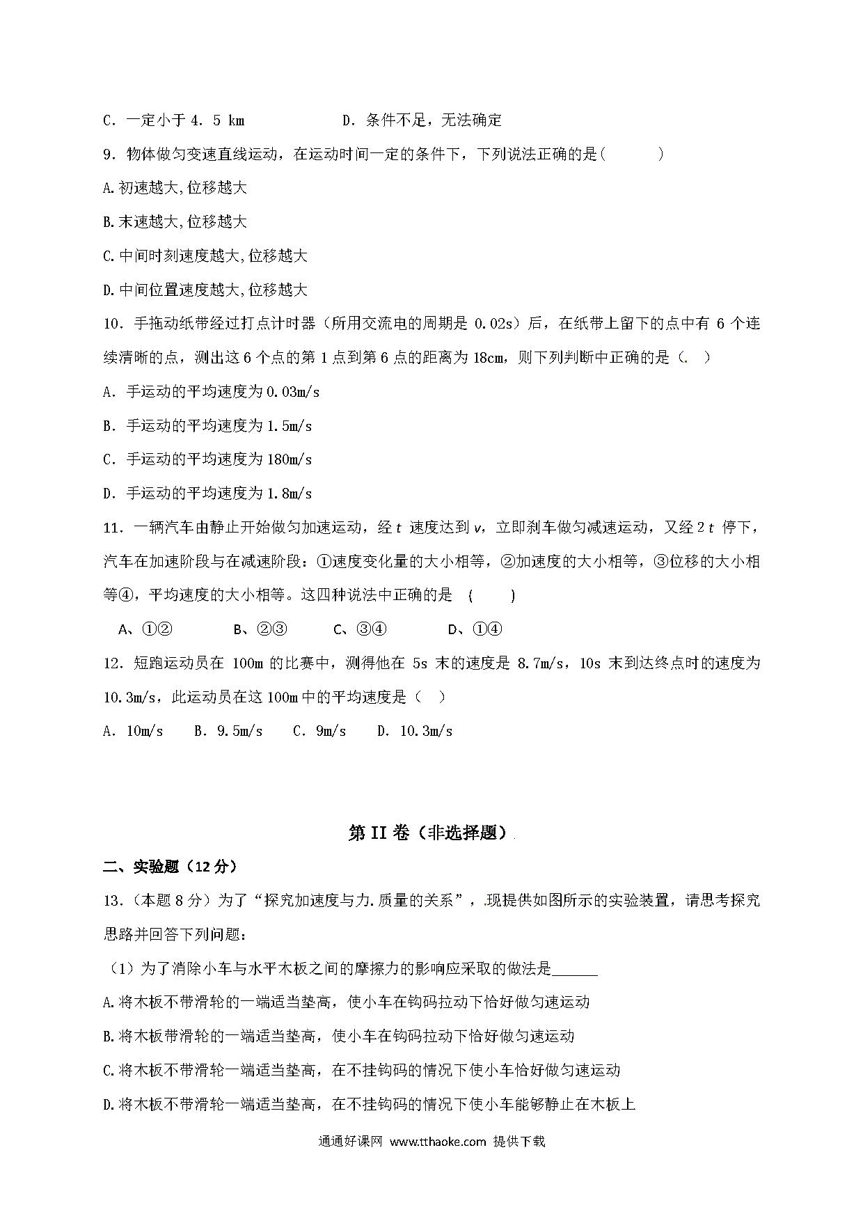 长春外国语学校高一物理(理)上学期期末试题及答案