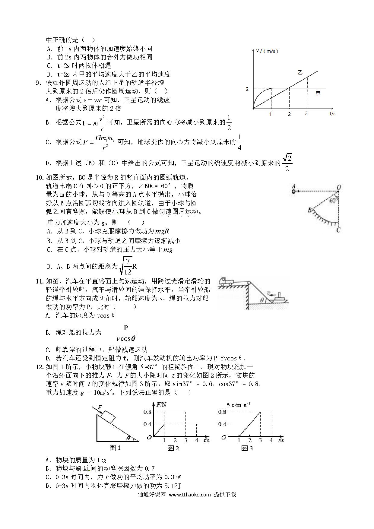 肇庆市第二学期高一物理期末试题及答案