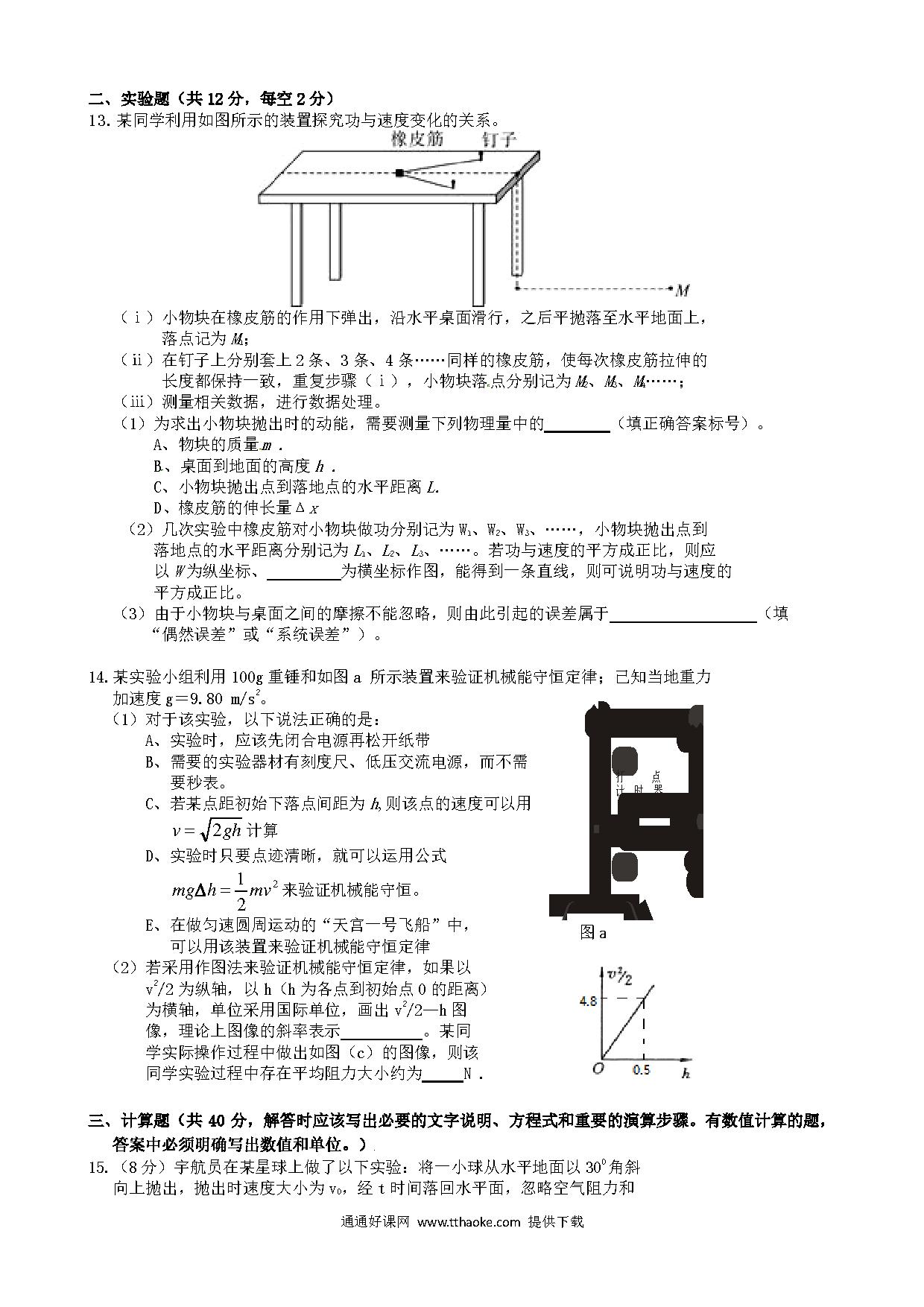 宜昌市金东方高一6月月考物理试题及答案