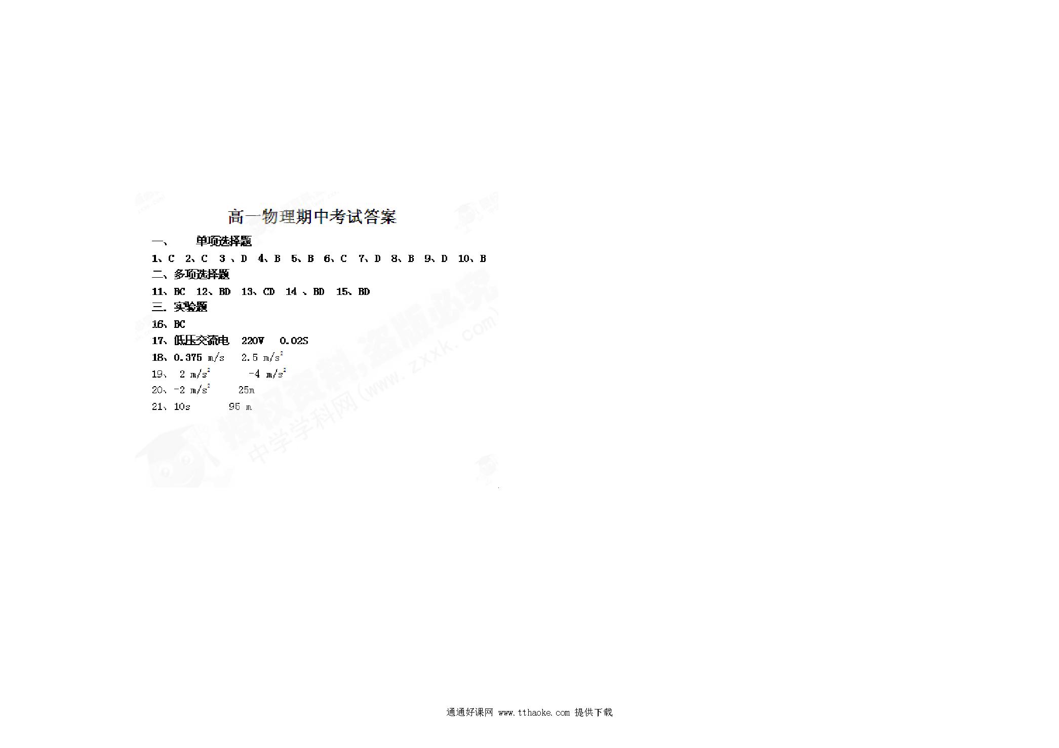 银川一中上高一物理期中试卷及答案