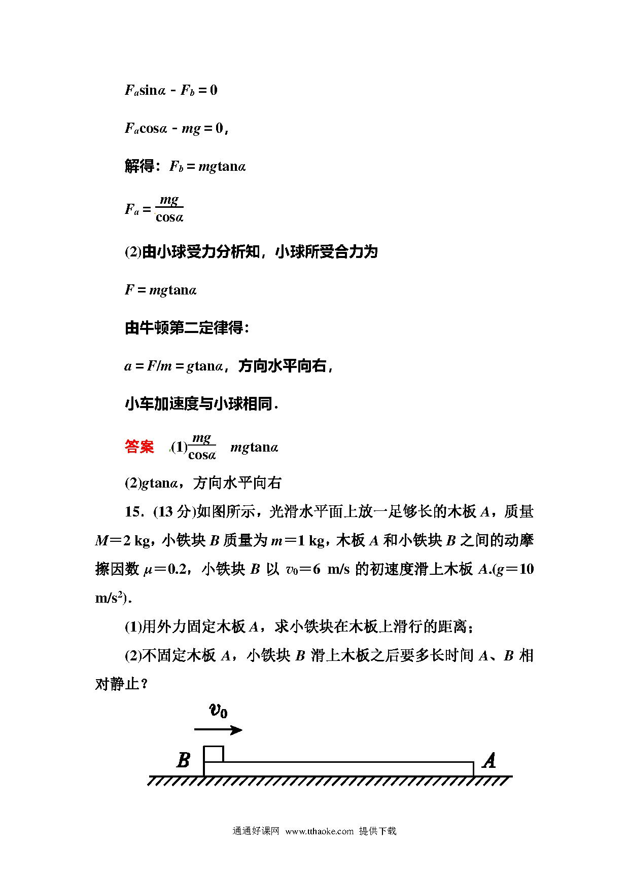 人教版必修一牛顿运动定律练习题及答案解析(15份)