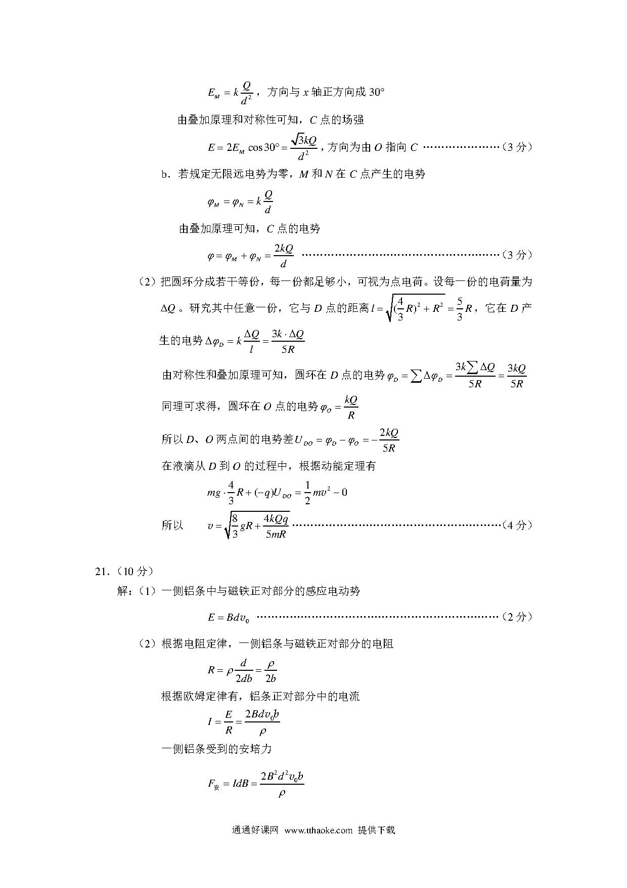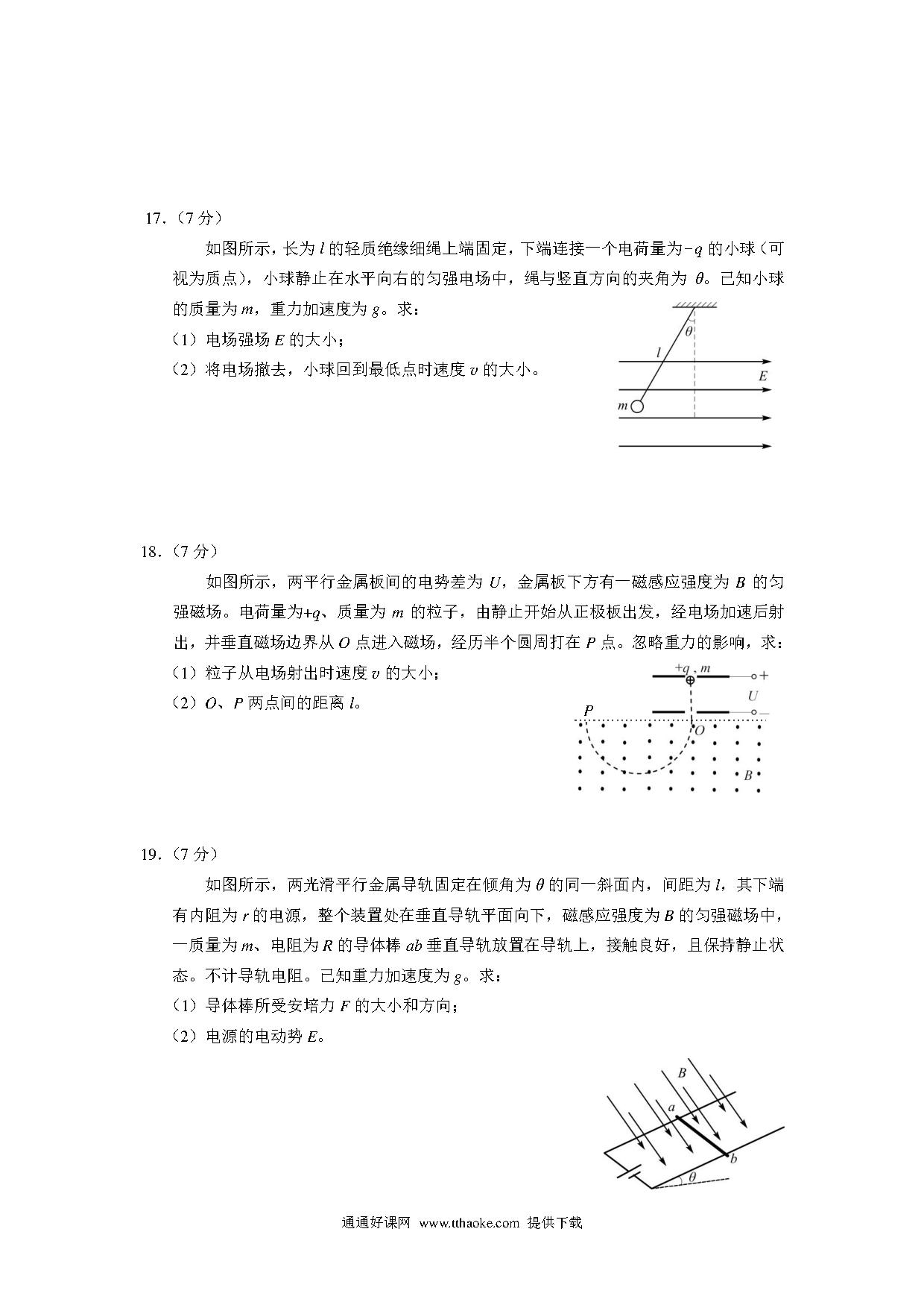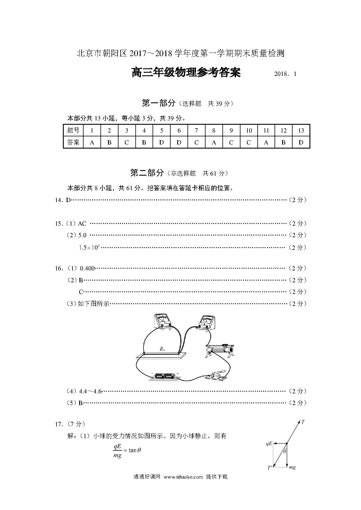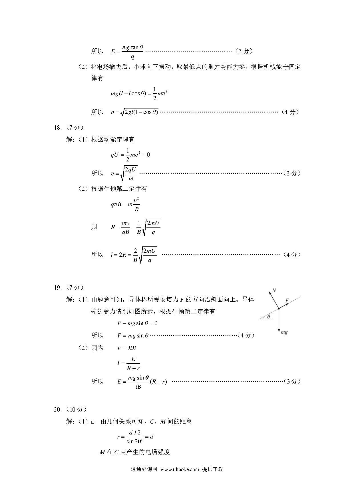 福州闽清高中第一学期高三物理期中考试试题及答案