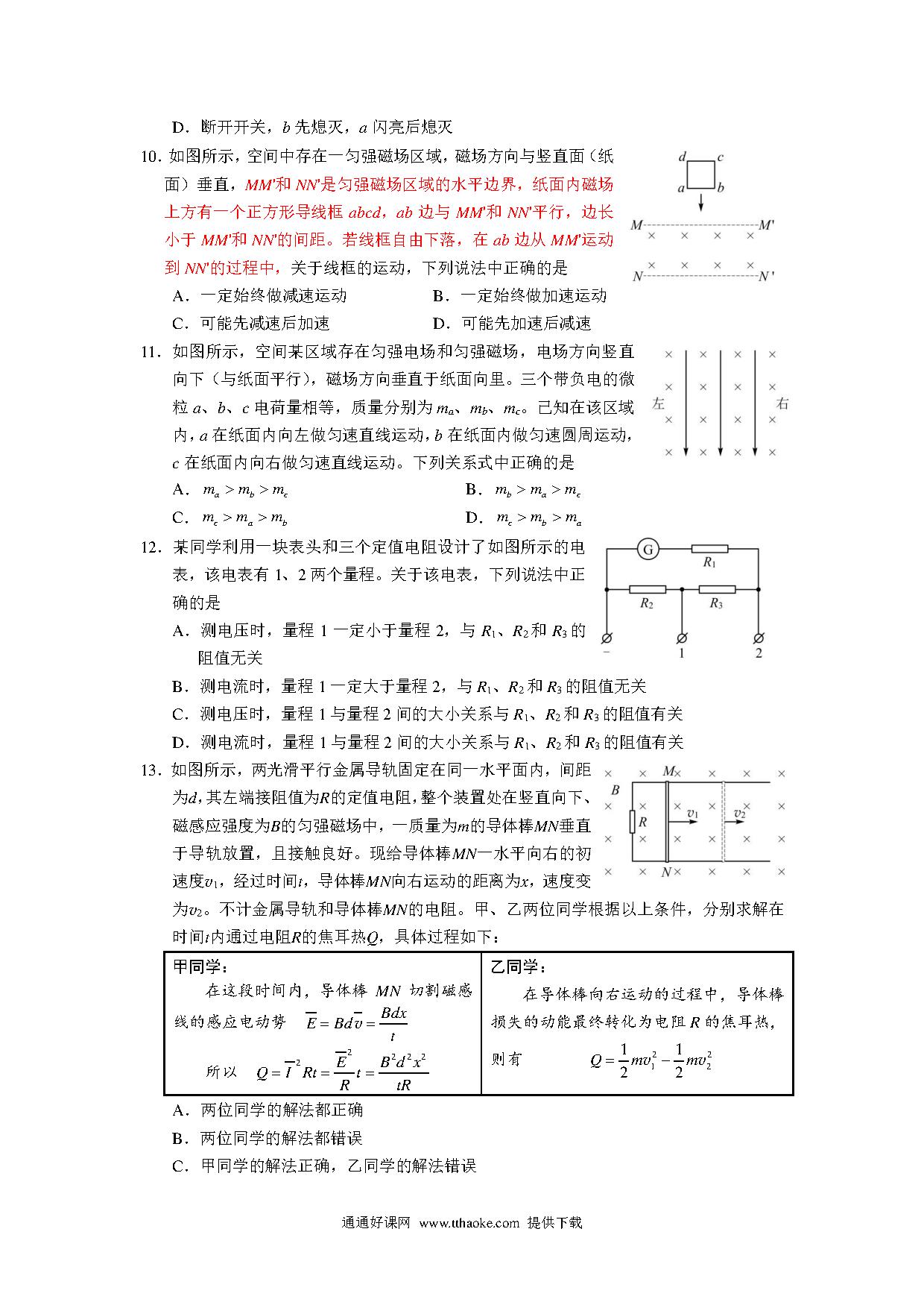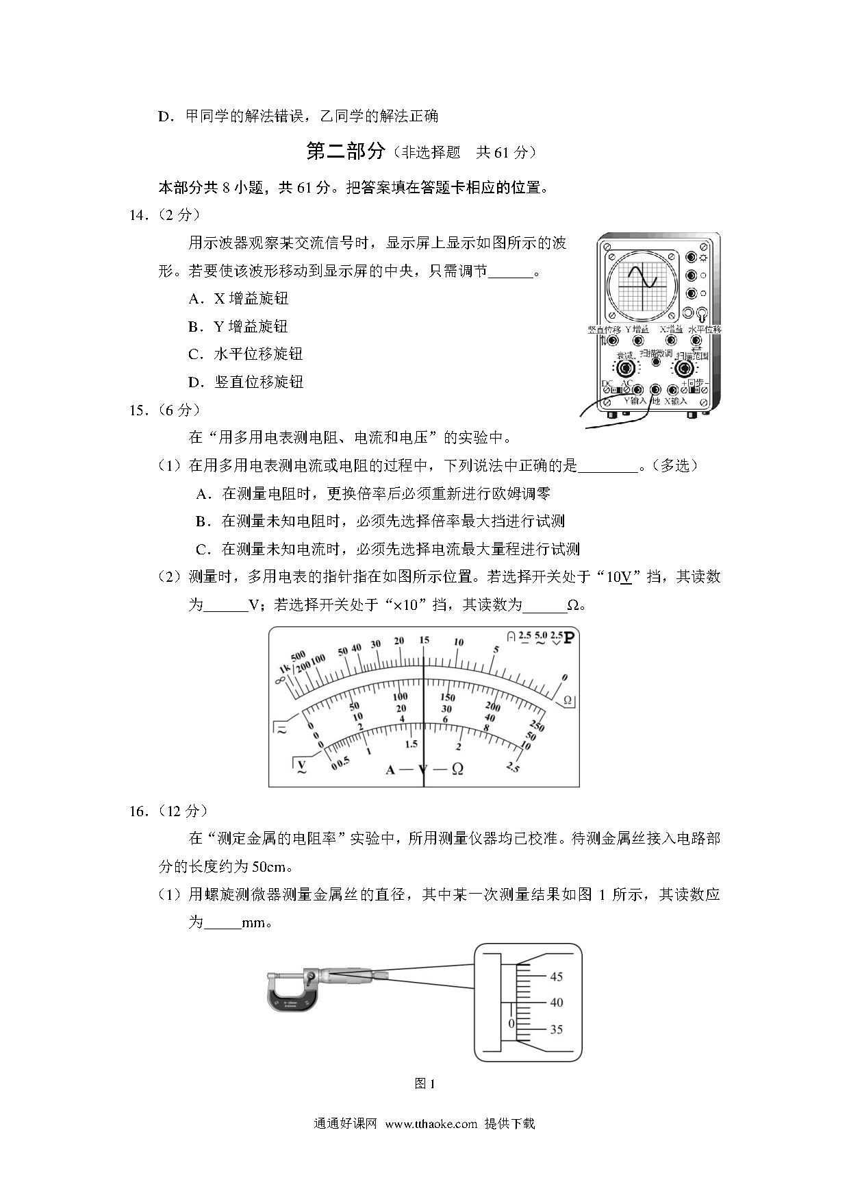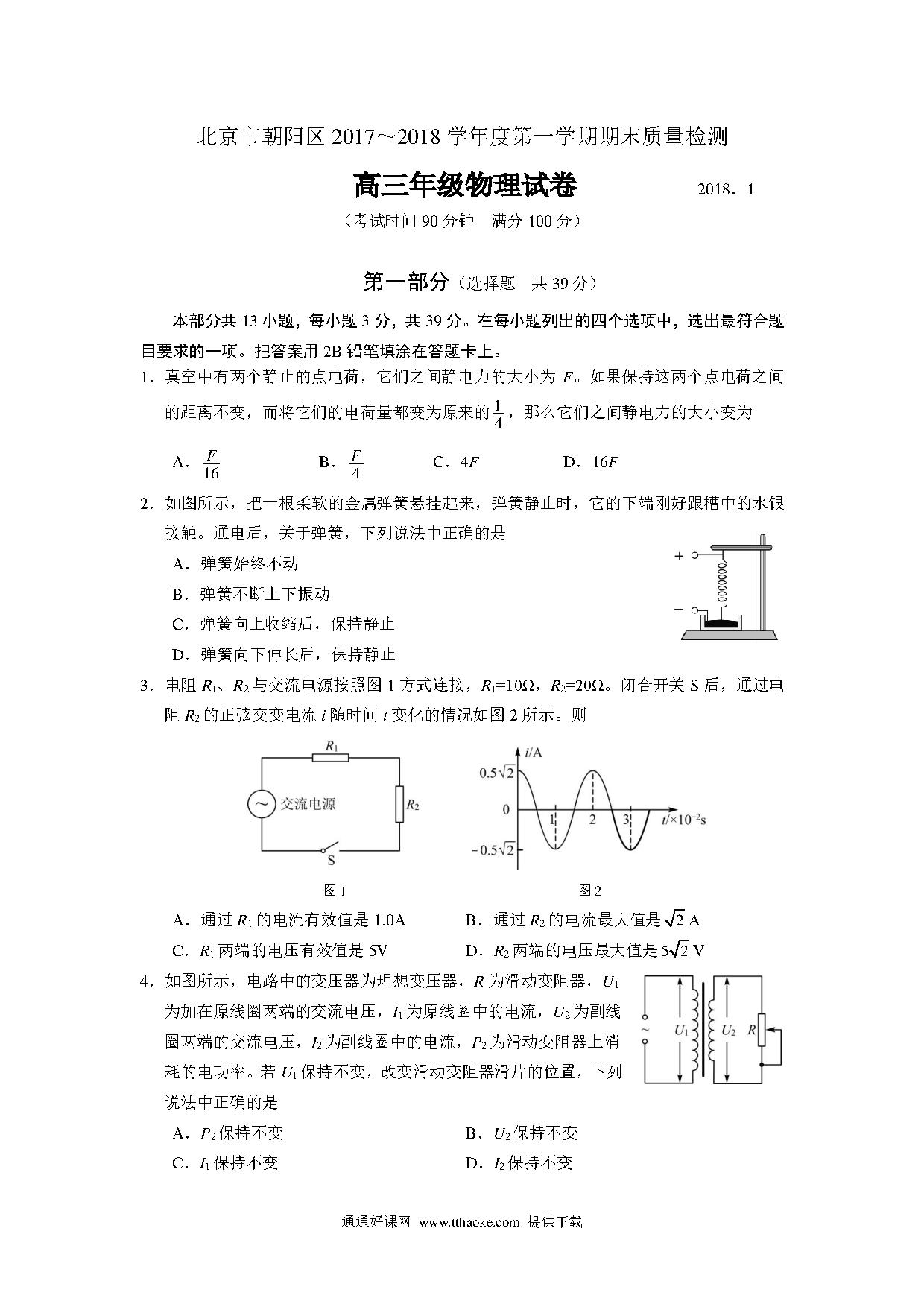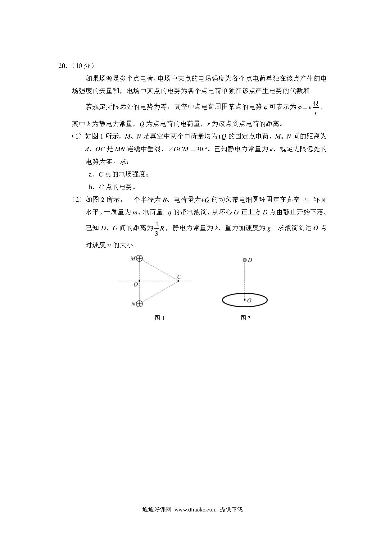 福州闽清高中第一学期高三物理期中考试试题及答案