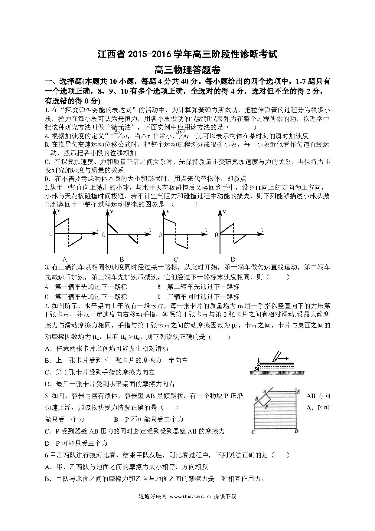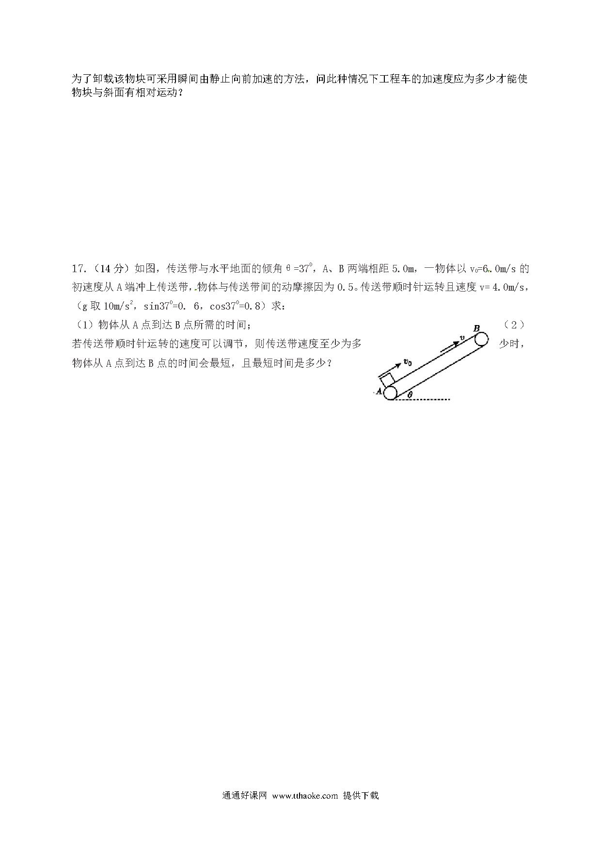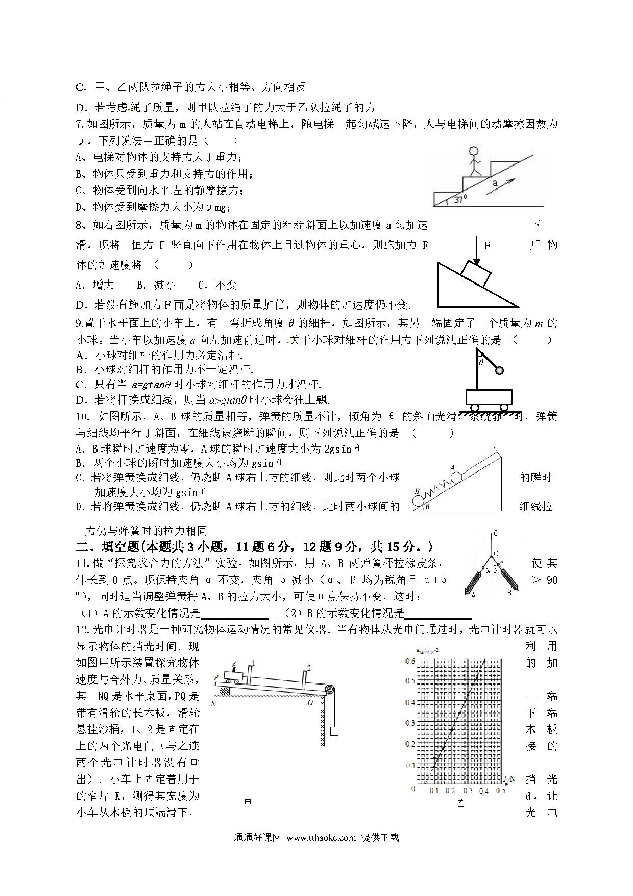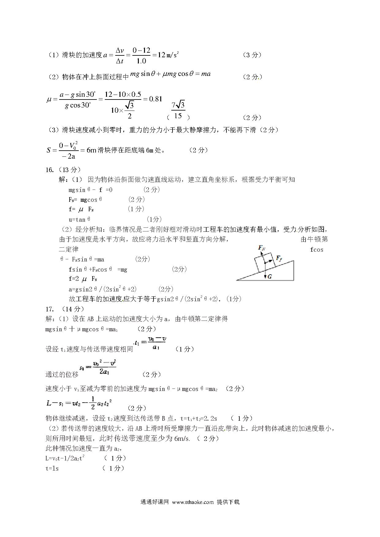 福州闽清高中第一学期高三物理期中考试试题及答案