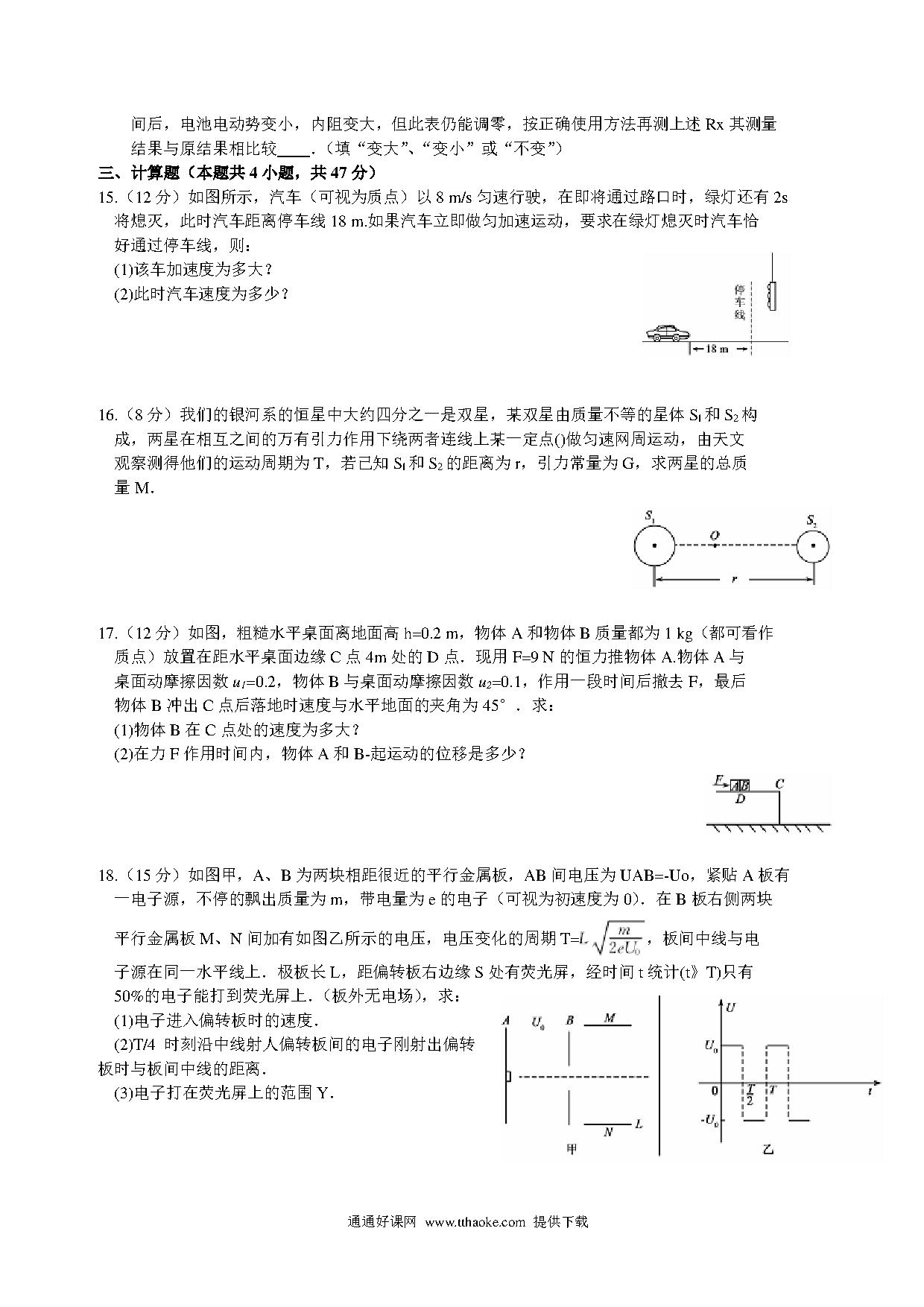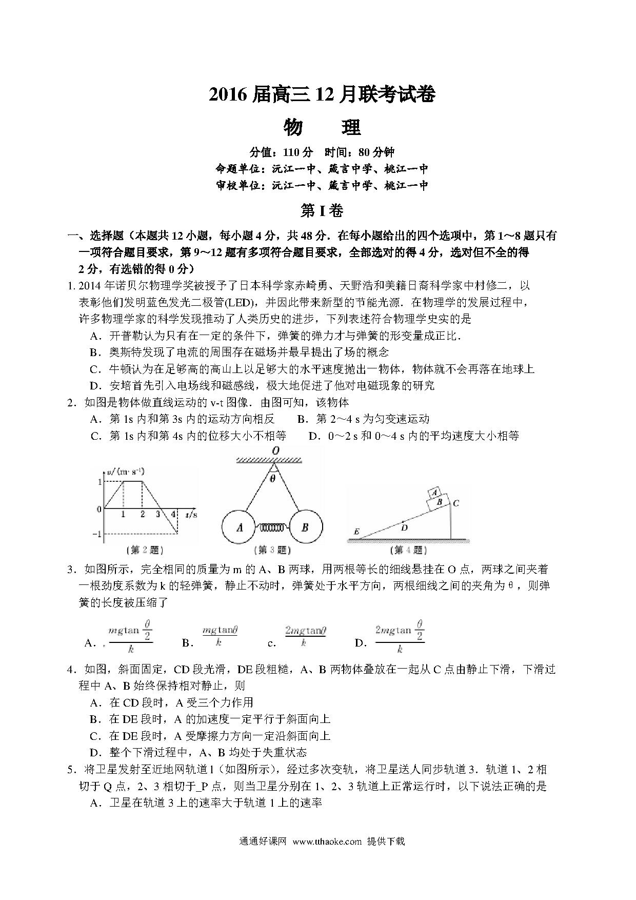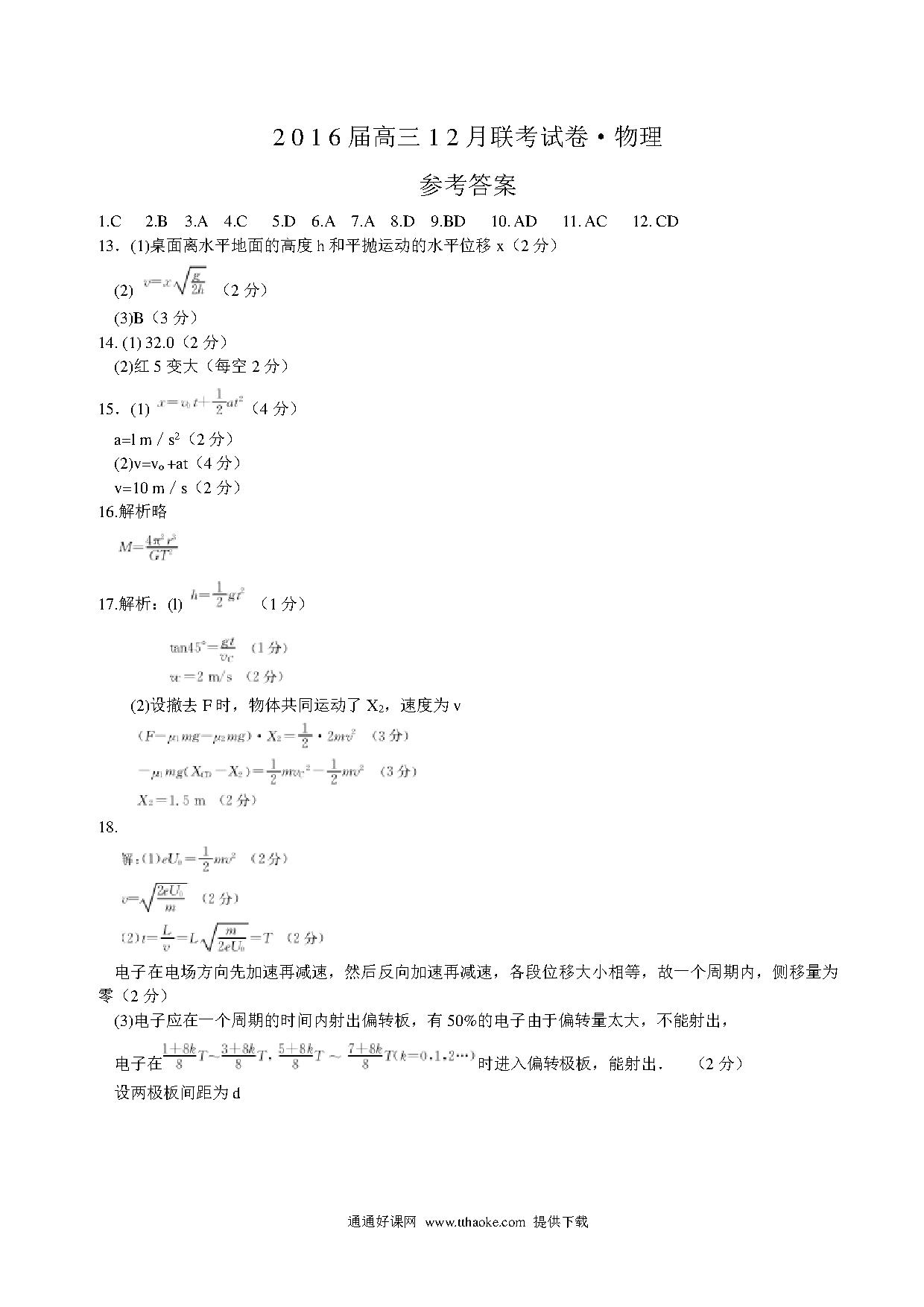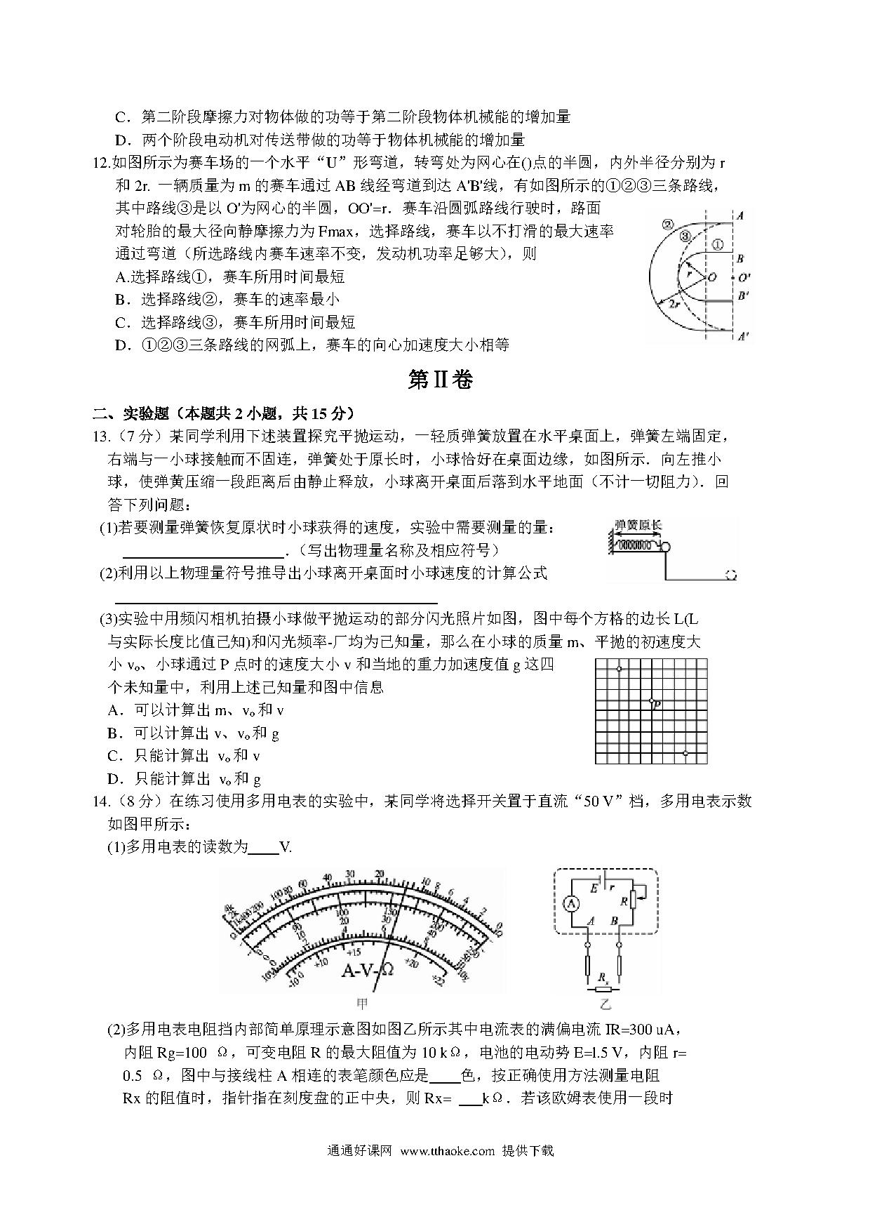 福州闽清高中第一学期高三物理期中考试试题及答案