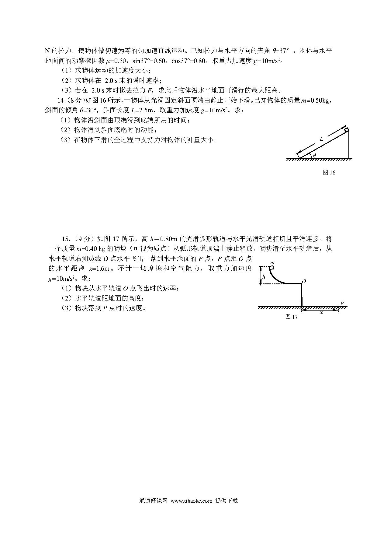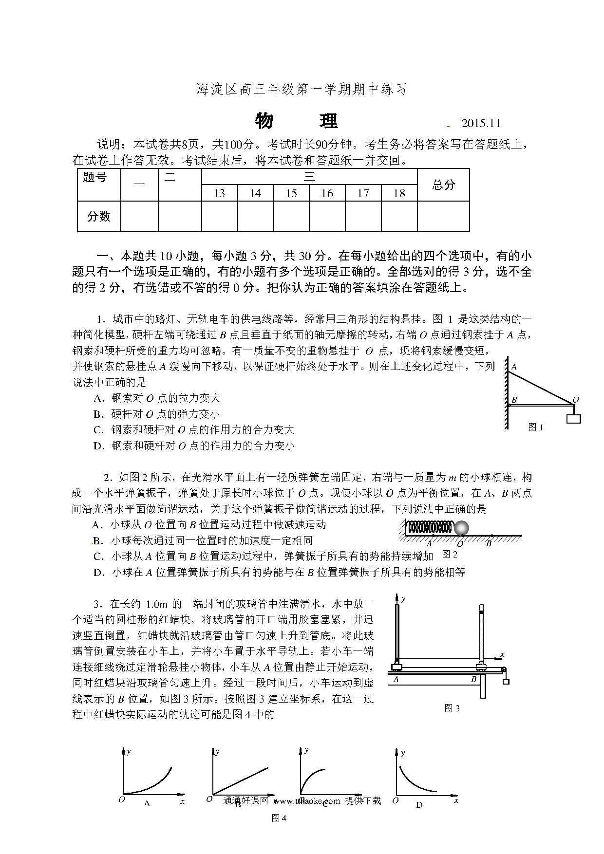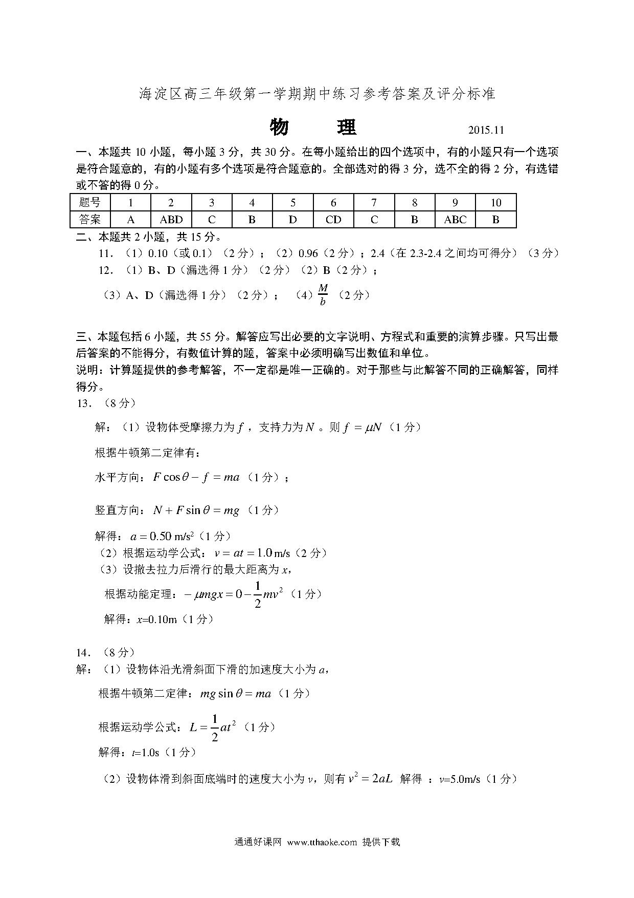 福州闽清高中第一学期高三物理期中考试试题及答案