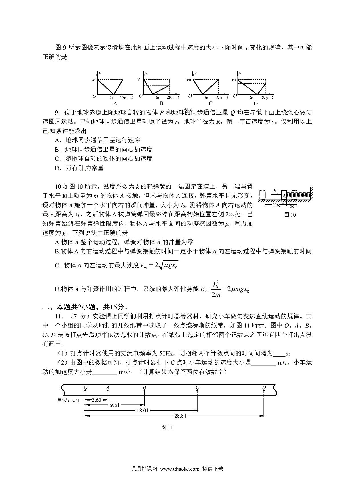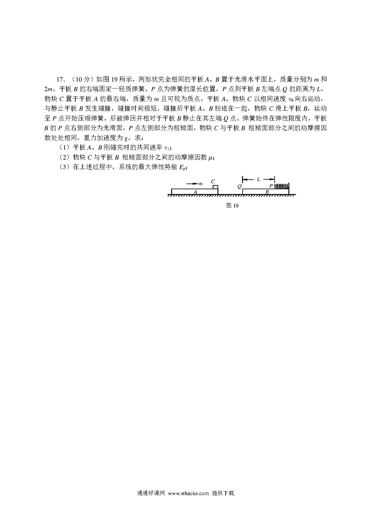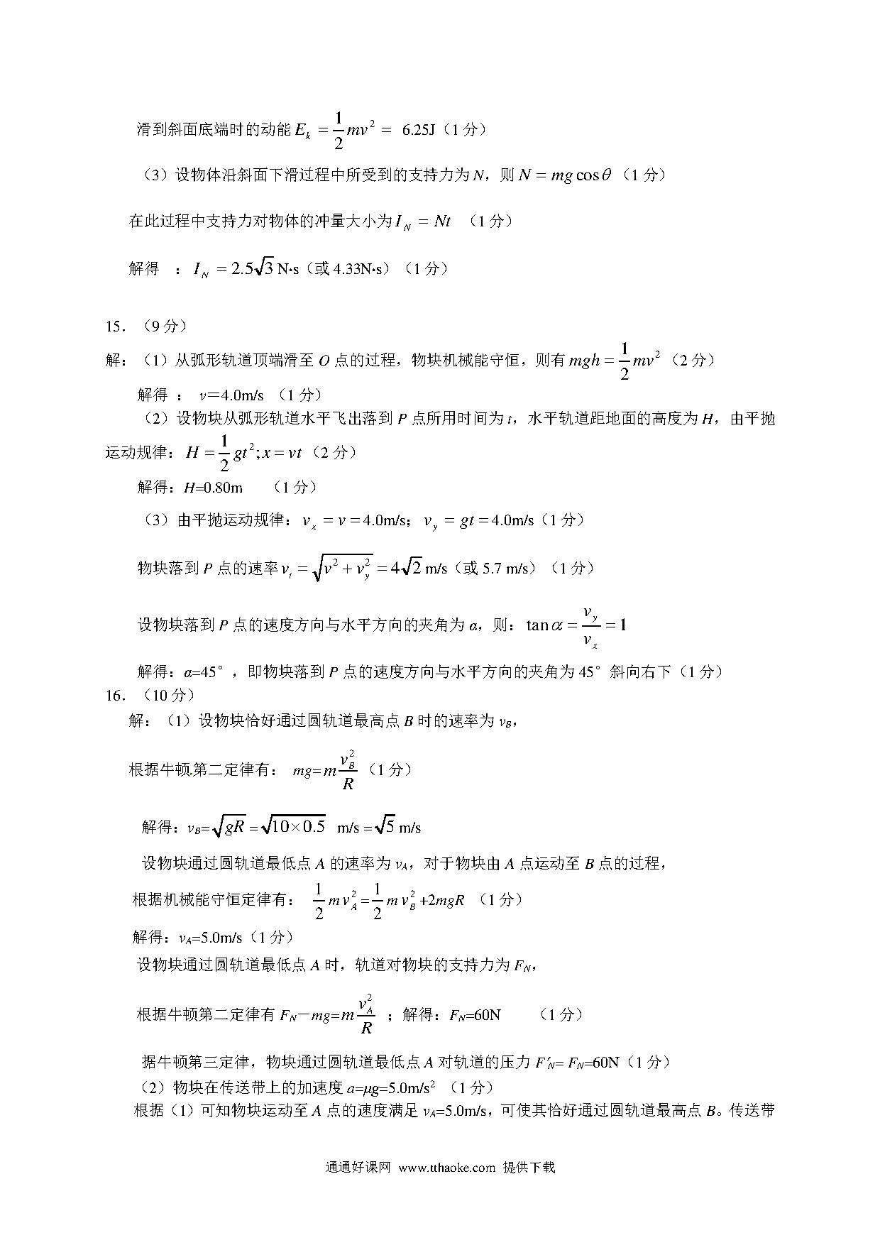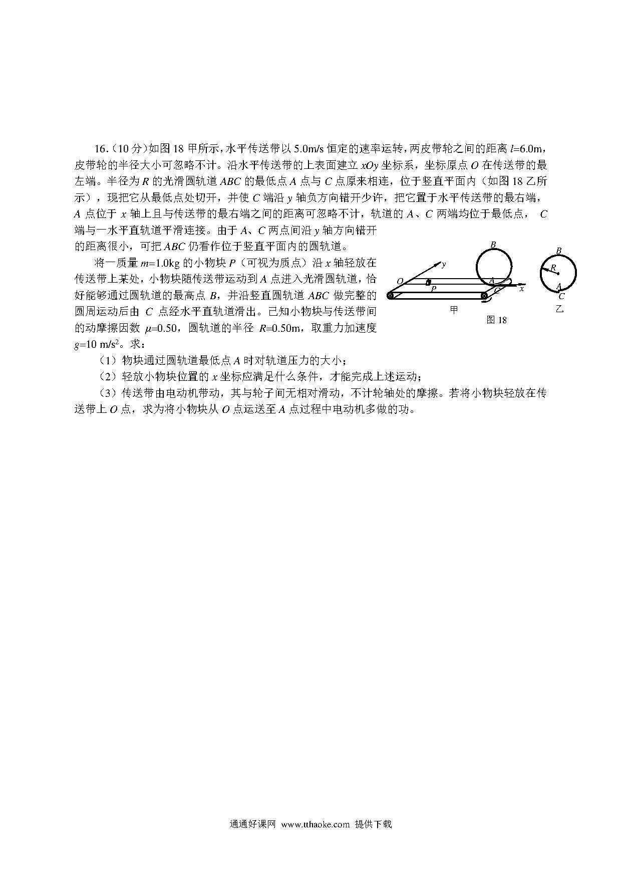 福州闽清高中第一学期高三物理期中考试试题及答案