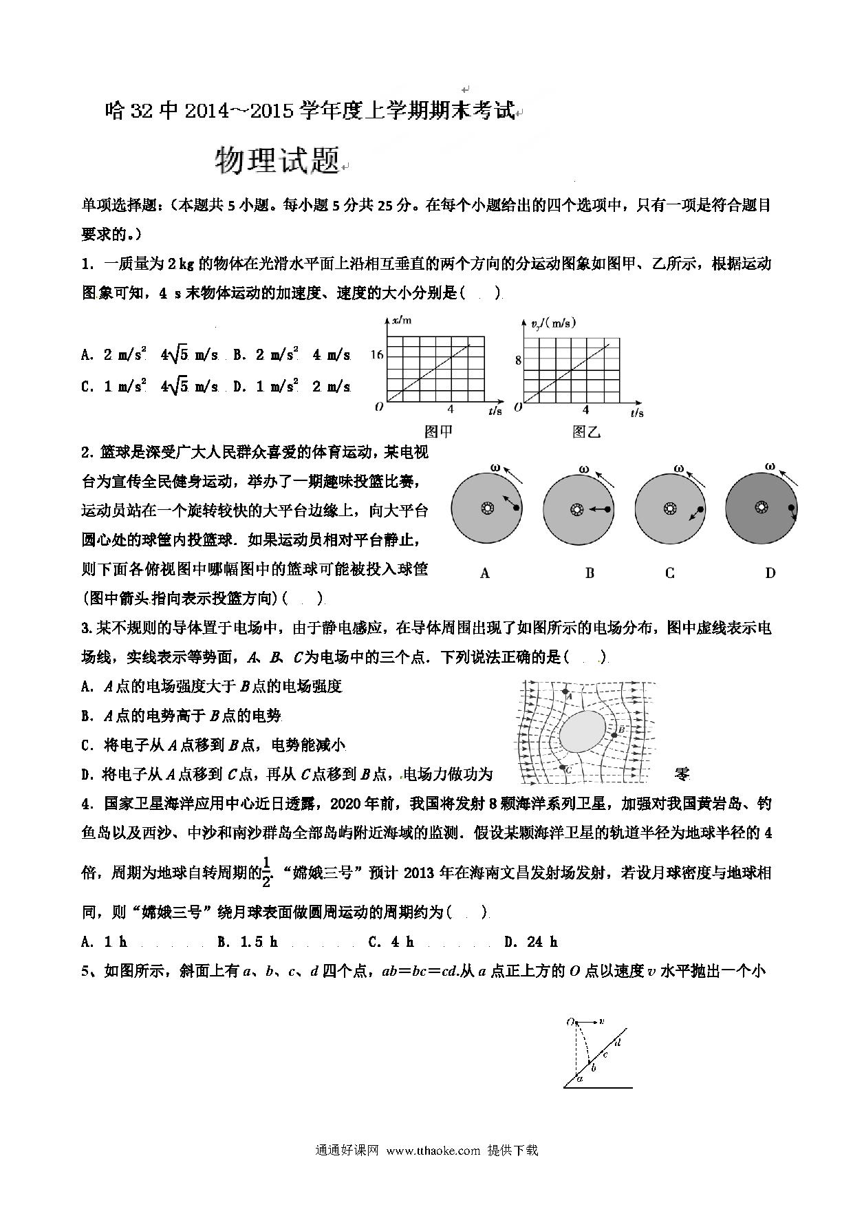 哈尔滨三十二中高三物理上学期期末试题及答案.pdf