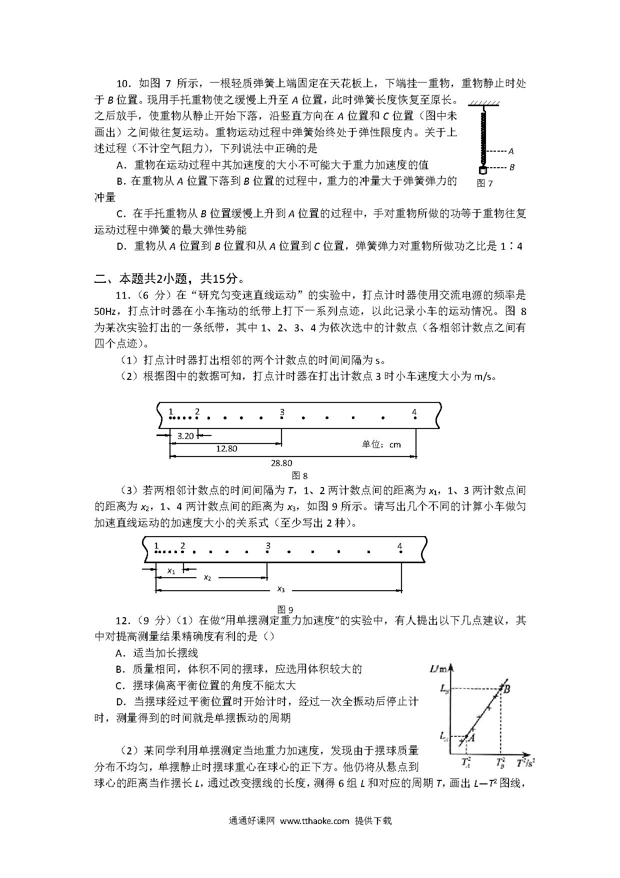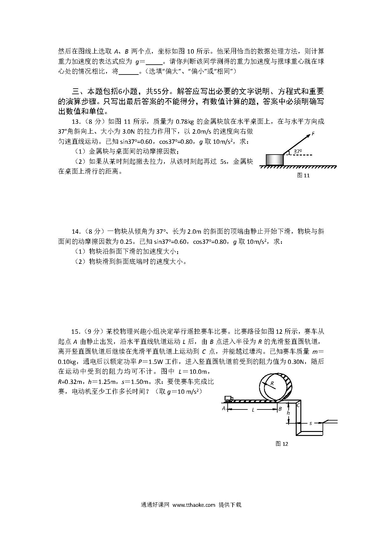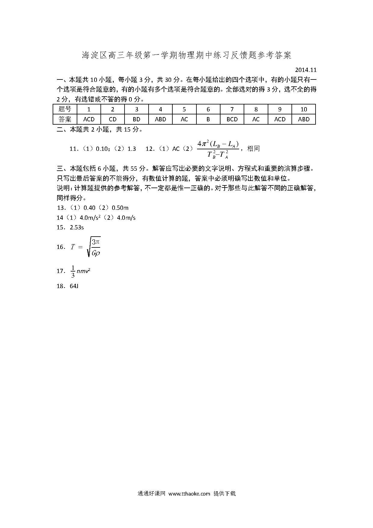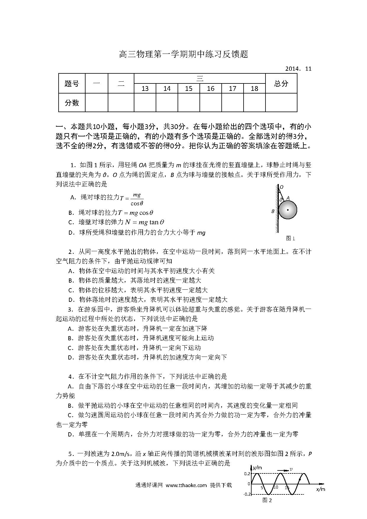 福州闽清高中第一学期高三物理期中考试试题及答案