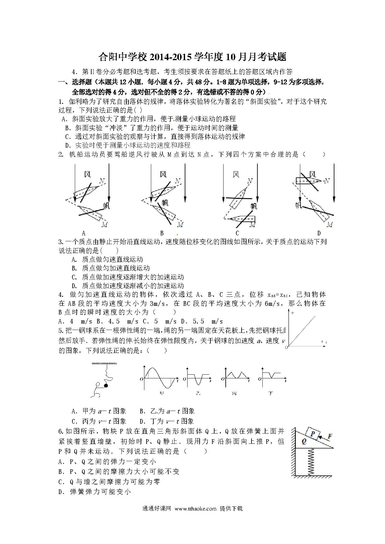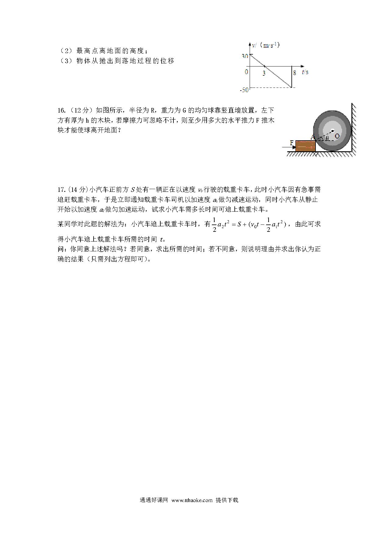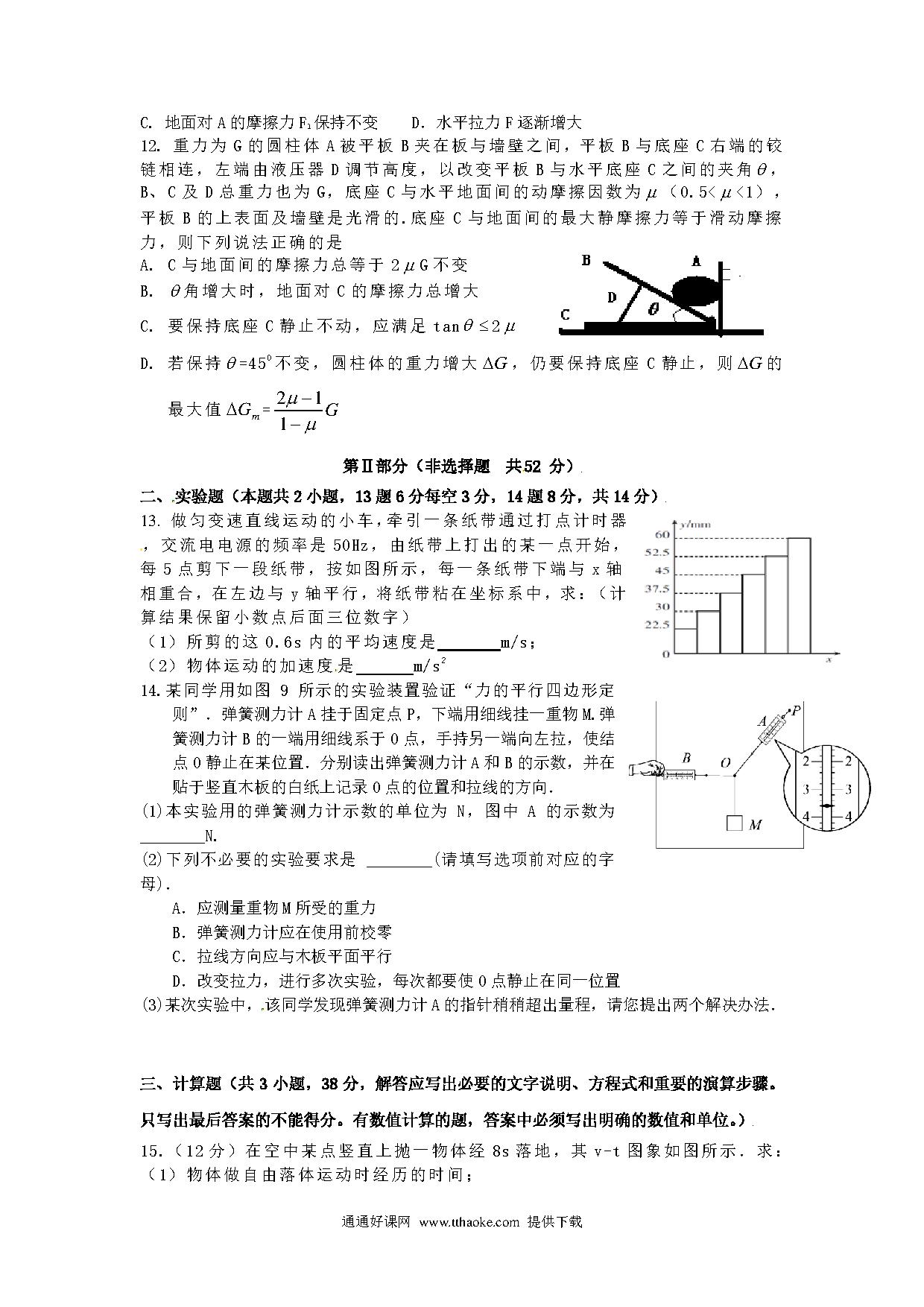 福州闽清高中第一学期高三物理期中考试试题及答案