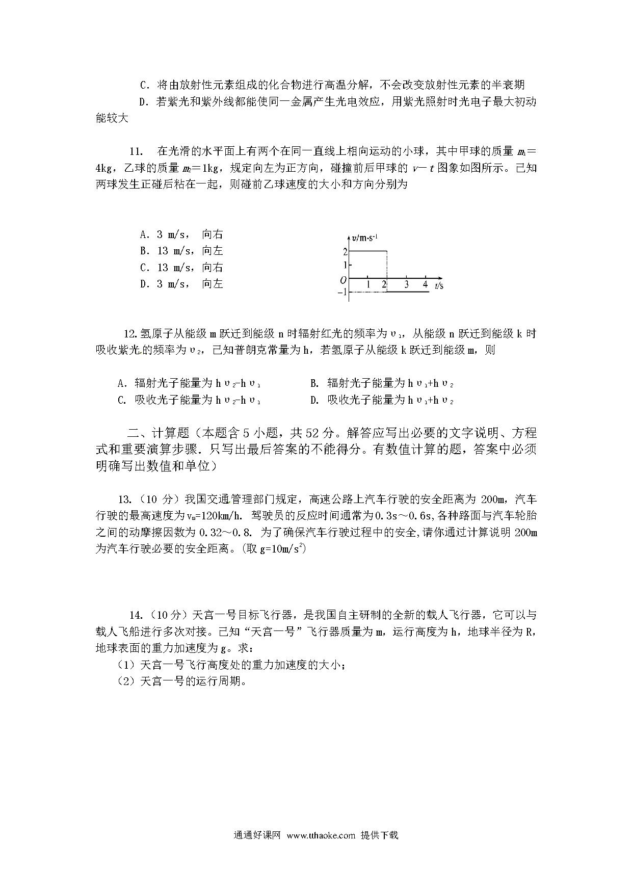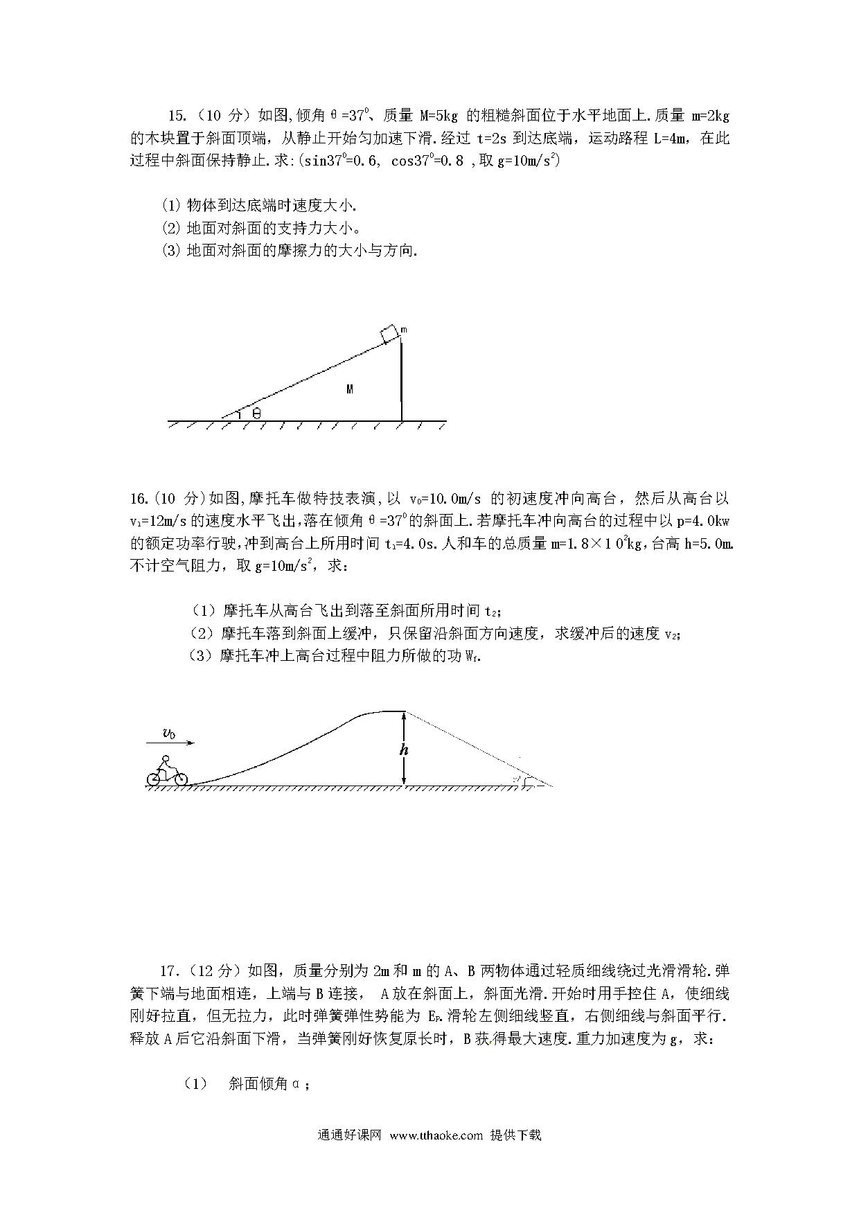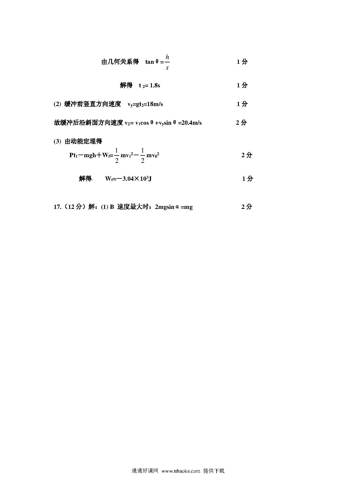 福州闽清高中第一学期高三物理期中考试试题及答案