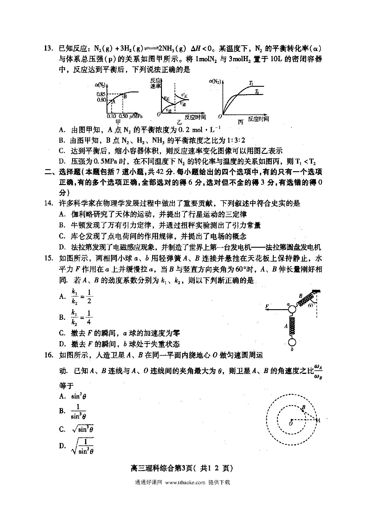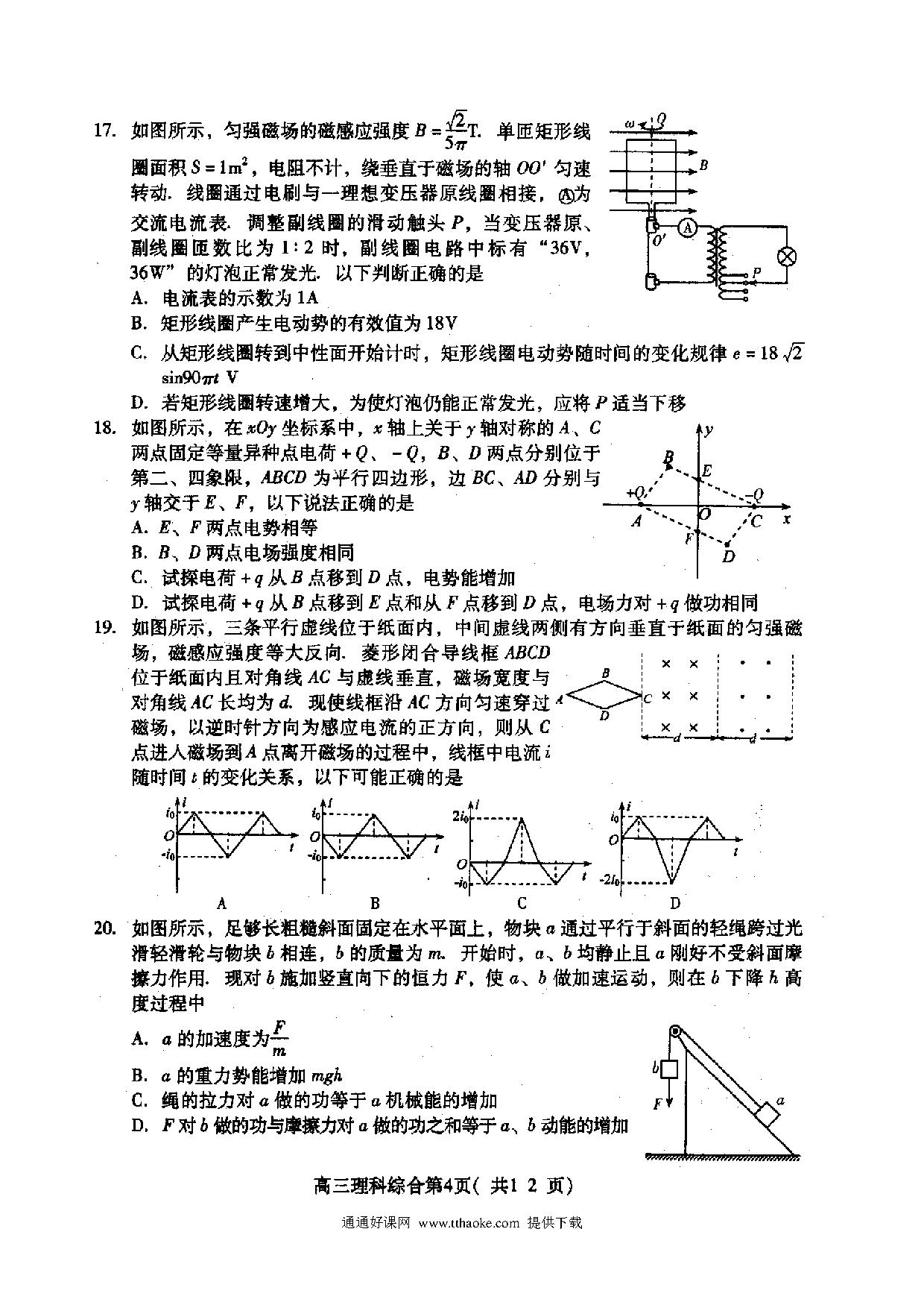 福州闽清高中第一学期高三物理期中考试试题及答案