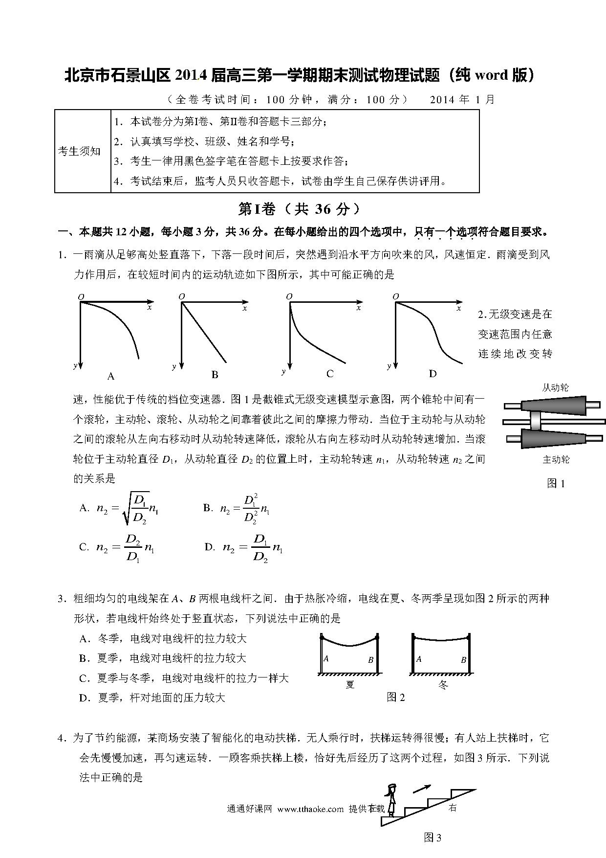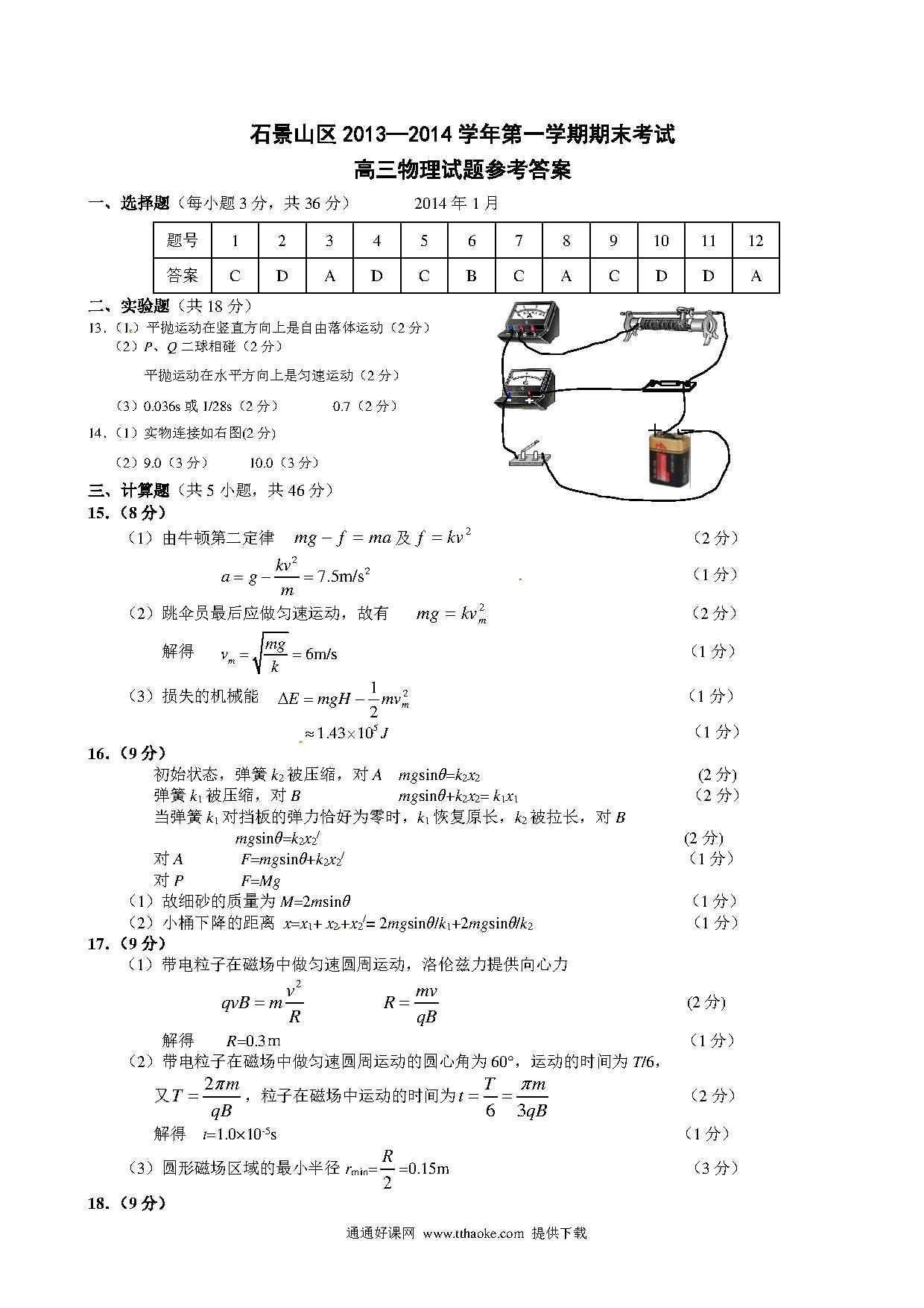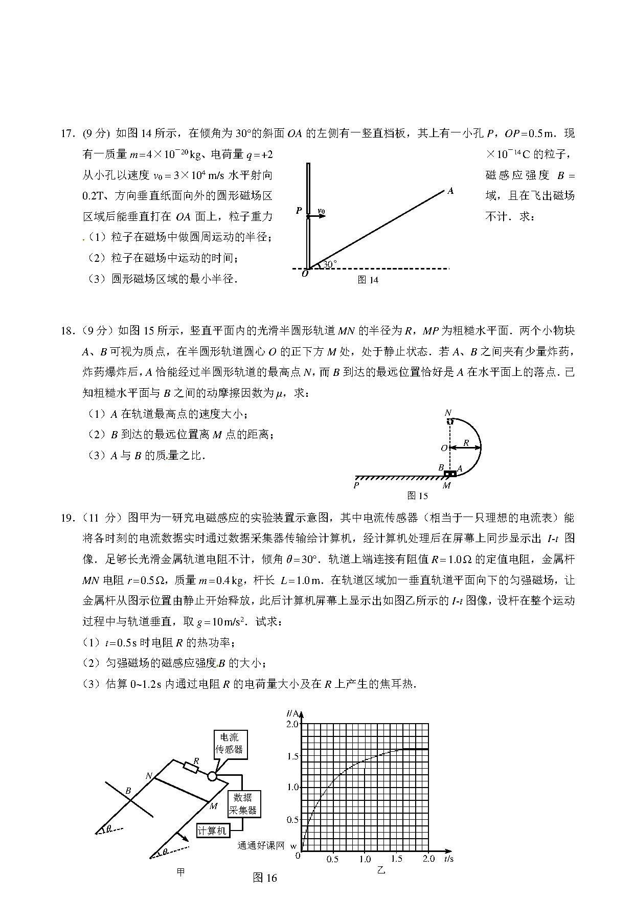 福州闽清高中第一学期高三物理期中考试试题及答案