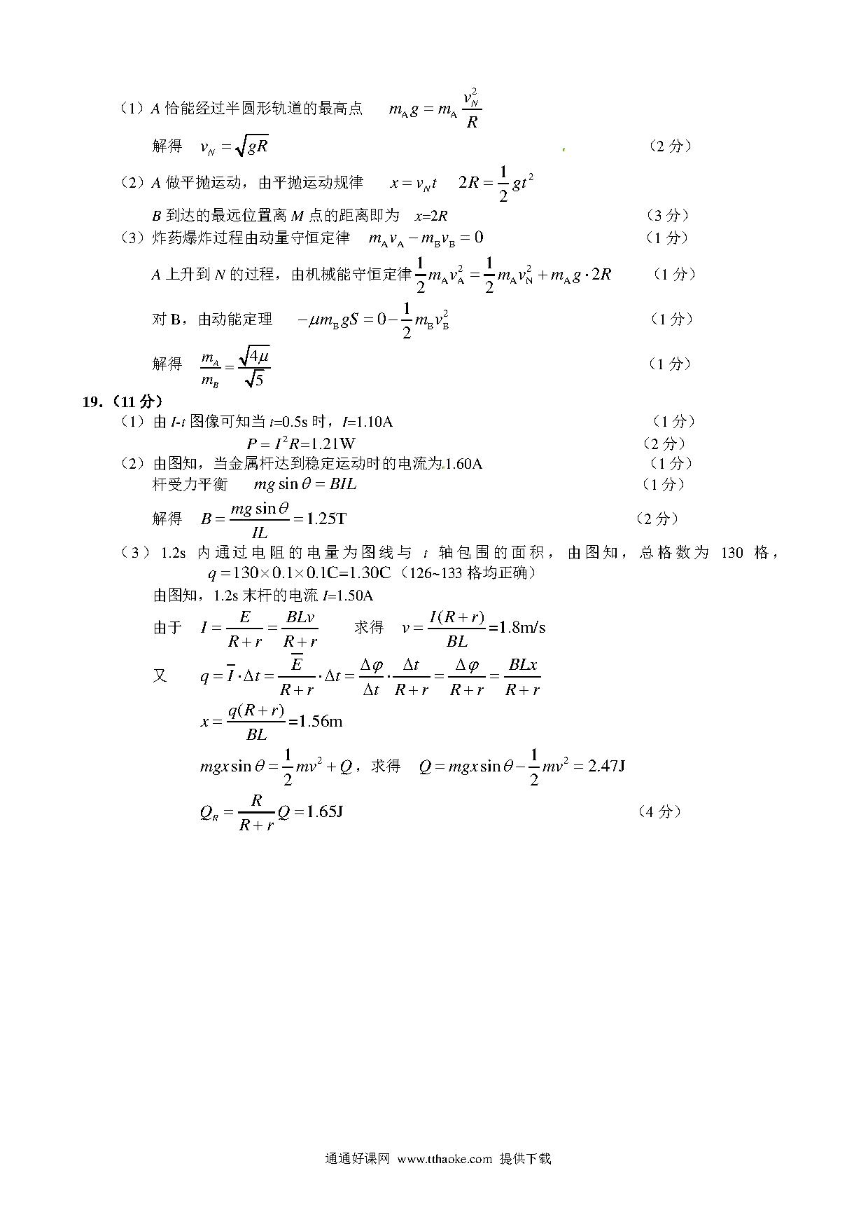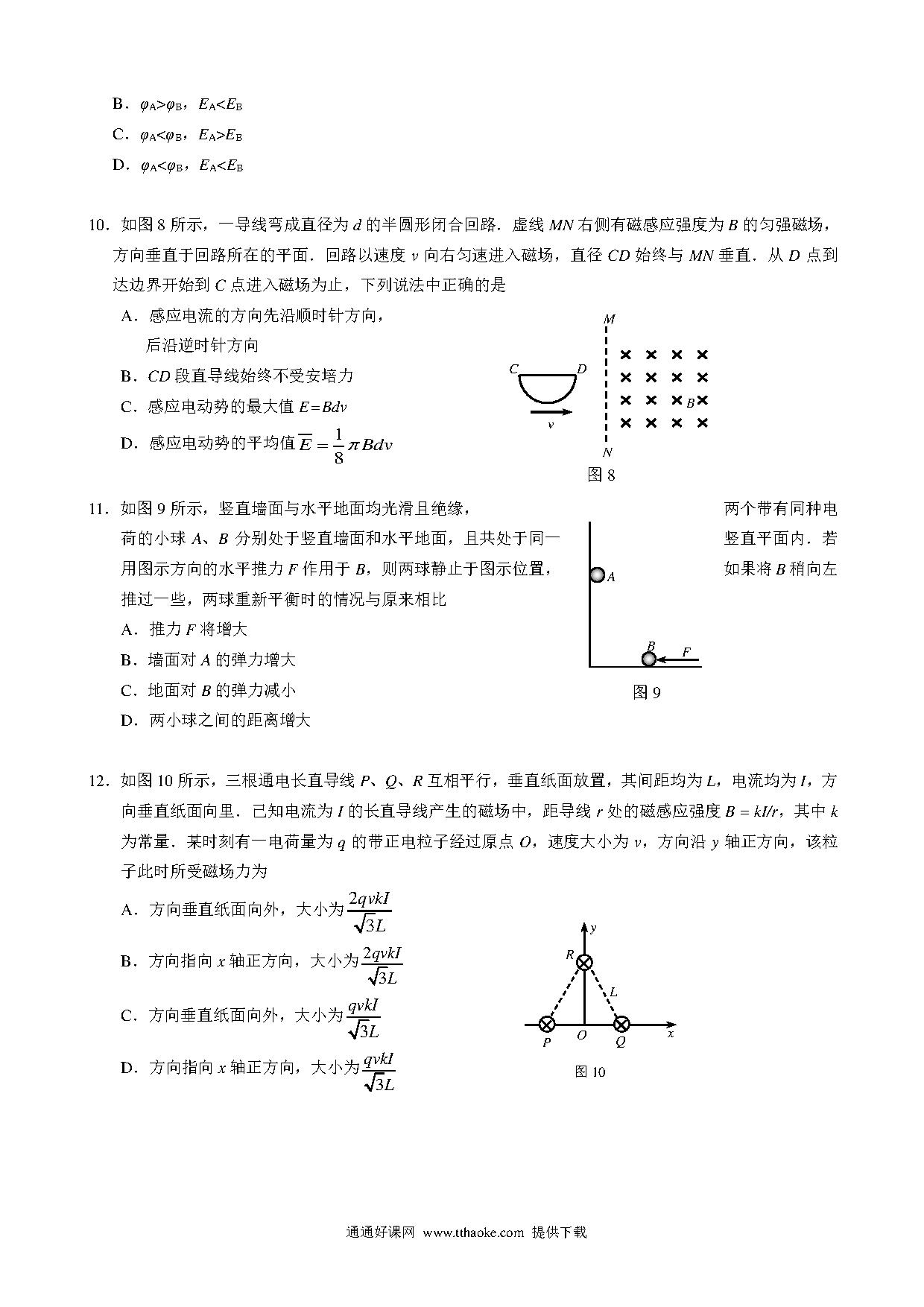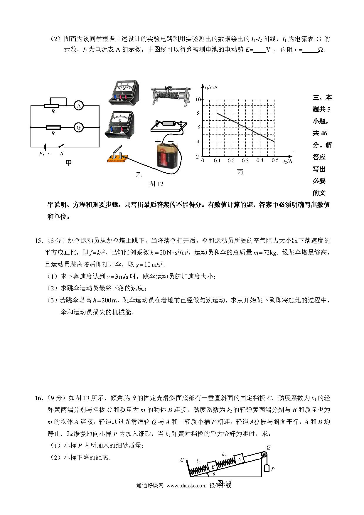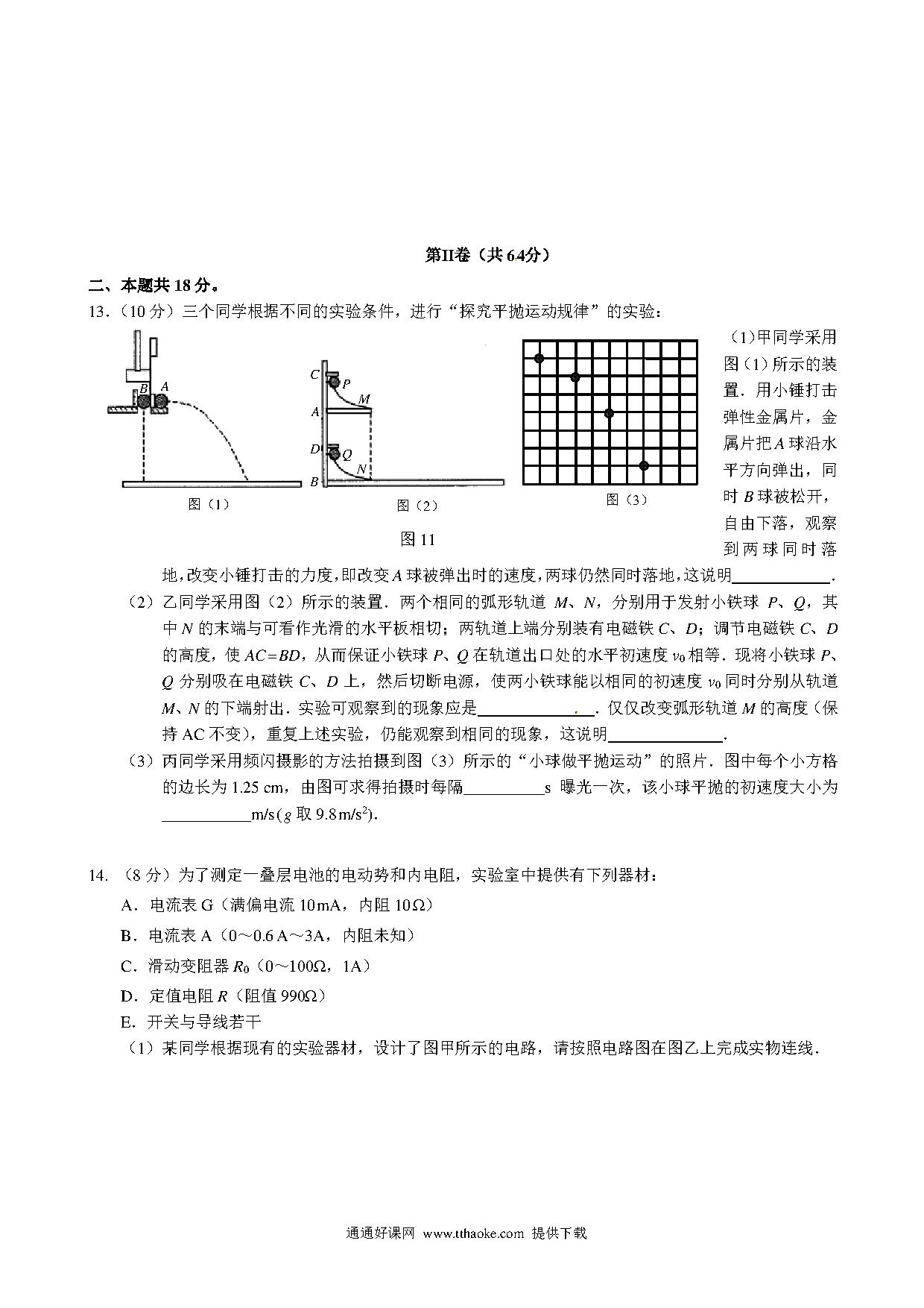福州闽清高中第一学期高三物理期中考试试题及答案