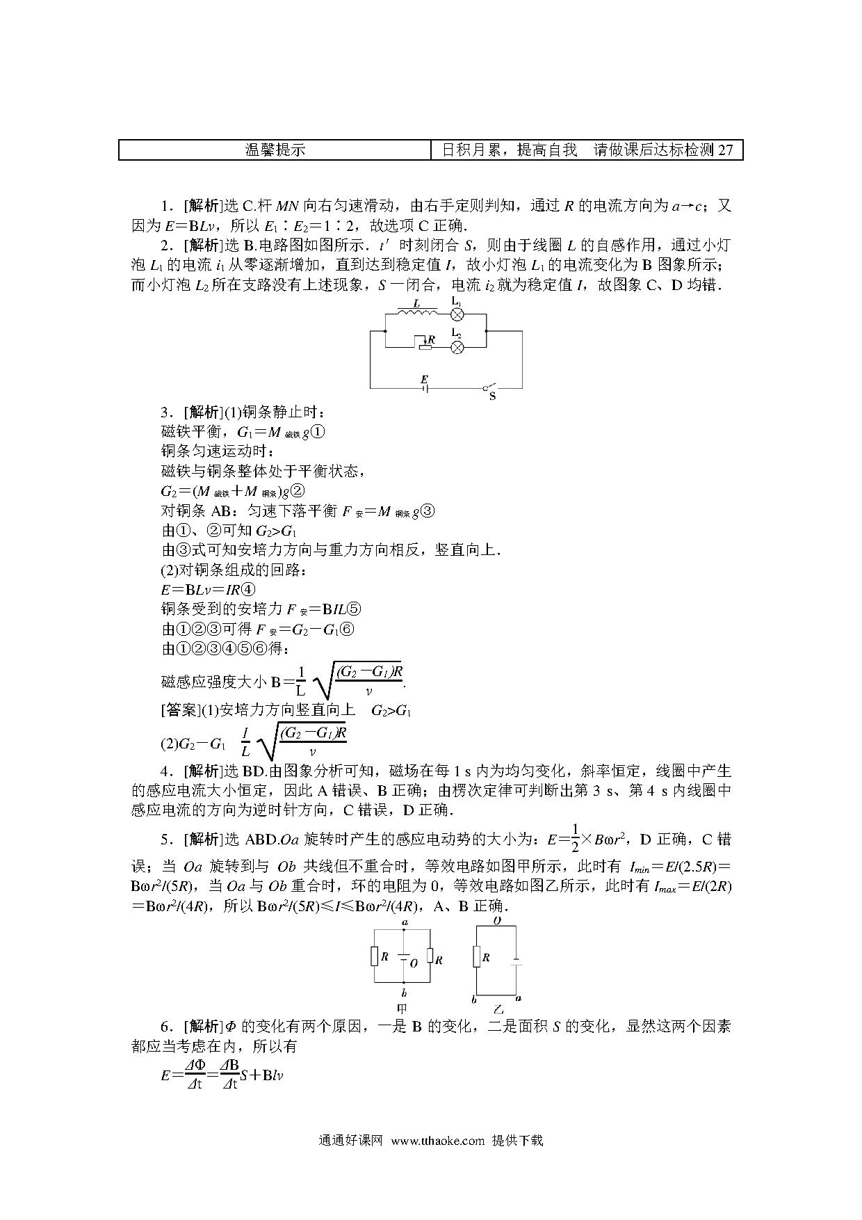 高三物理第一轮复习 第九章 电磁感应练习题及答案解析
