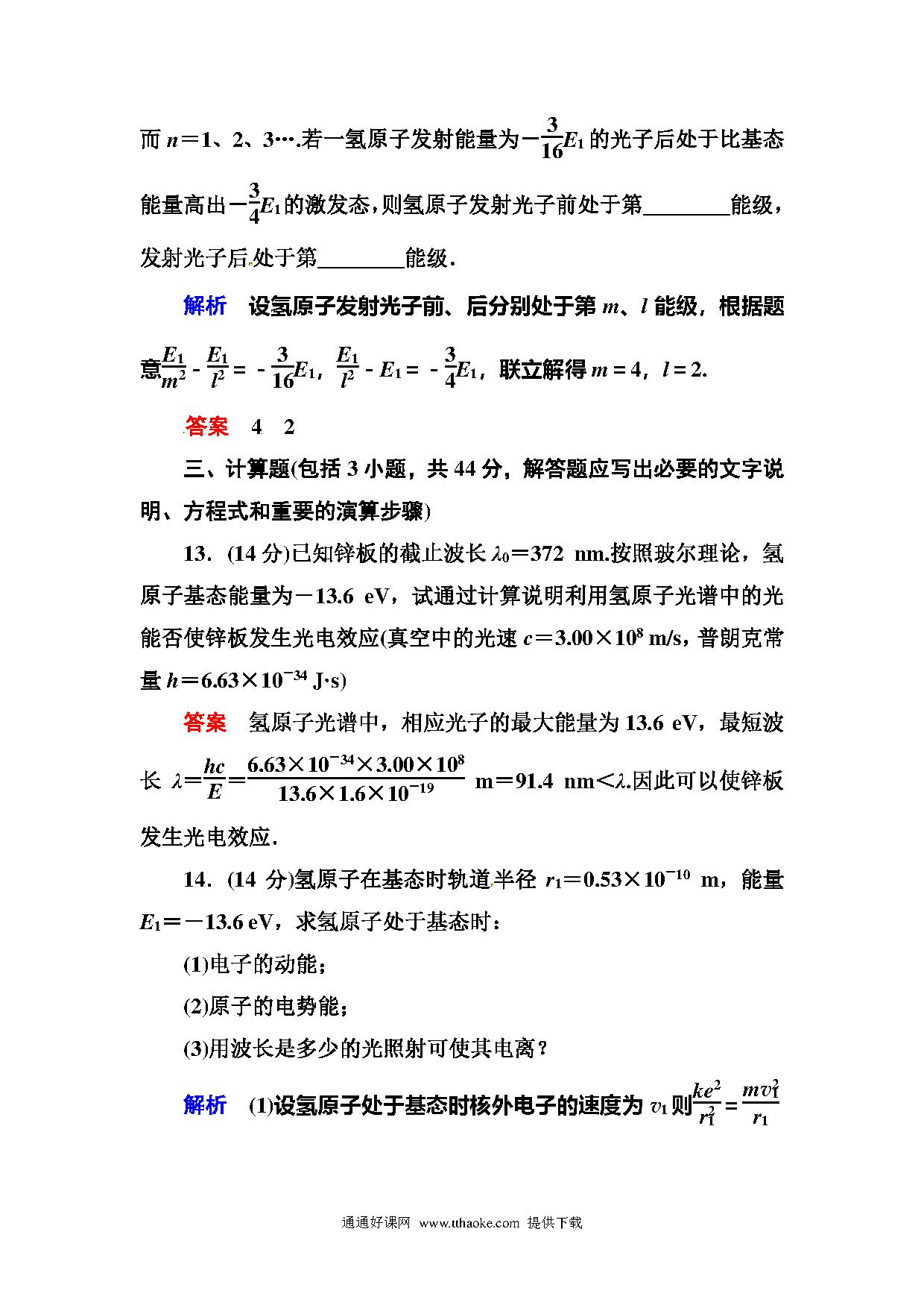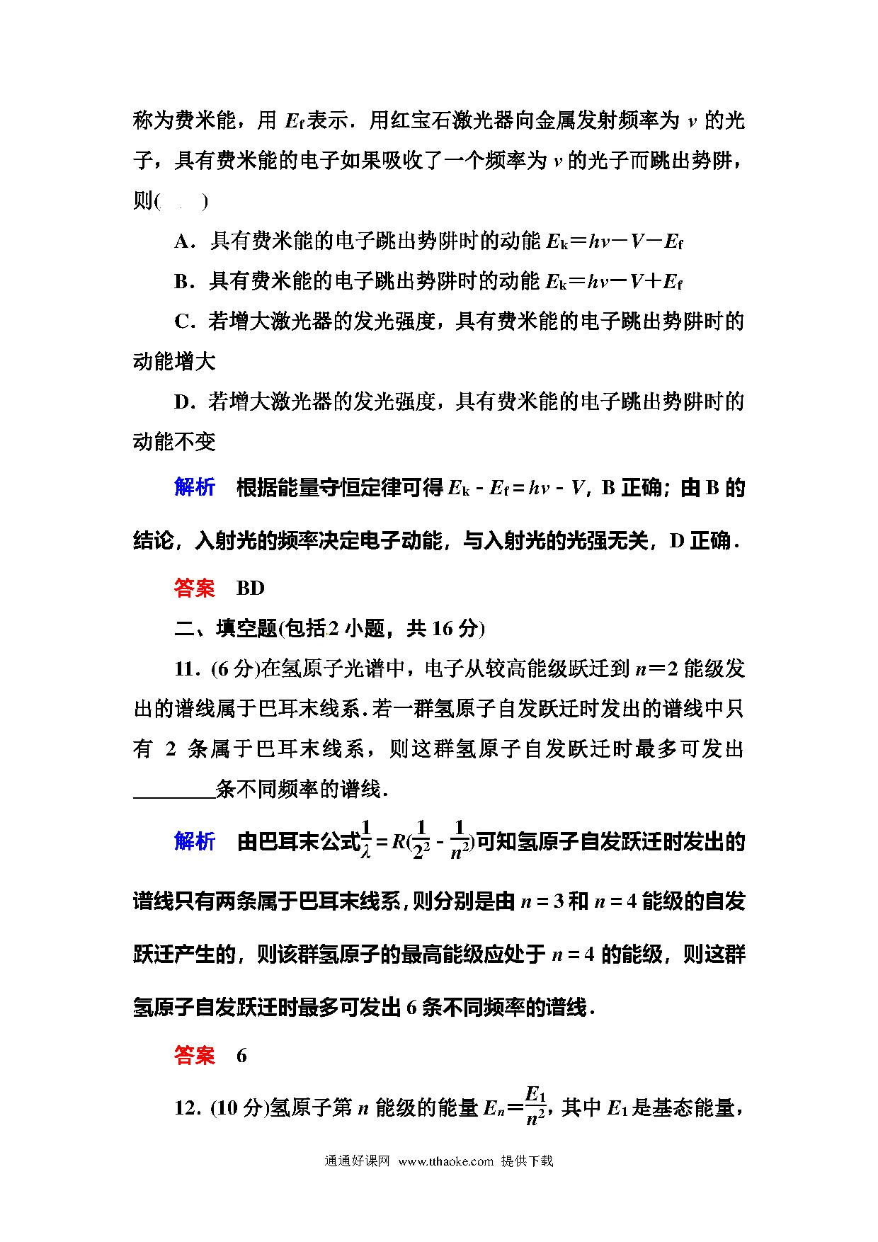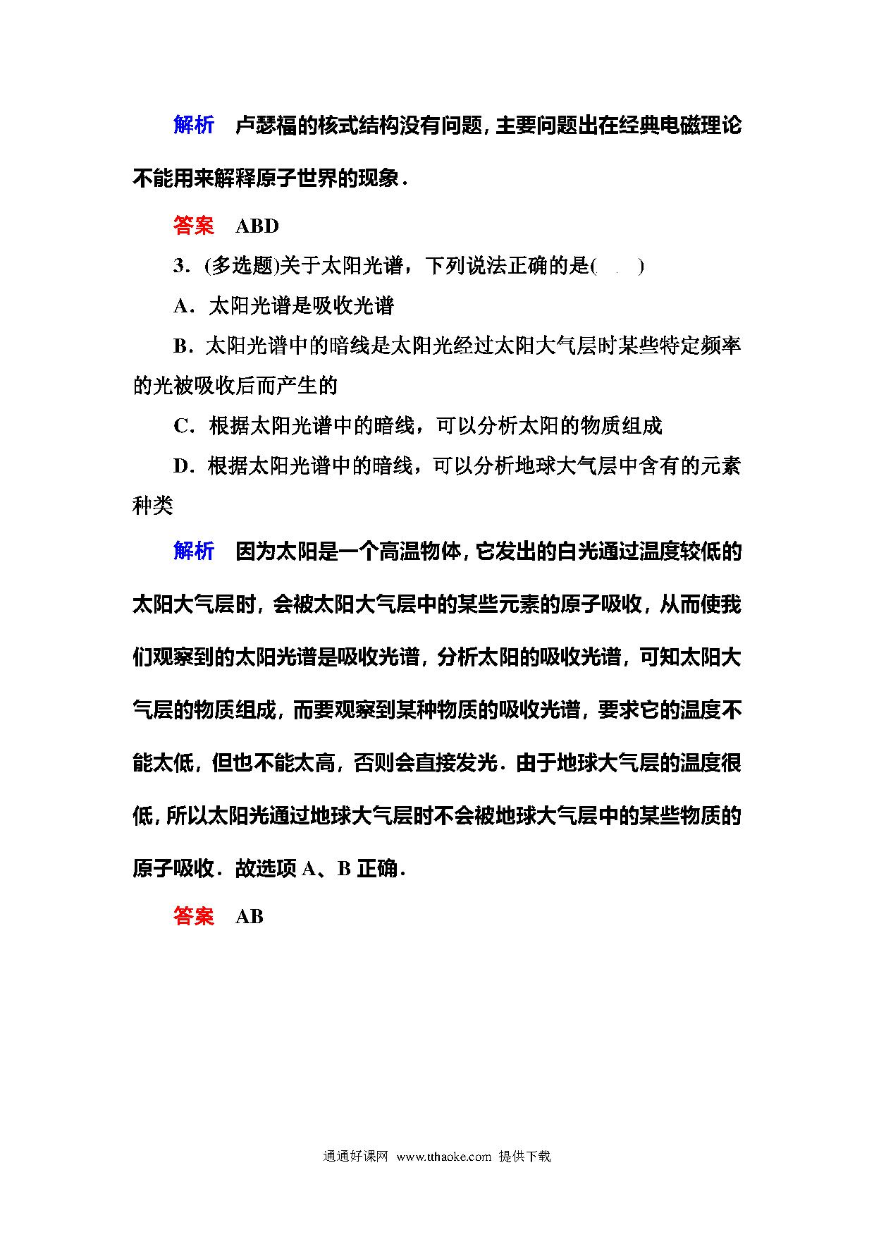人教版物理选修3-5原子结构练习题及答案解析(6份)