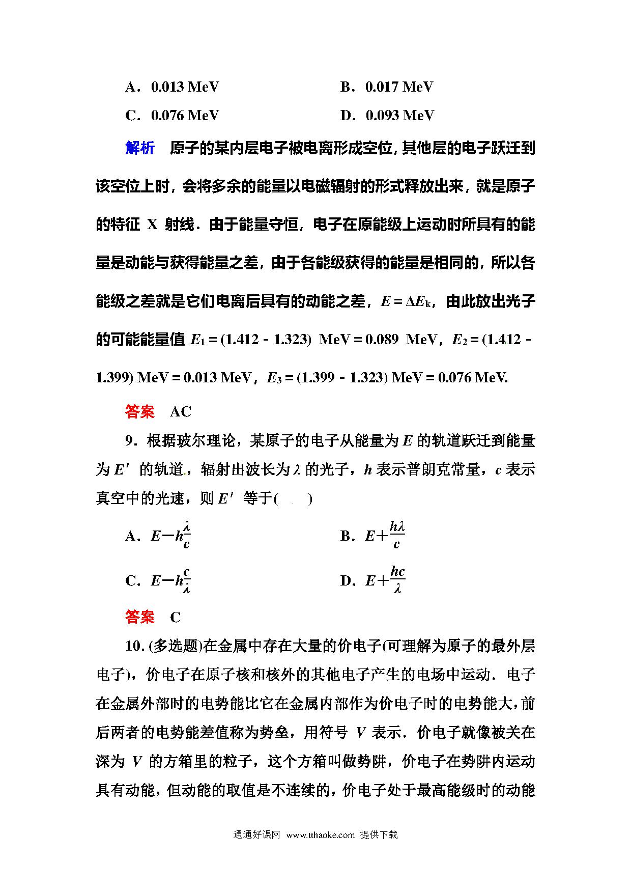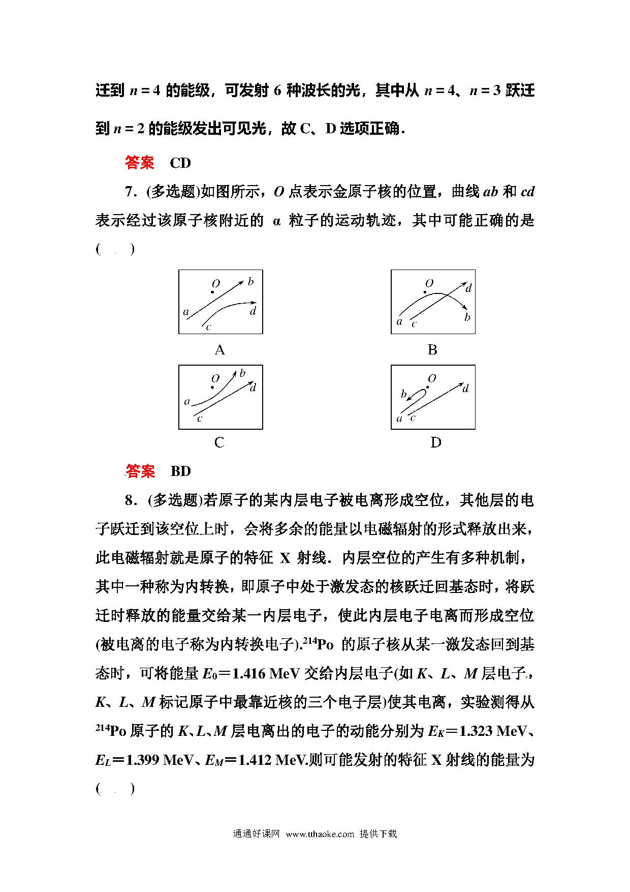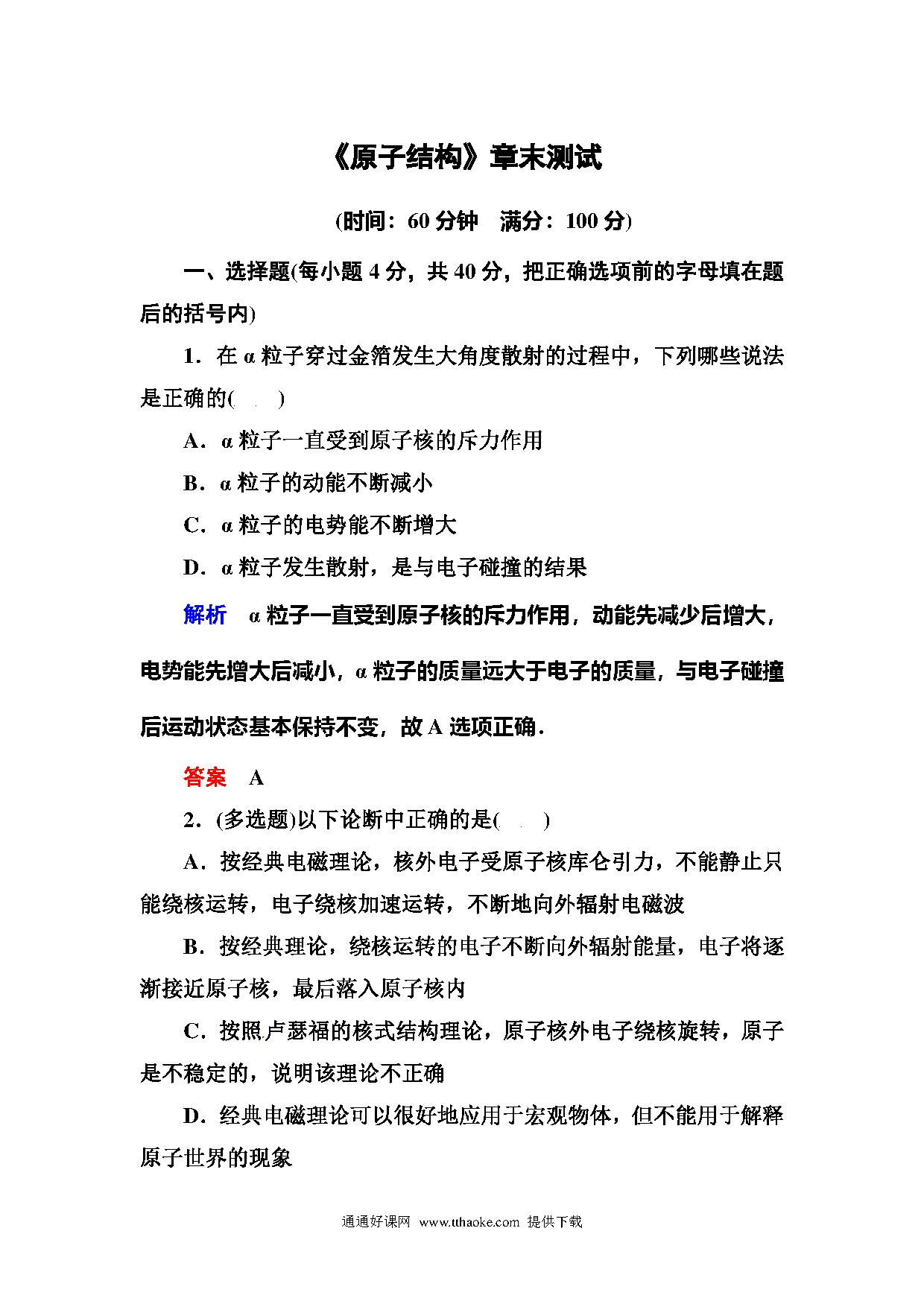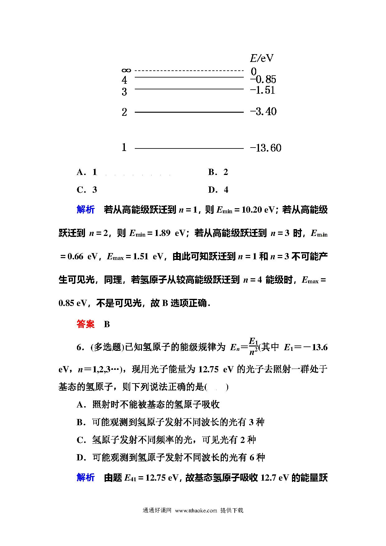 人教版物理选修3-5原子结构练习题及答案解析(6份)
