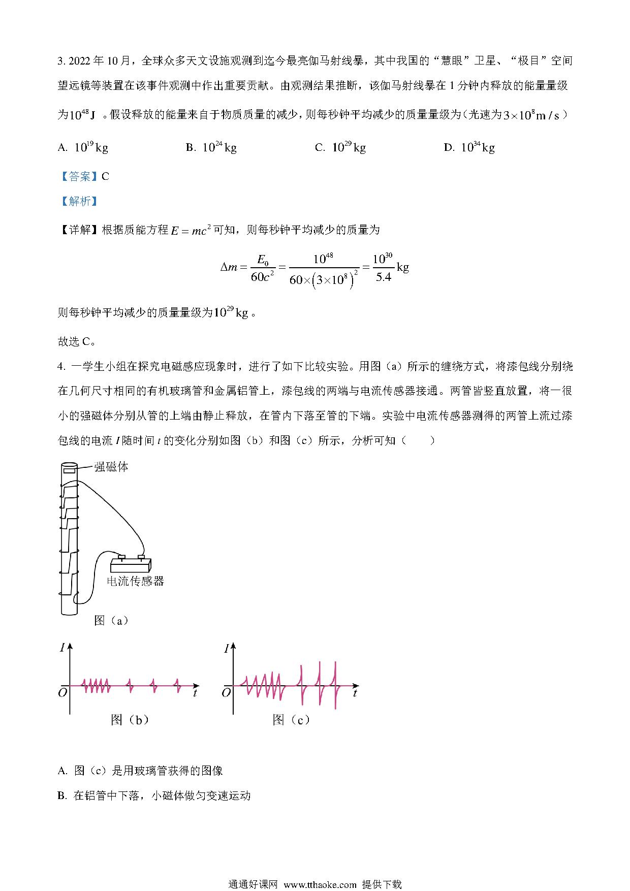 2023年高考新课标理综物理真题(解析版)