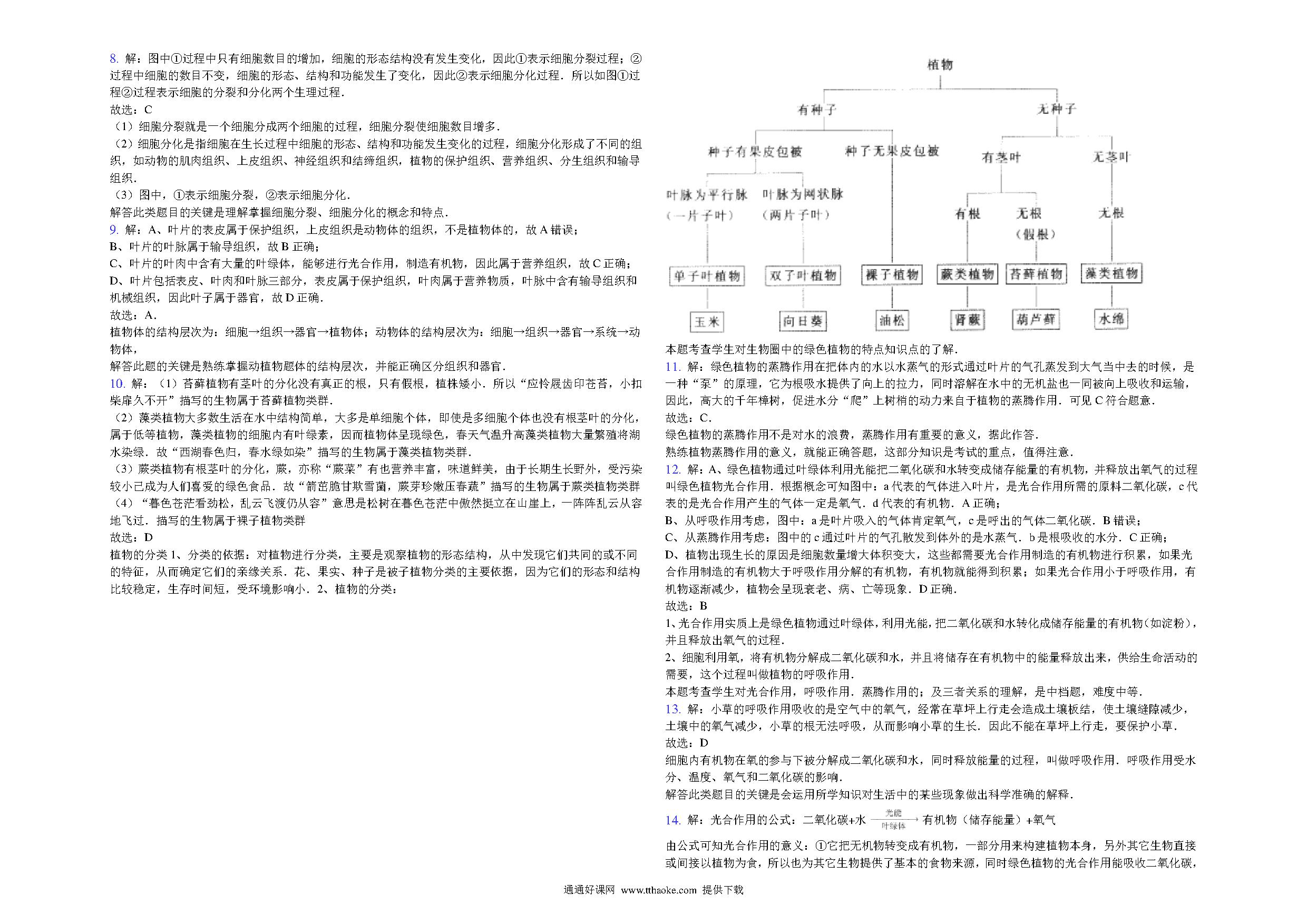济南市槐荫区第二学期七年级生物期末试题及答案
