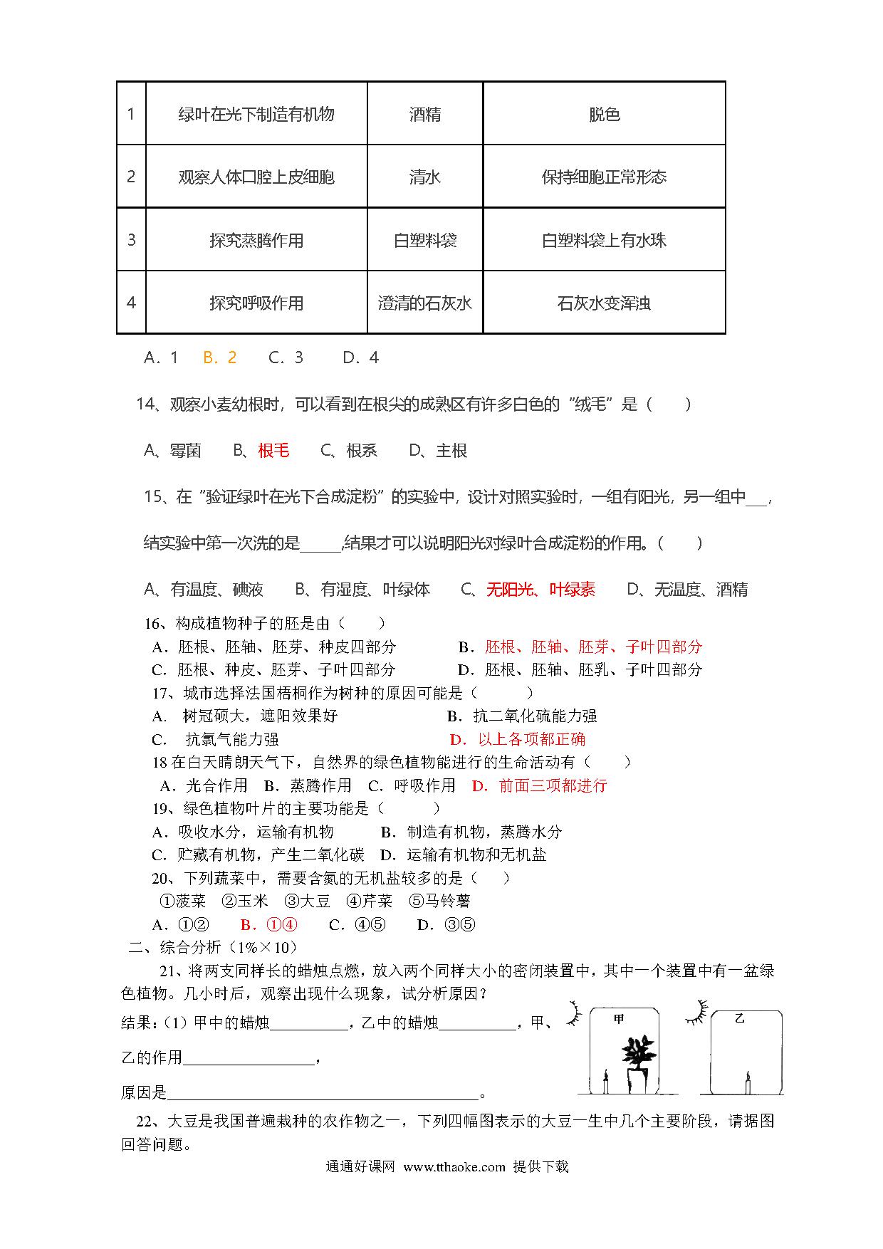 济南市槐荫区第二学期七年级生物期末试题及答案
