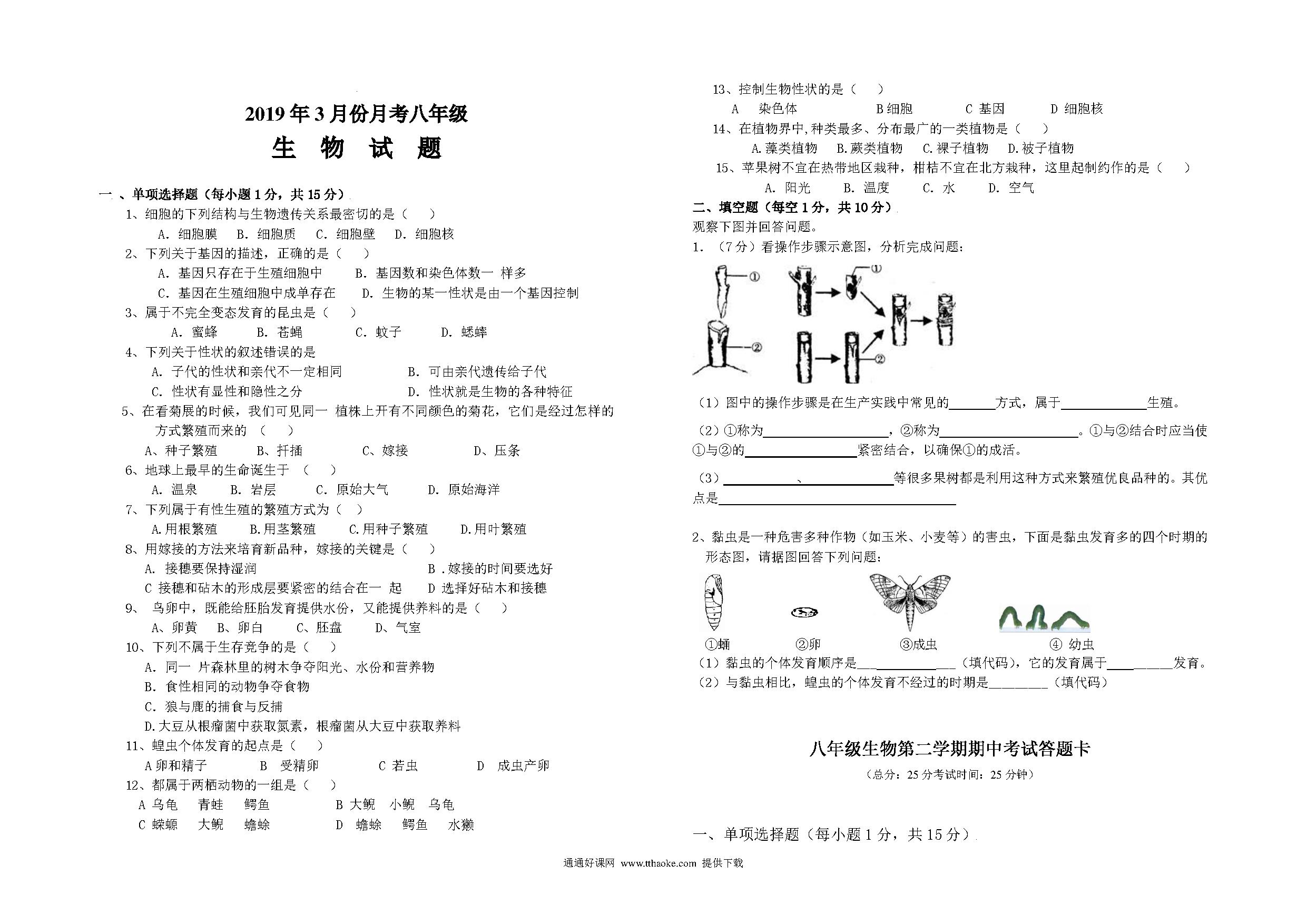 大同市矿区恒安一中八年级9月月考生物试卷及答案