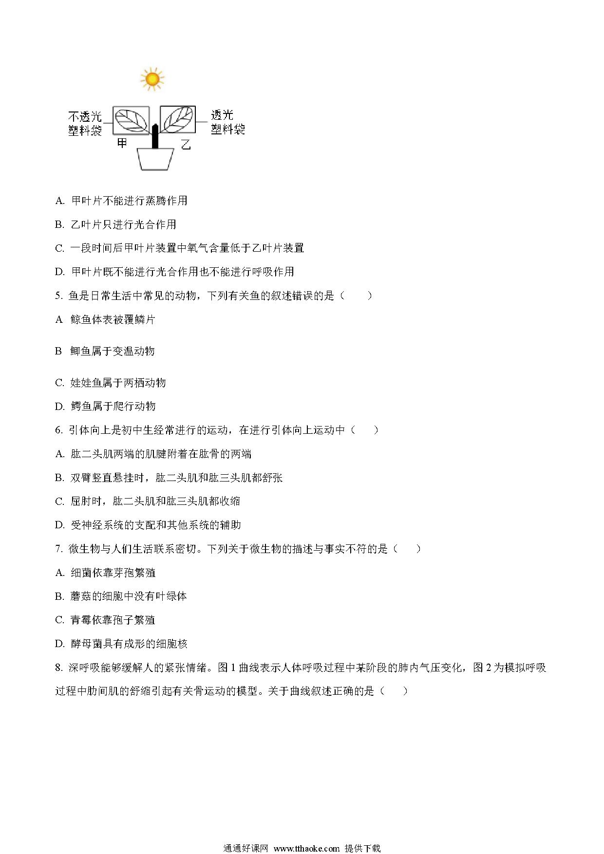 2023年四川省凉山彝族自治州中考生物真题(原卷版)