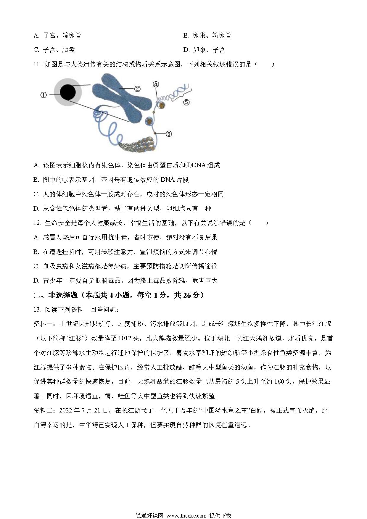 2023年四川省凉山彝族自治州中考生物真题(原卷版)