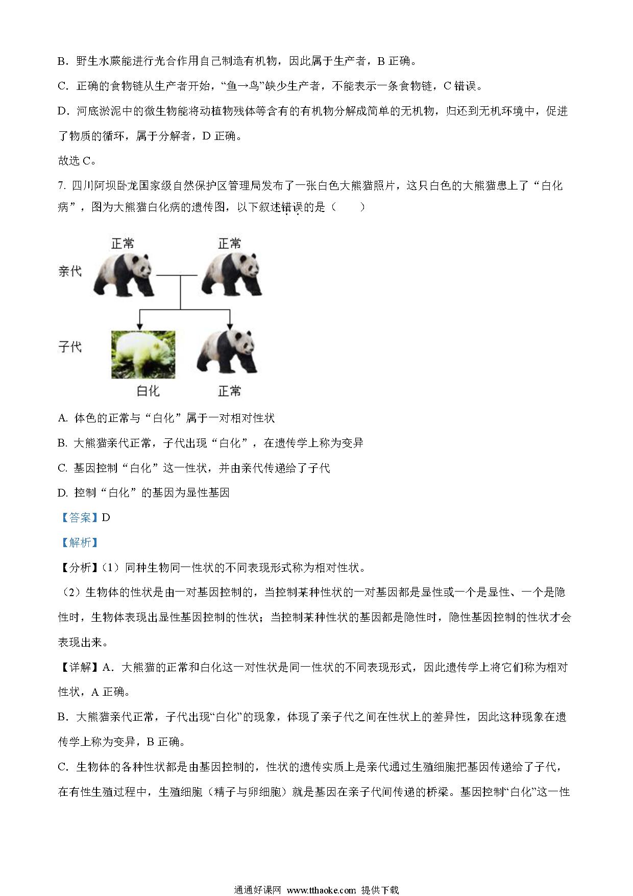 四川省巴中市2022-2023学年八年级下学期(结业考试)生物试题(解析版).pdf