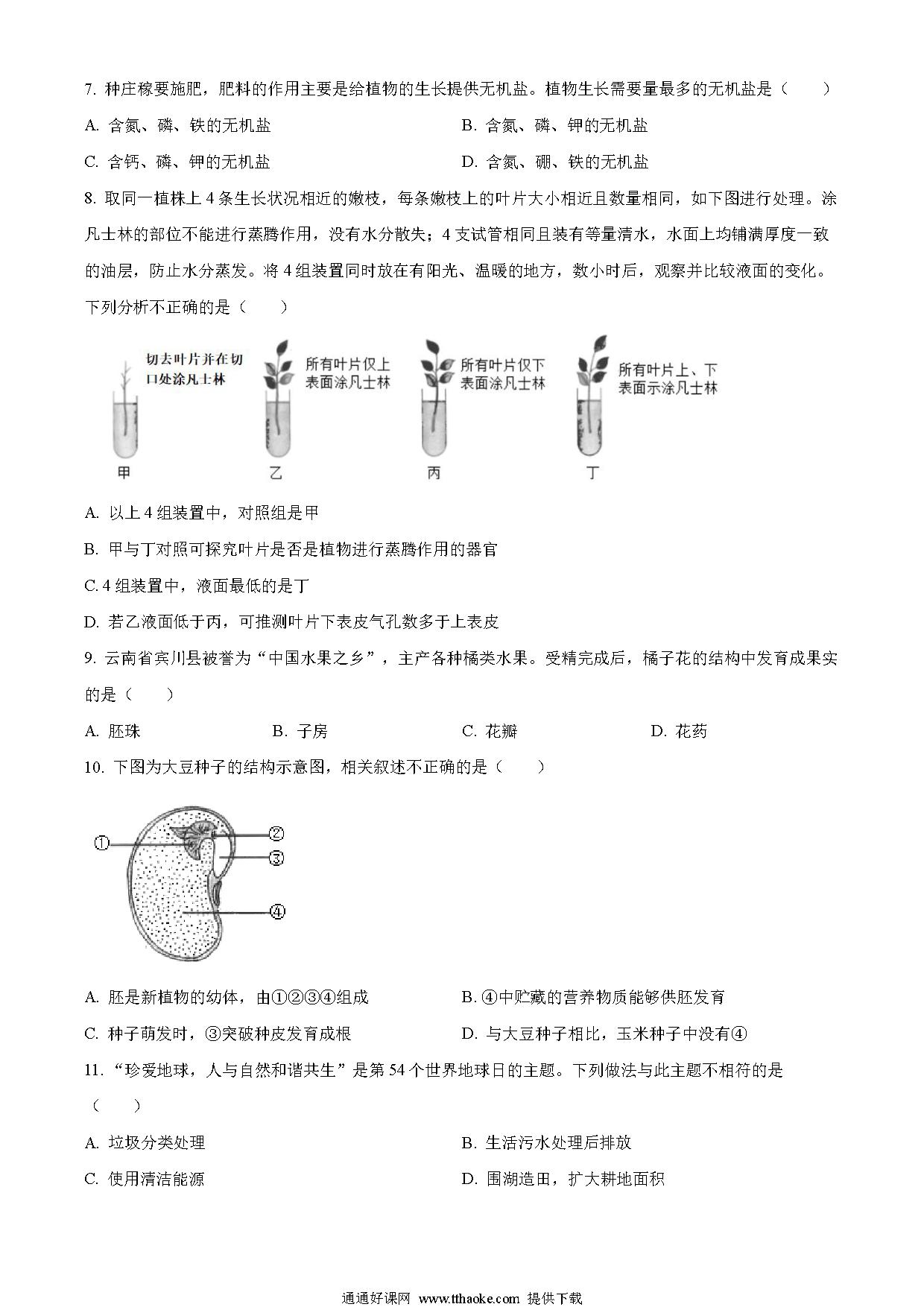 2023年四川省凉山彝族自治州中考生物真题(原卷版)