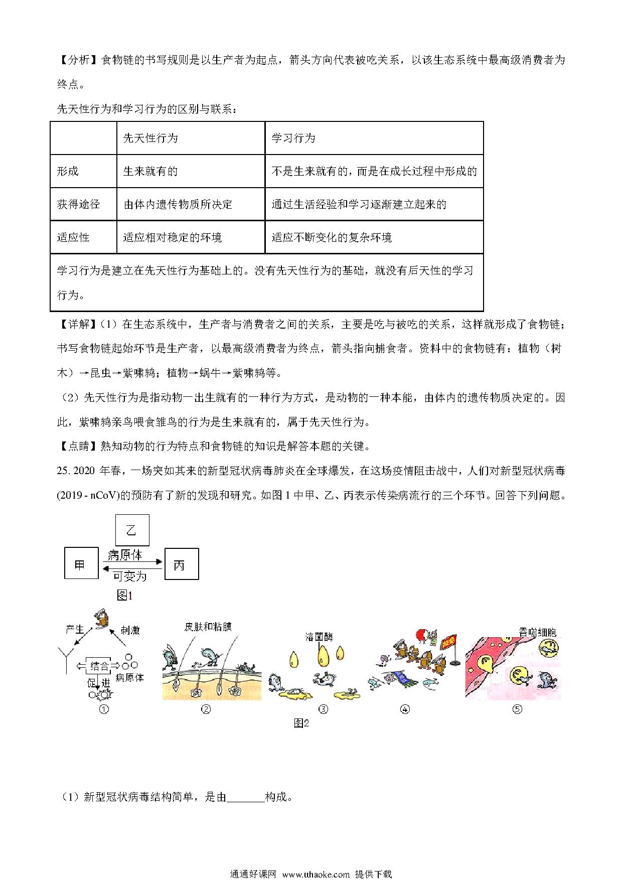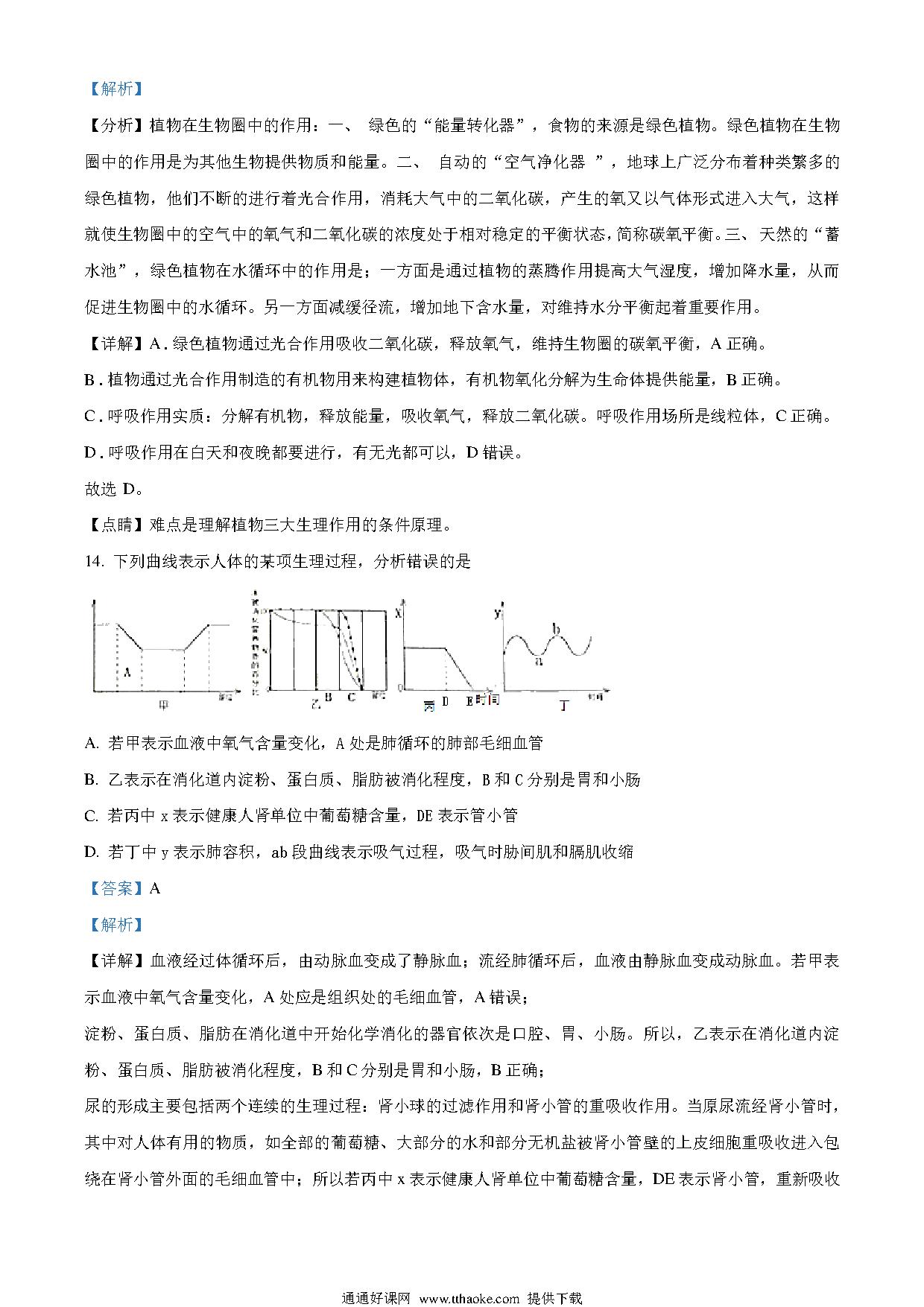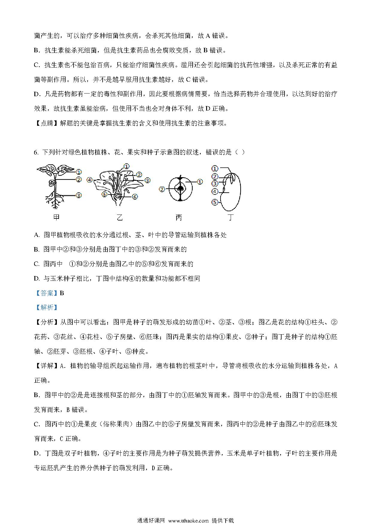 四川省资阳市2021年生物中考试题(解析版).pdf