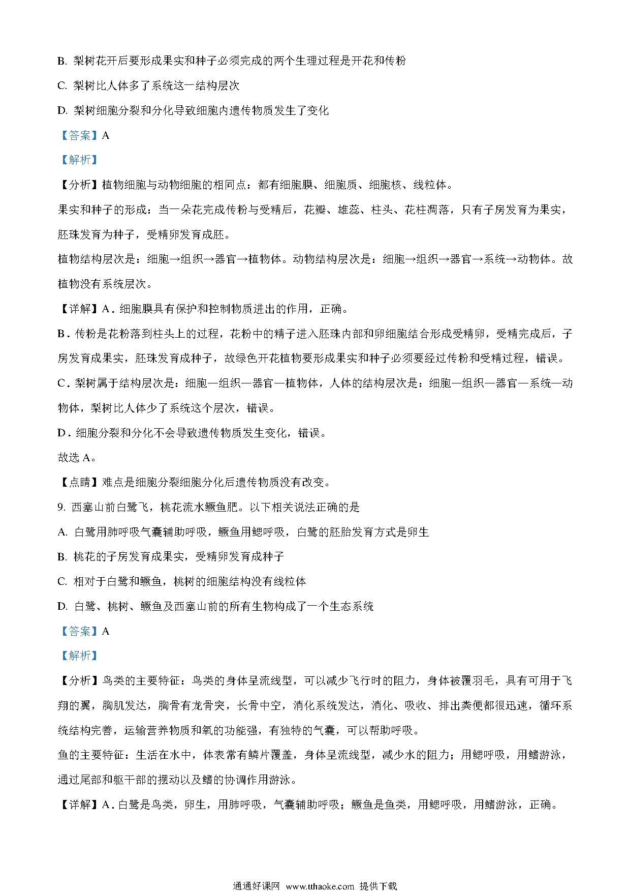 2023年四川省凉山彝族自治州中考生物真题(解析版)