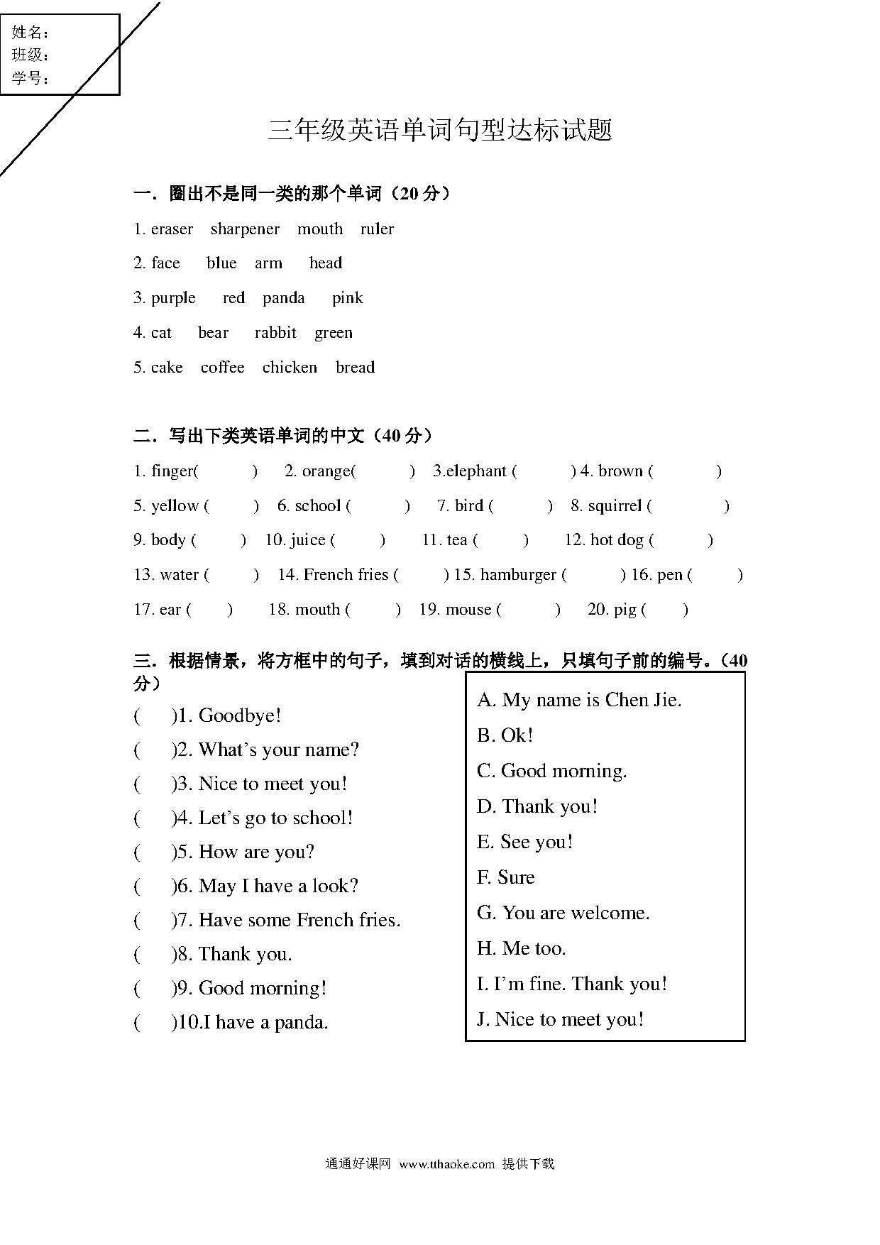 2022年译林版三年级英语上册期中综合质量测试卷可下载(附听力及答案)