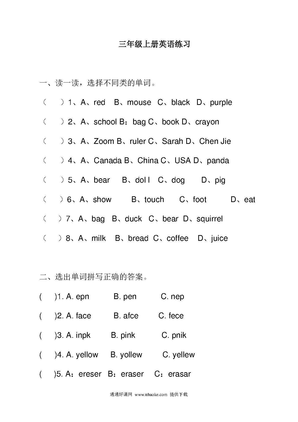 2023年人教PEP版三年级英语下册期中单项选择复习题可下载打印