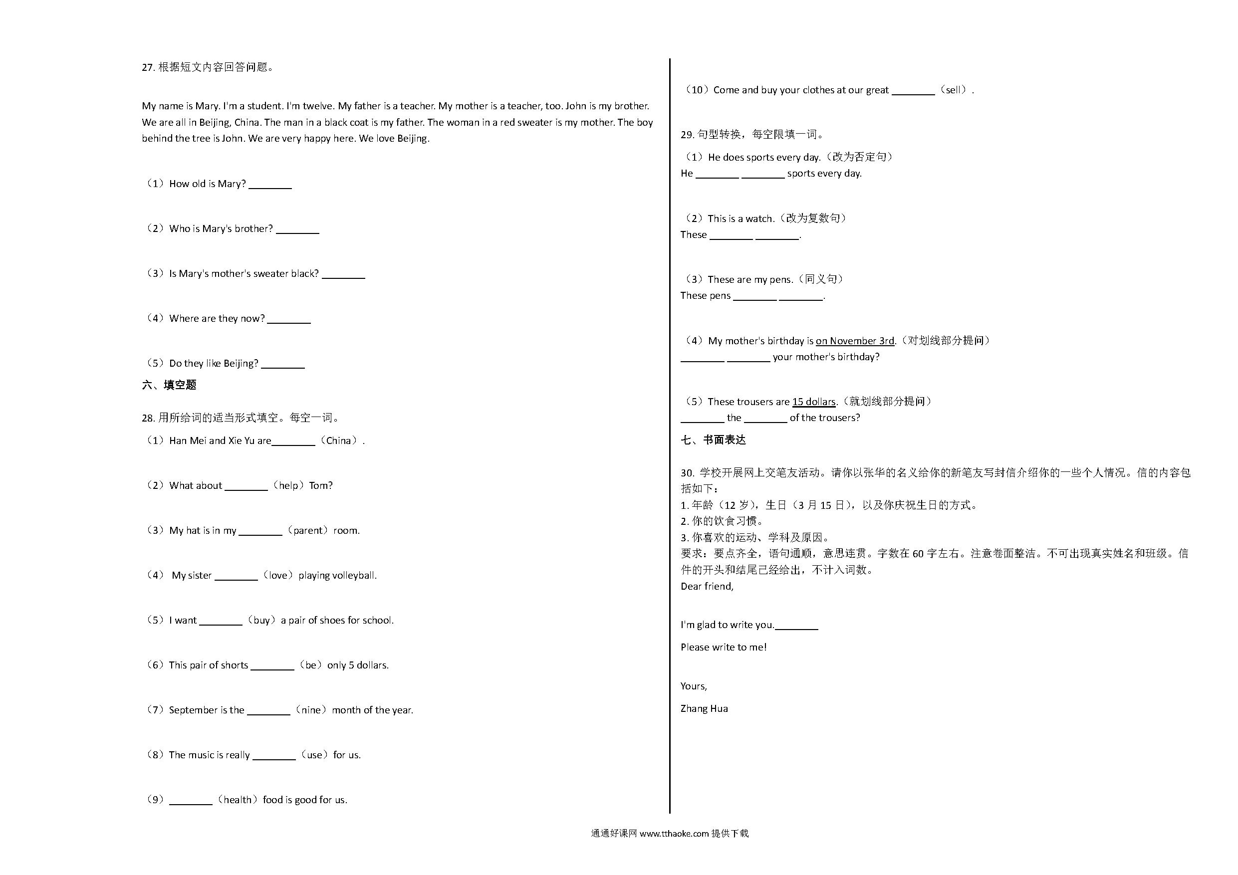 黑龙江鹤岗市2020-2021学年七年级期英语上册期末试卷.pdf