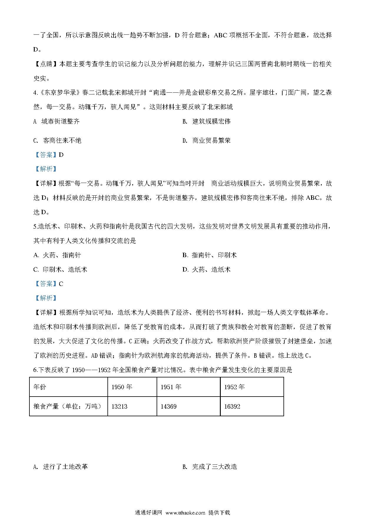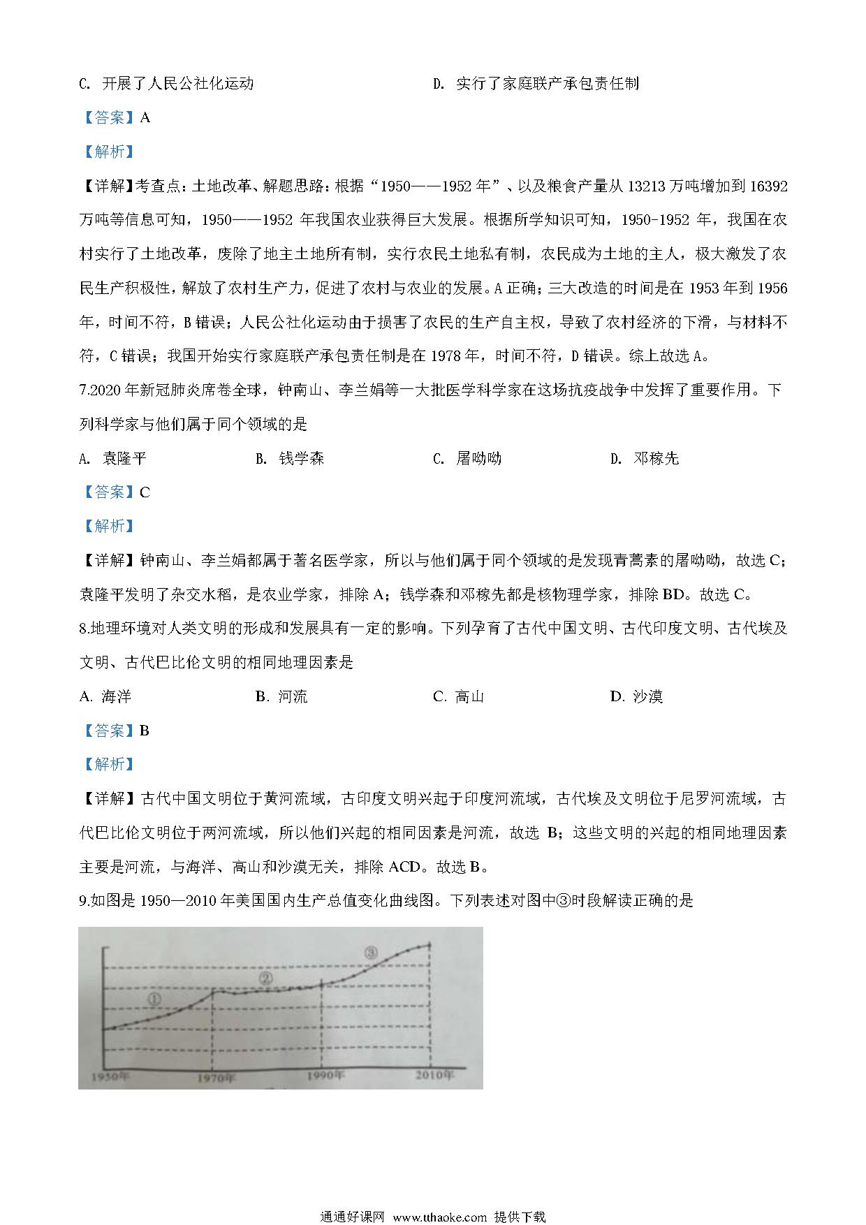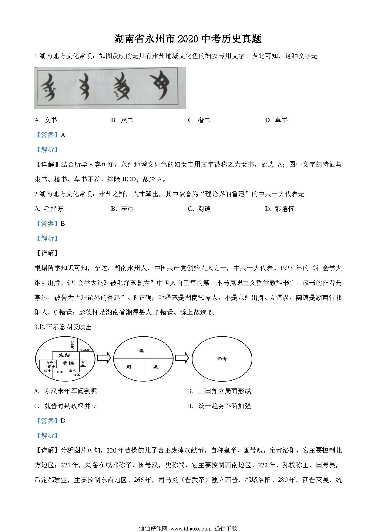 湖南省永州市2020年中考历史试题(解析版).pdf